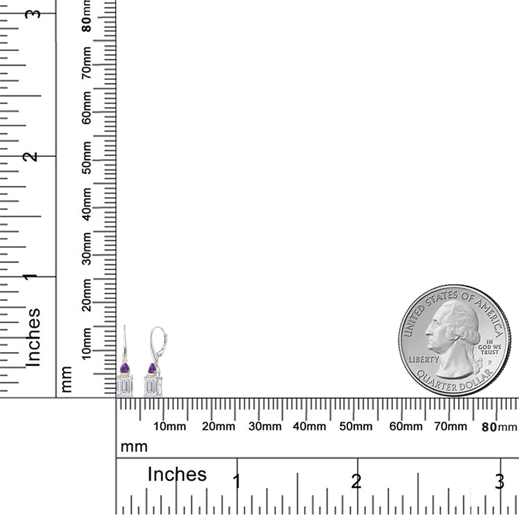 6.54 Cttw 925 Silver and 10K Yellow Gold IGI Certified Lab Grown Diamond and Amethyst Drop Dangle Earrings For Women | Emerald Cut Diamonds Each 3 Ct | E-F Color | VS1-VS2 Clarity