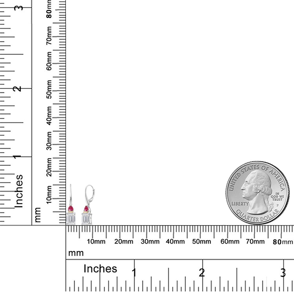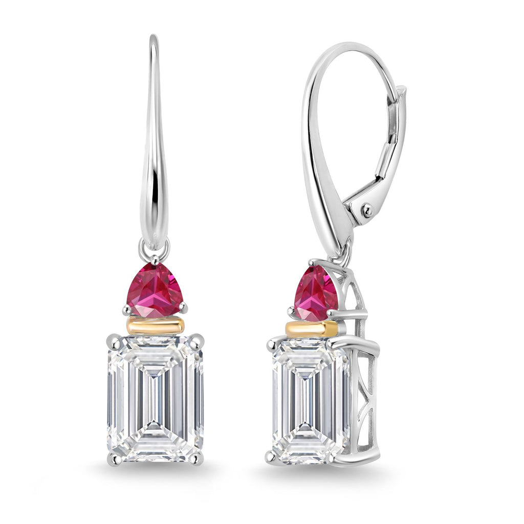 6.54 Cttw 925 Silver and 10K Yellow Gold IGI Certified Lab Grown Diamond and Red Created Ruby Drop Dangle Earrings For Women | Emerald Cut Diamonds Each 3 Ct | E-F Color | VS1-VS2 Clarity