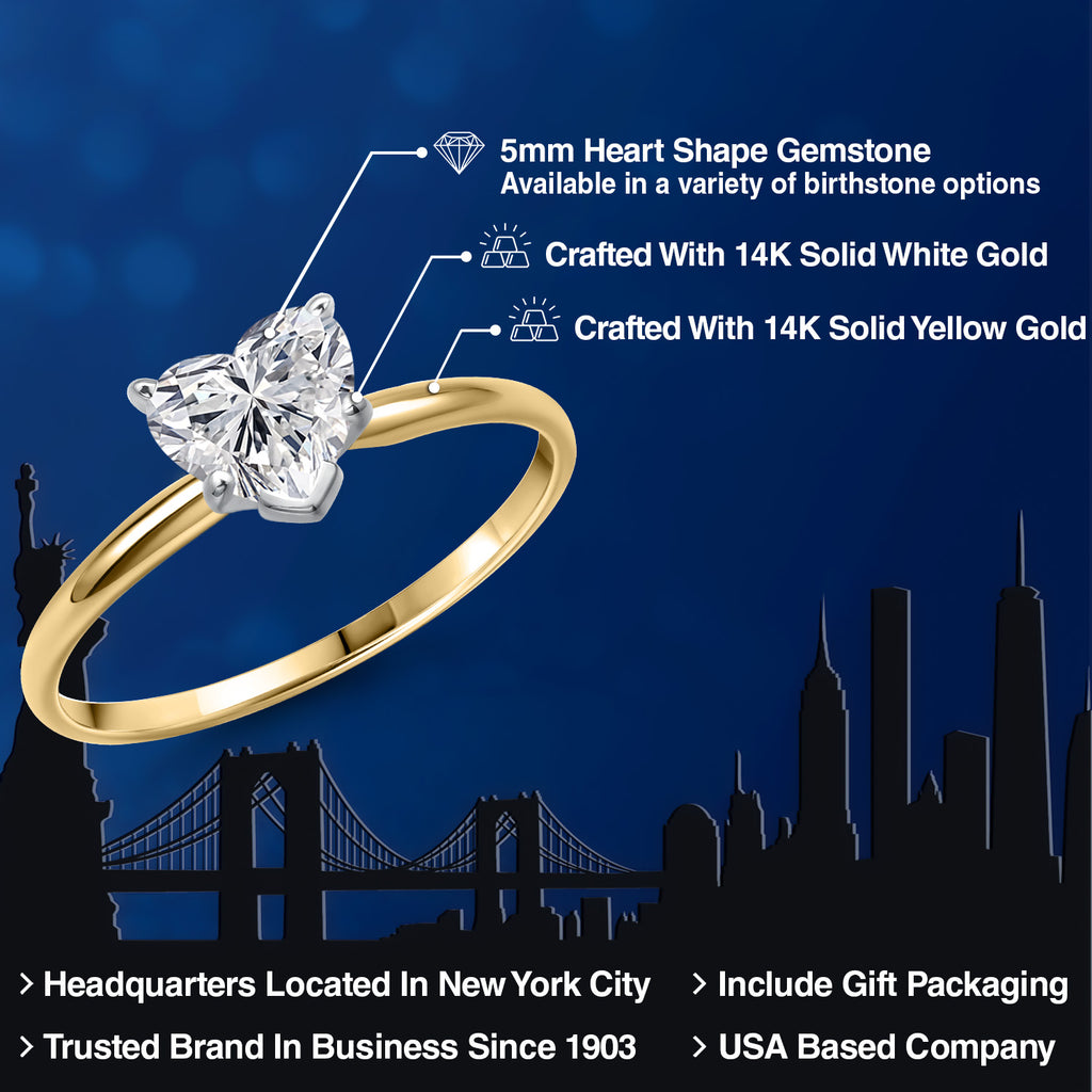 Heart Shape Solitaire Engagement Ring For Women | 14K Yellow Gold | 5MM Heart Shape | Gemstone Birthstone | Wedding Anniversary Promise Gold Ring for Women | Available In Size 5-9