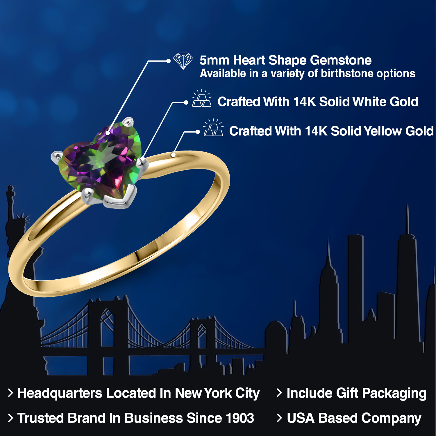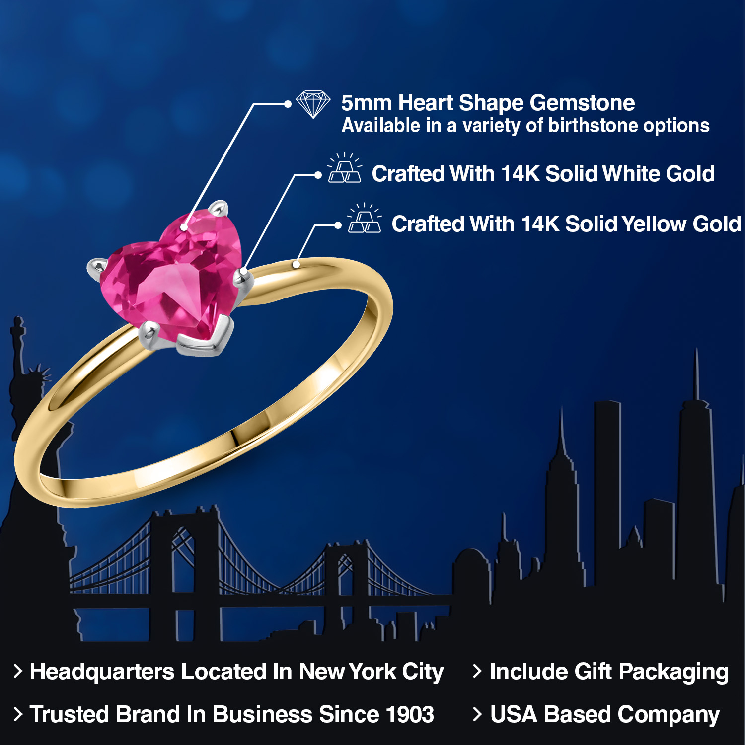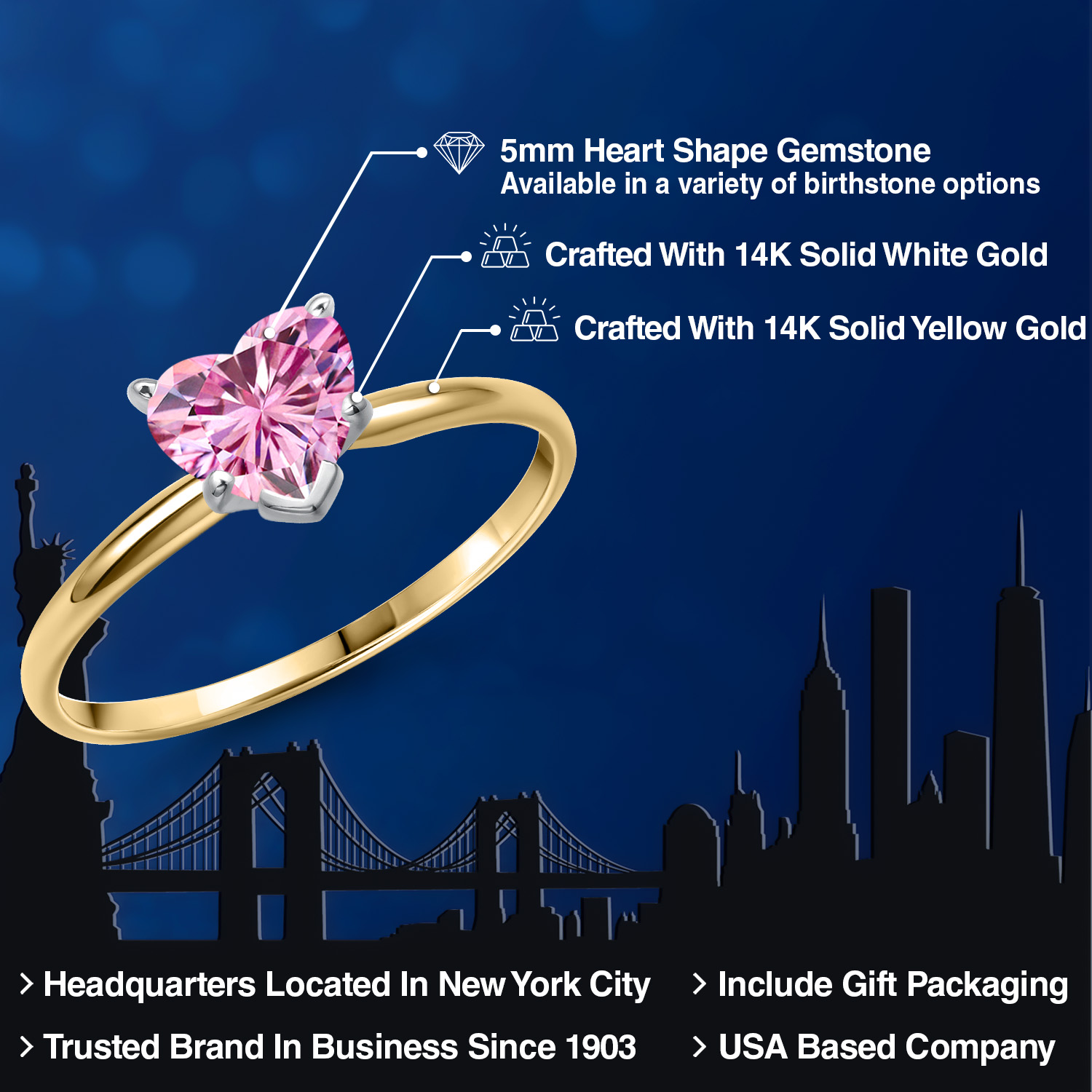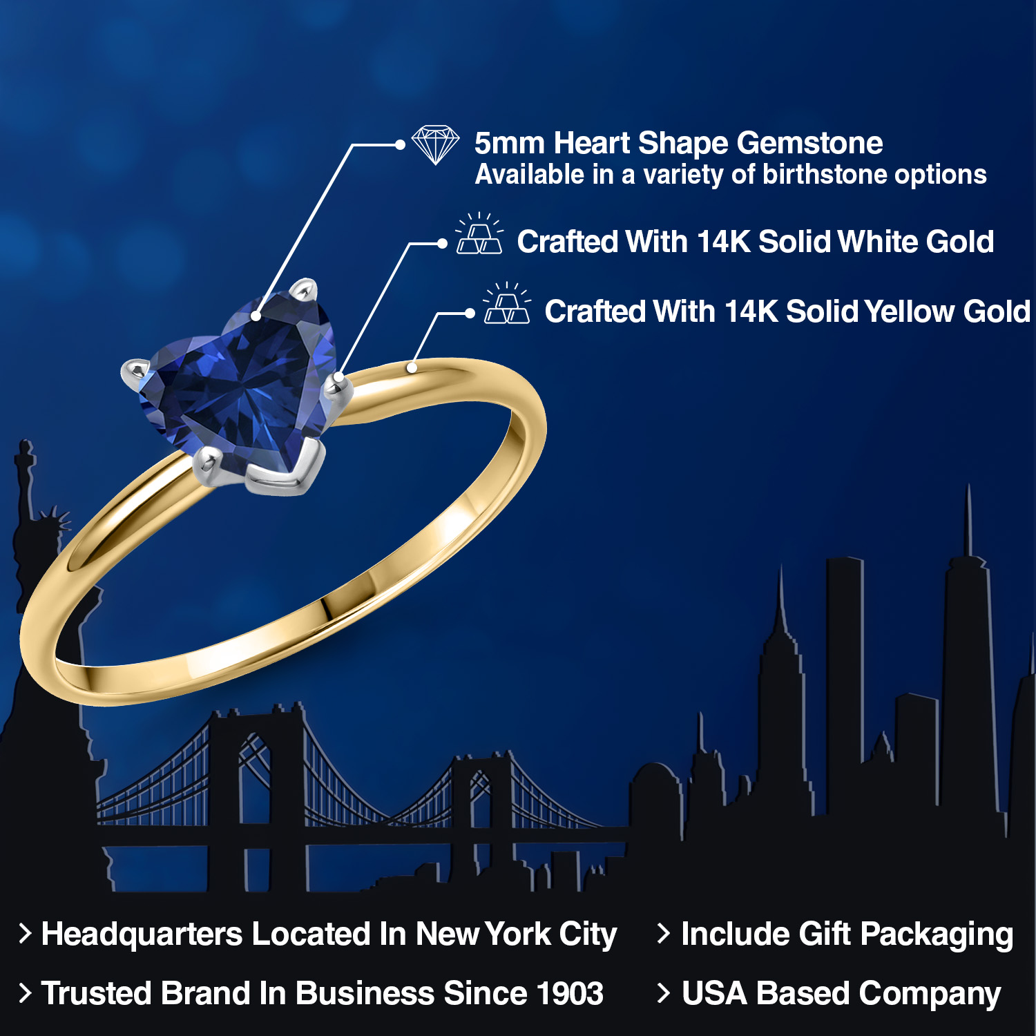 MAJESTIC 5MM HEART-SHAPED GEMSTONE: This elegantly crafted ring features a heart-shaped gemstone, measuring 5MM , that stands as a brilliant tribute to love. Available in a range of birthstone options, this solitaire engagement ring's gemstone boasts stunning clarity and brilliance, making it an exceptional piece of jewelry that is as unique and radiant as the woman who wears it.