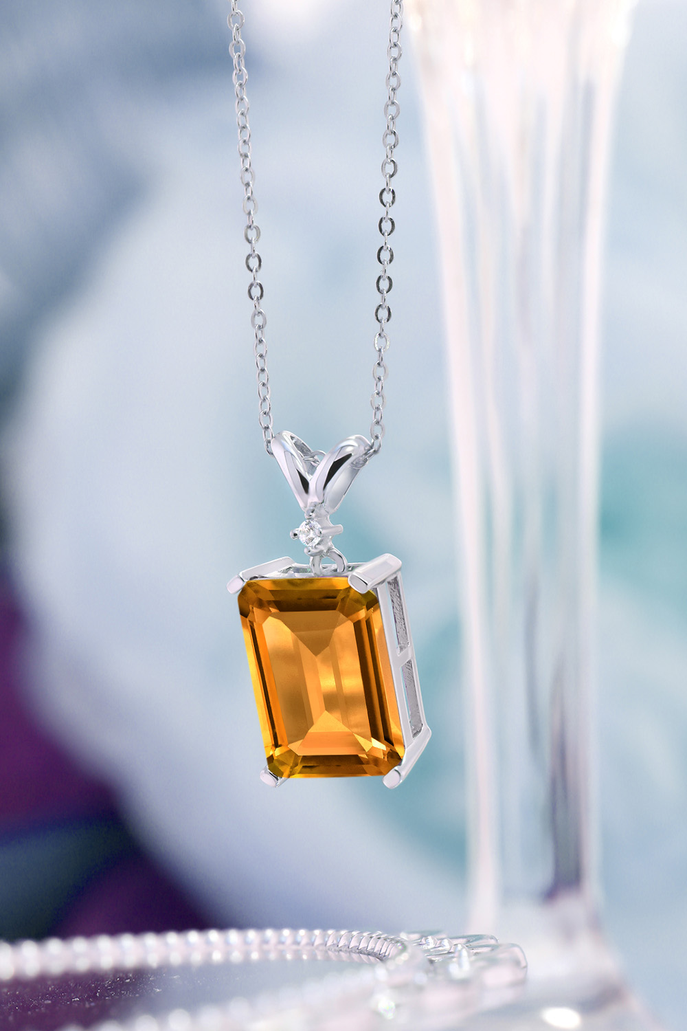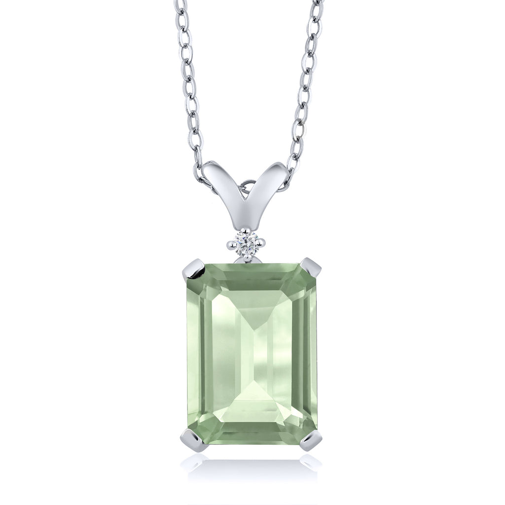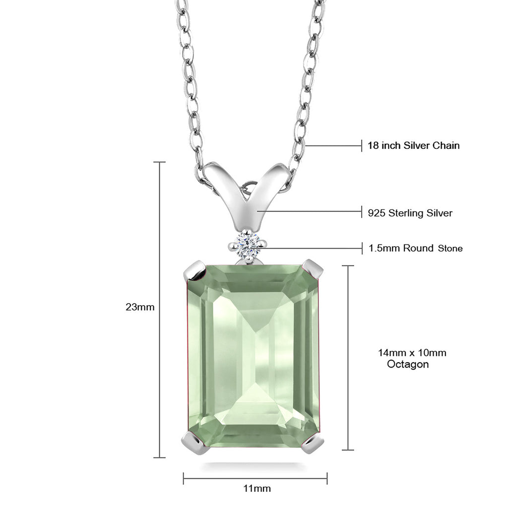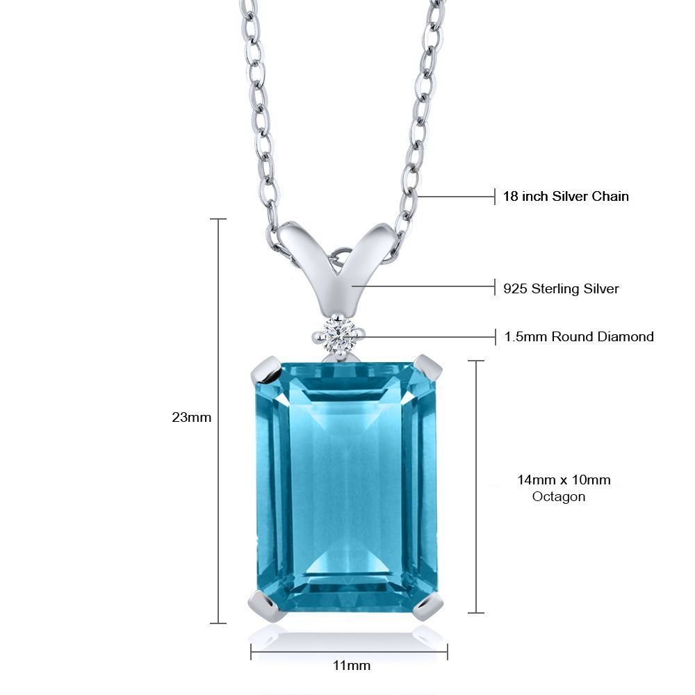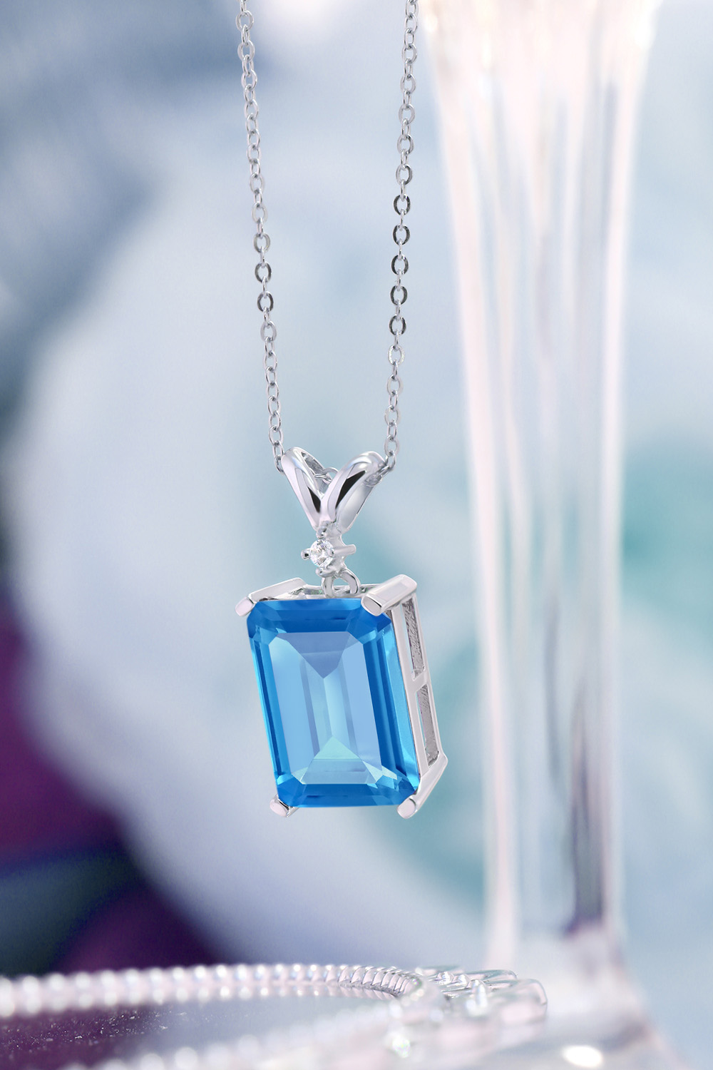 5-10 Cttw Gemstone Birthstone and White Diamond Pendant Necklace for Women | 925 Sterling Silver | Emerald Cut 14X10MM | Includes 18 Inch Chain | Fine Jewelry for Her Mom Wife