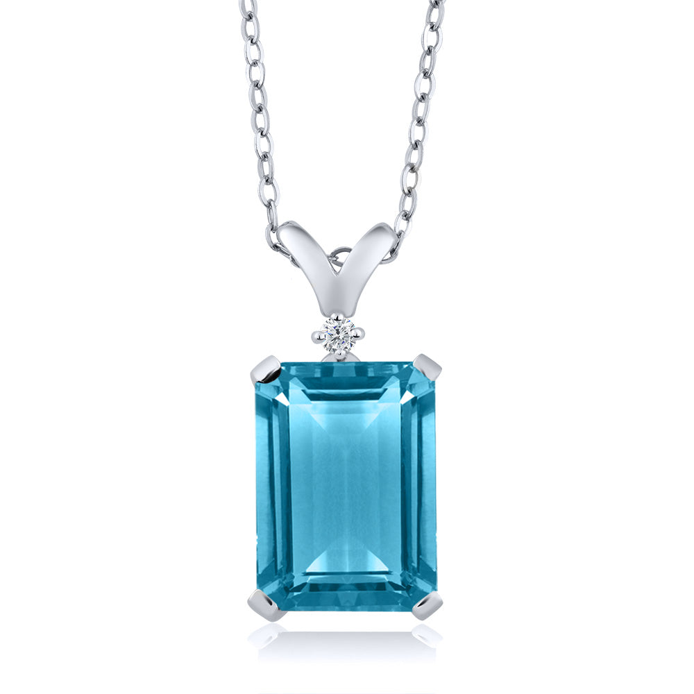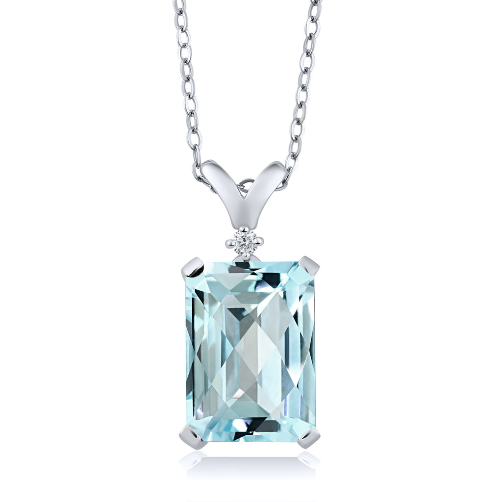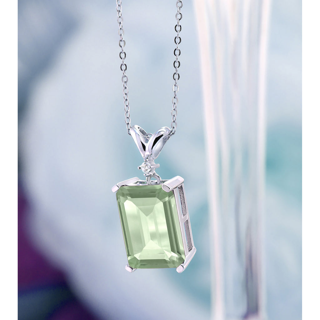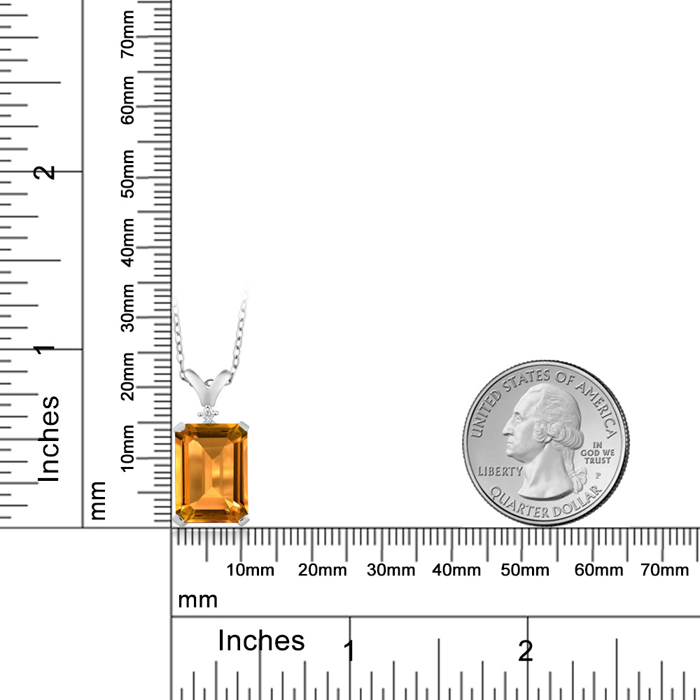 5-10 Cttw Gemstone Birthstone and White Diamond Pendant Necklace for Women | 925 Sterling Silver | Emerald Cut 14X10MM | Includes 18 Inch Chain | Fine Jewelry for Her Mom Wife