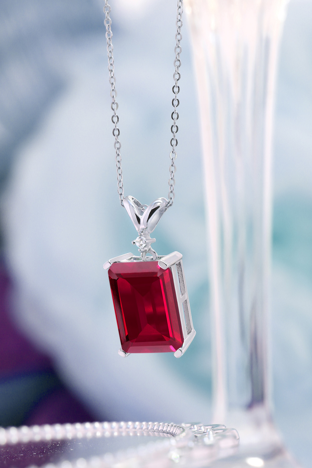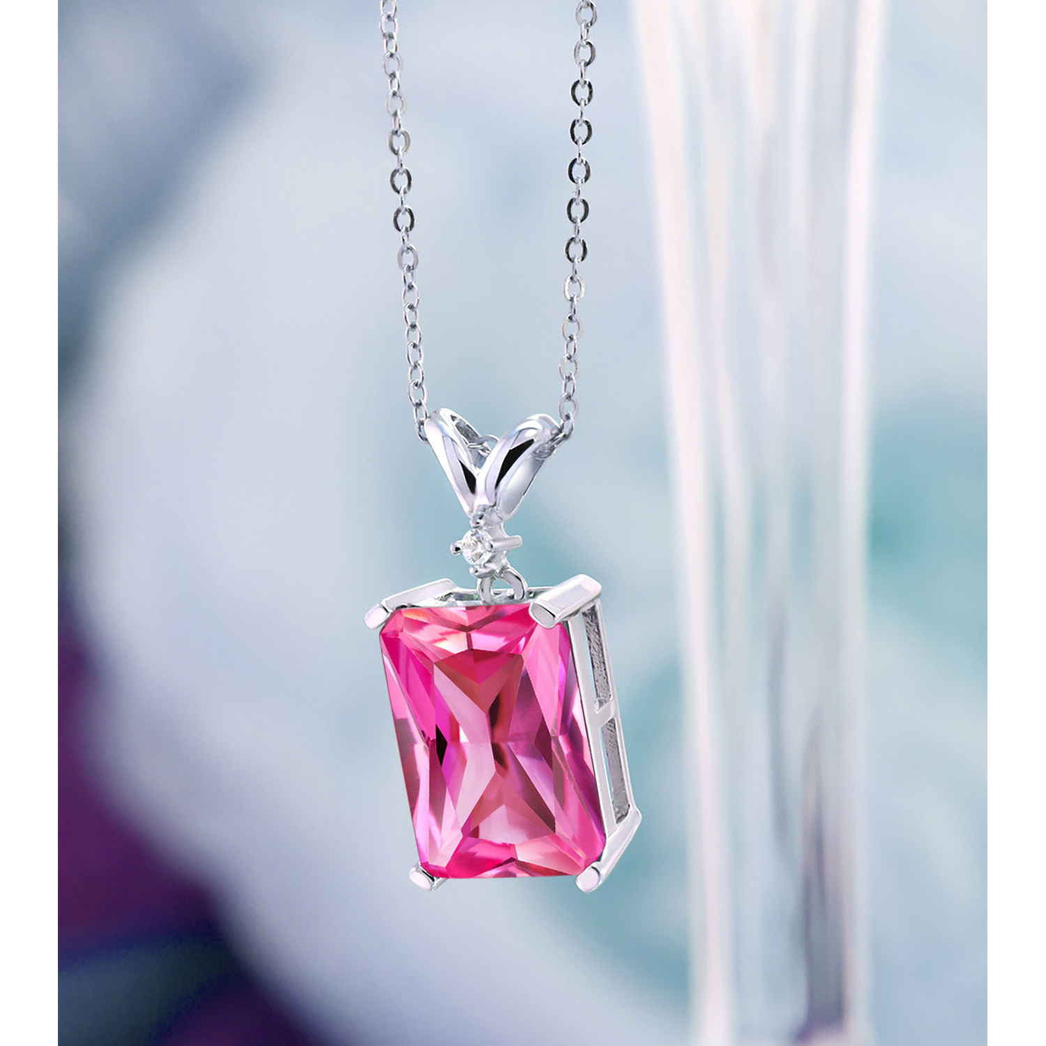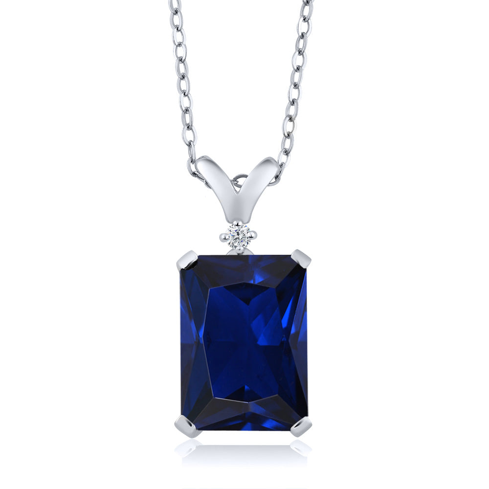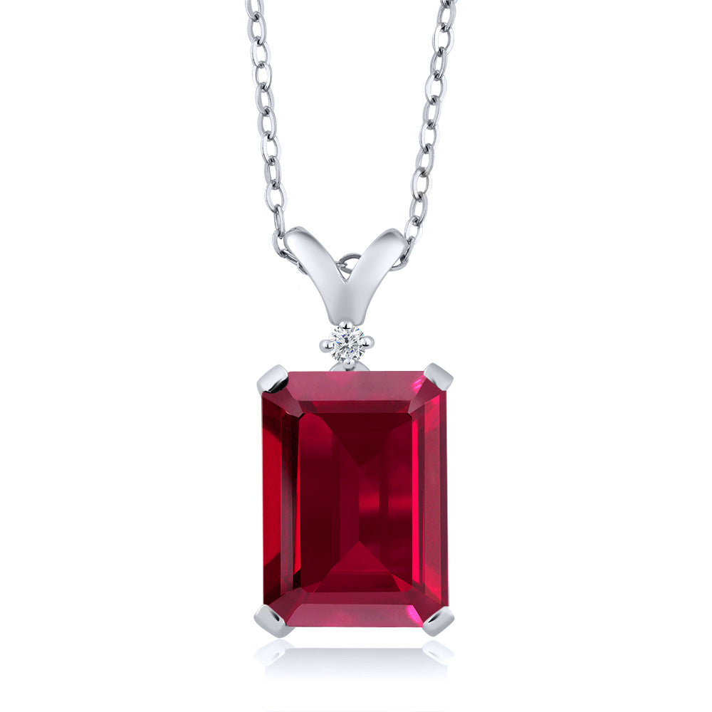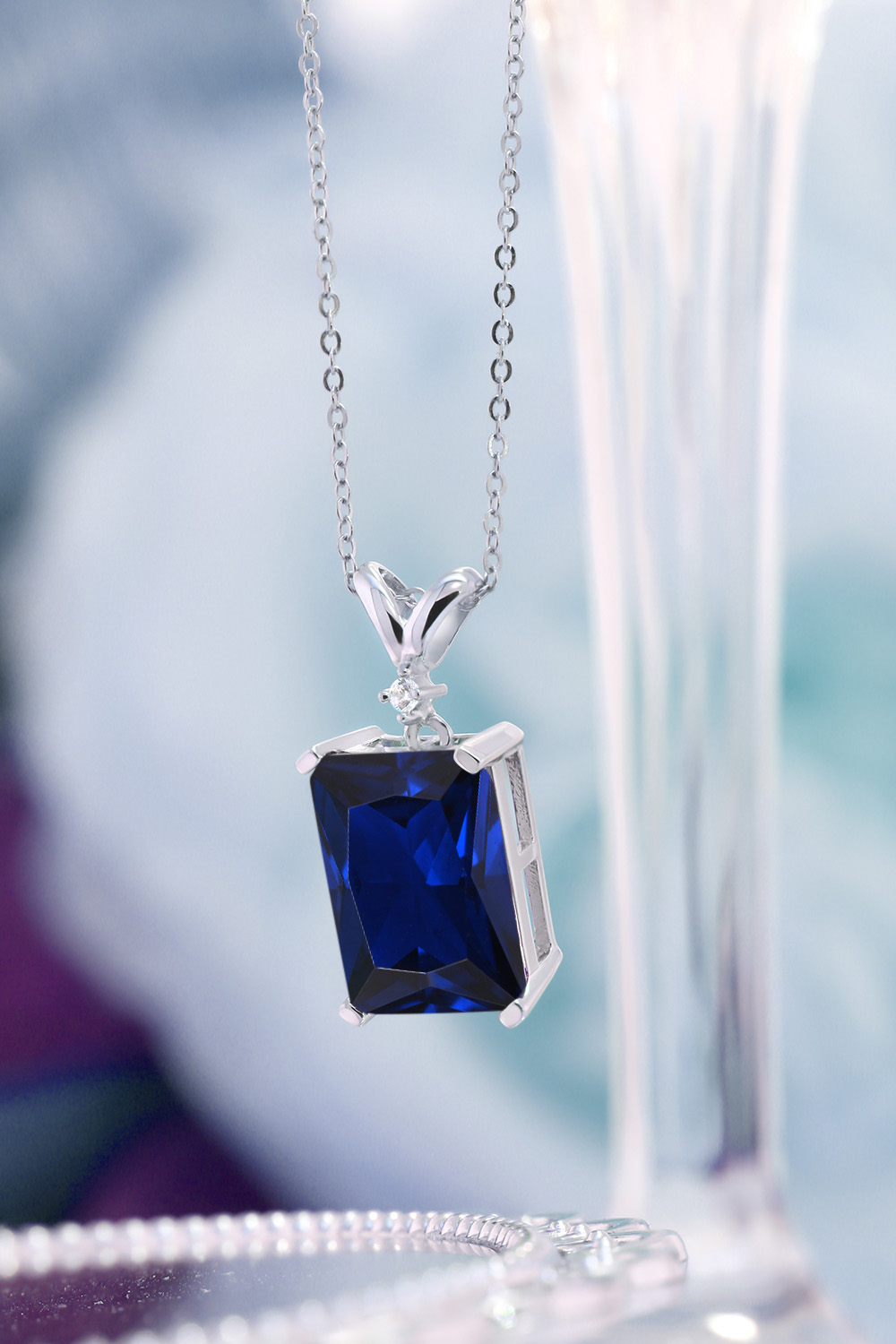5-10 Cttw Gemstone Birthstone and White Diamond Pendant Necklace for Women | 925 Sterling Silver | Emerald Cut 14X10MM | Includes 18 Inch Chain | Fine Jewelry for Her Mom Wife