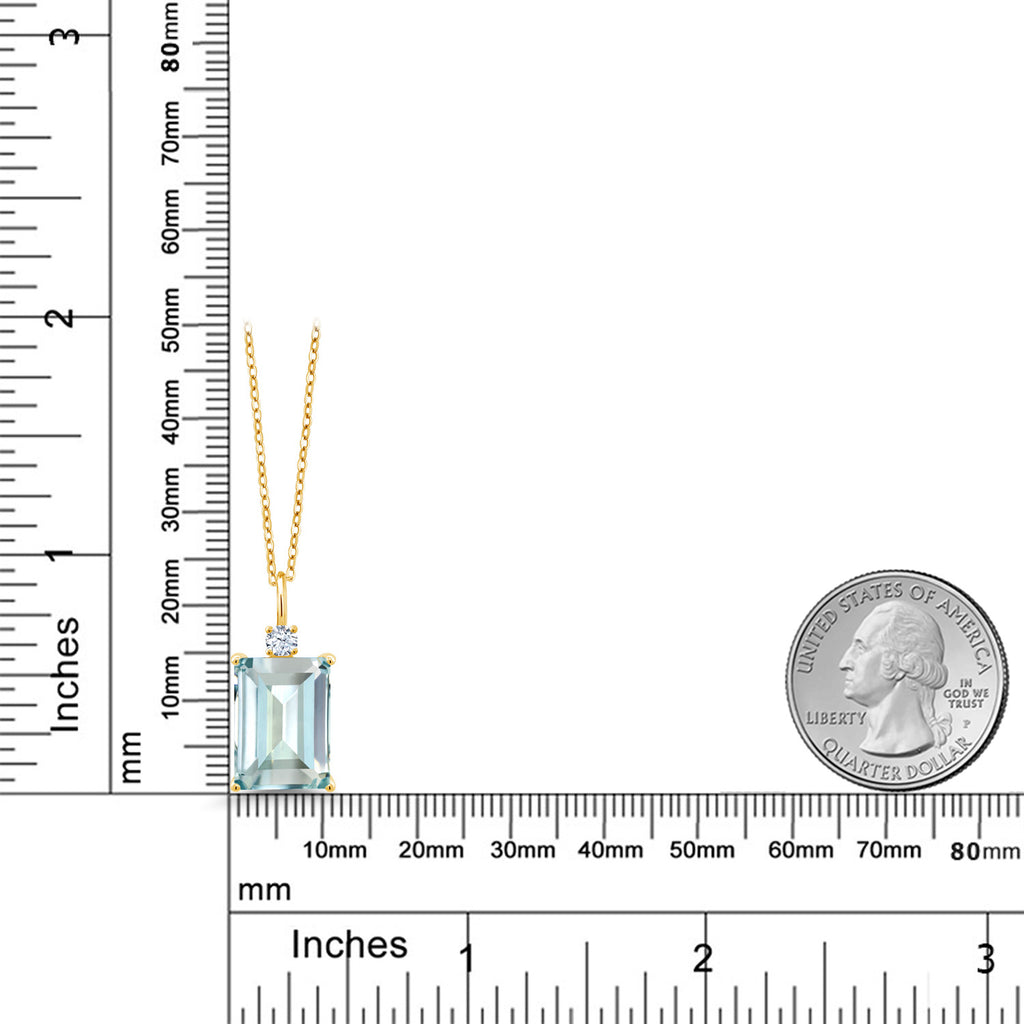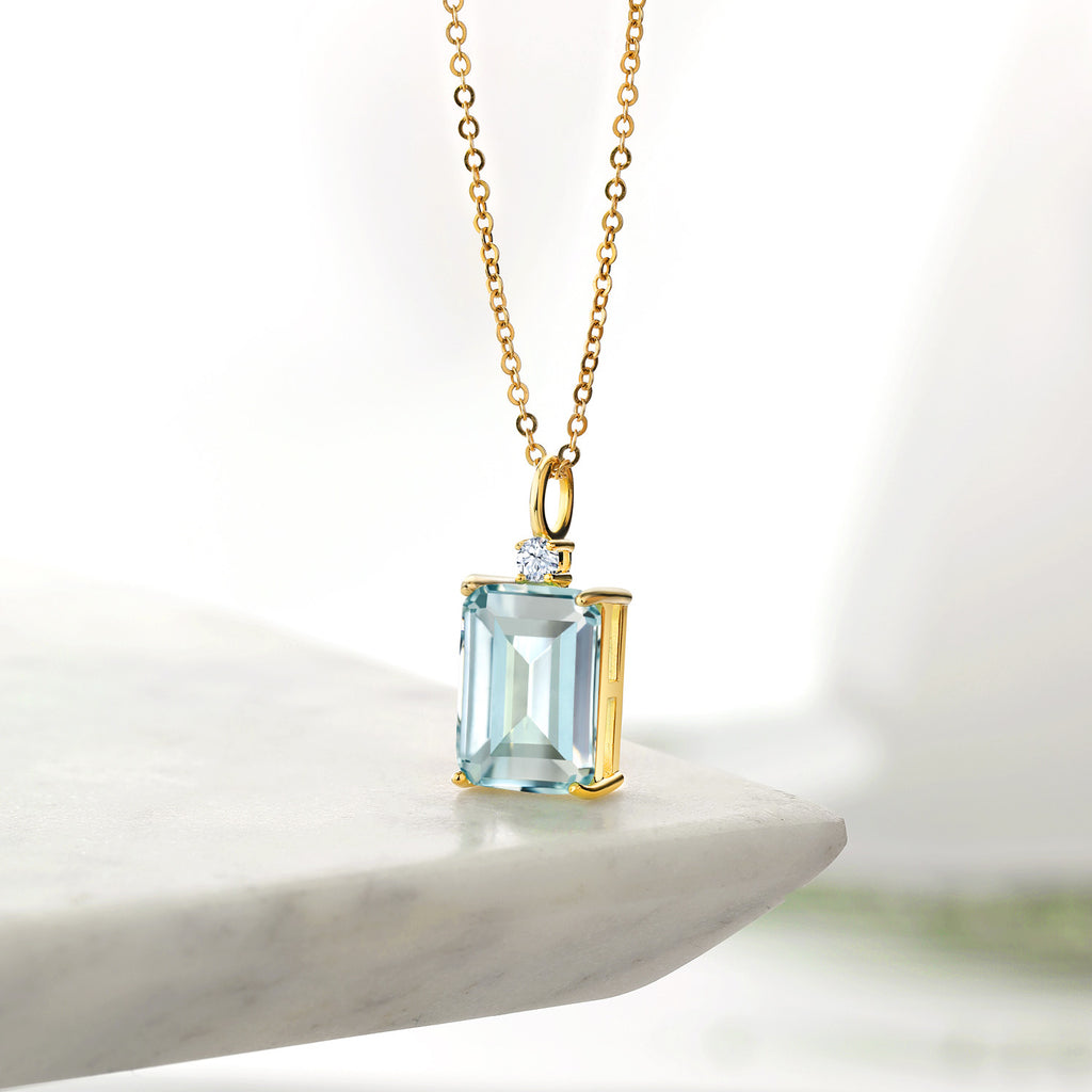 6.75 Cttw 18K Yellow Gold Plated Silver Sky Blue Simulated Aquamarine Pendant Necklace For Women | Emerald Cut 14X10MM and Round 3MM | With 18 inch Chain