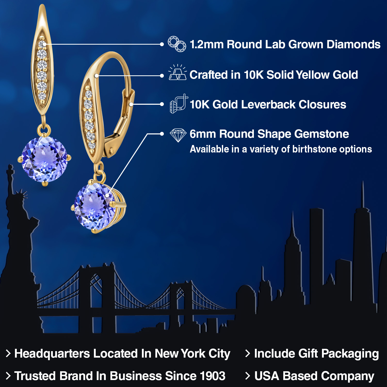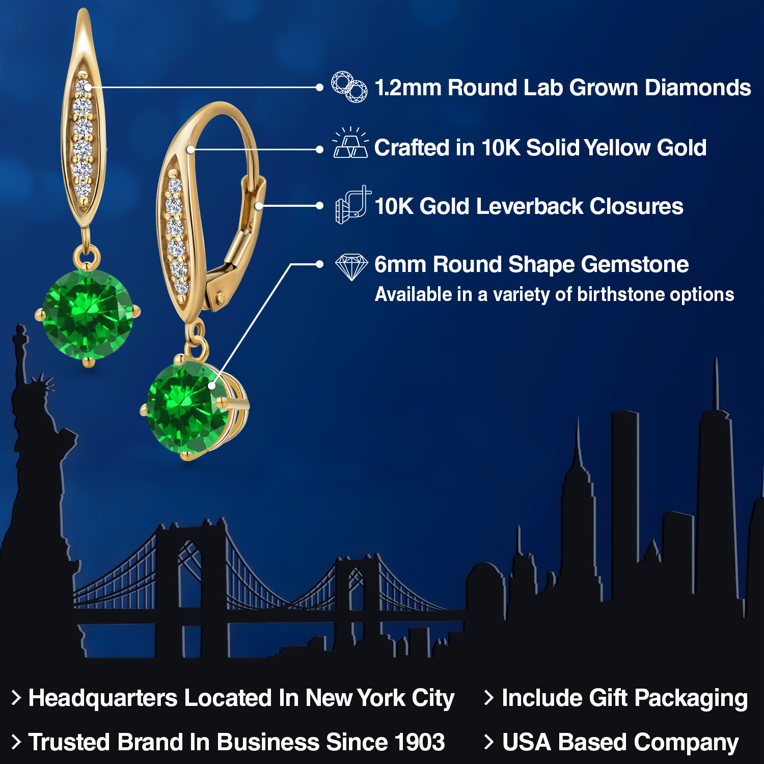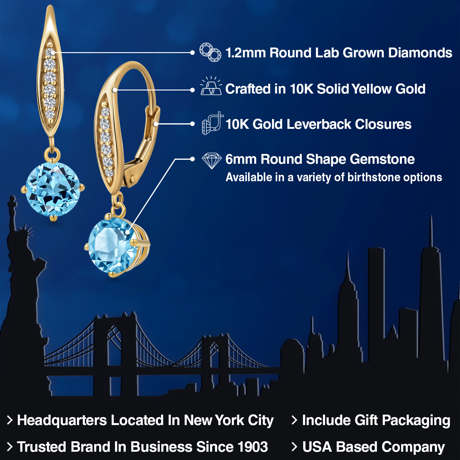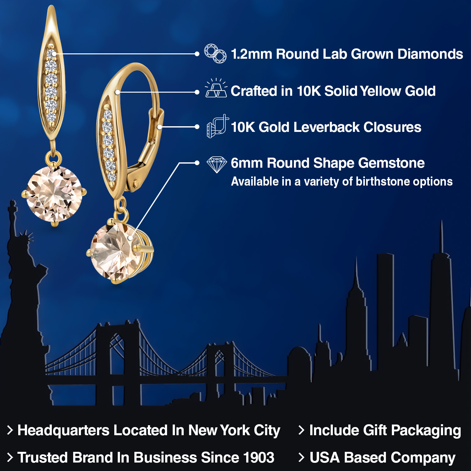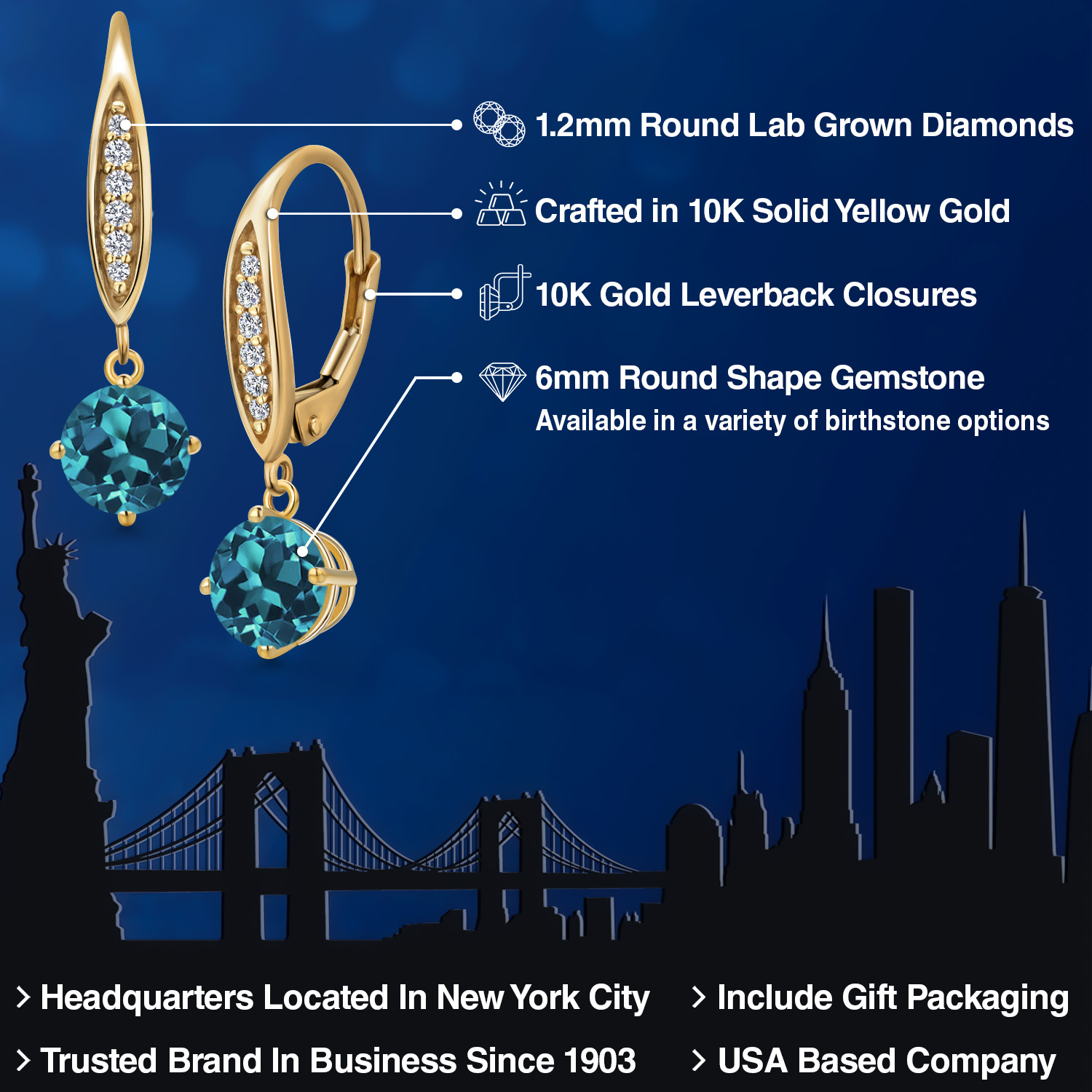 LAB-GROWN DIAMOND ACCENTS AND ARTISAN CRAFTSMANSHIP: Enhancing the allure of these earrings are the sparkling lab-grown diamonds that adorn the leverback. These diamonds exhibit exceptional brilliance, perfectly complementing the gemstone's radiance. Each pair is diligently handcrafted by our skilled artisans, ensuring a flawless finish and a timeless design.