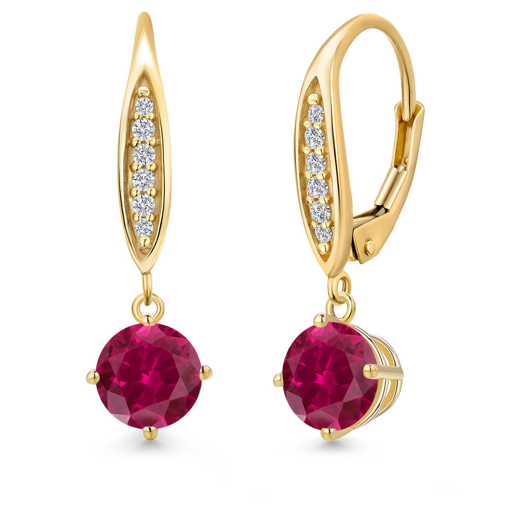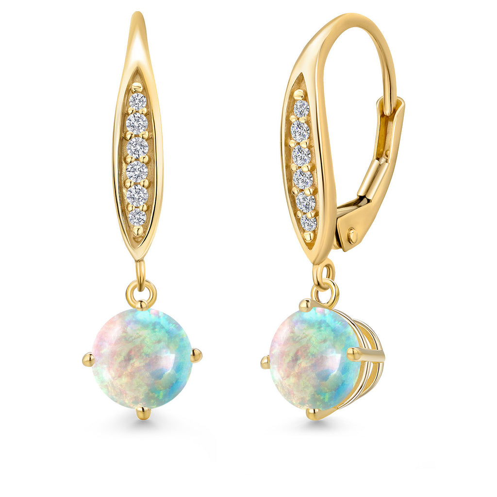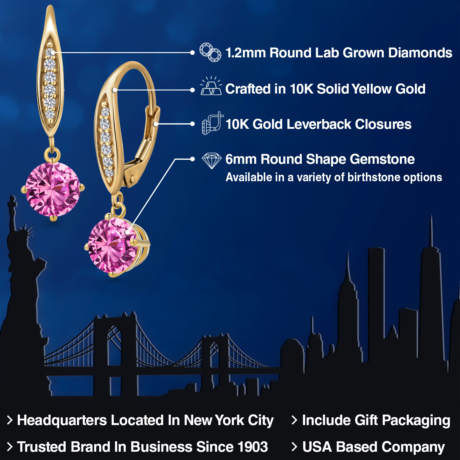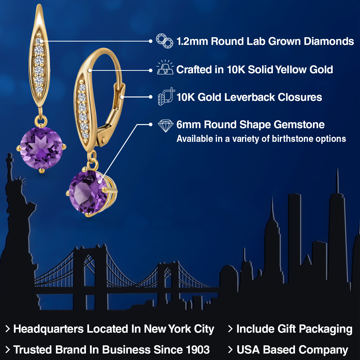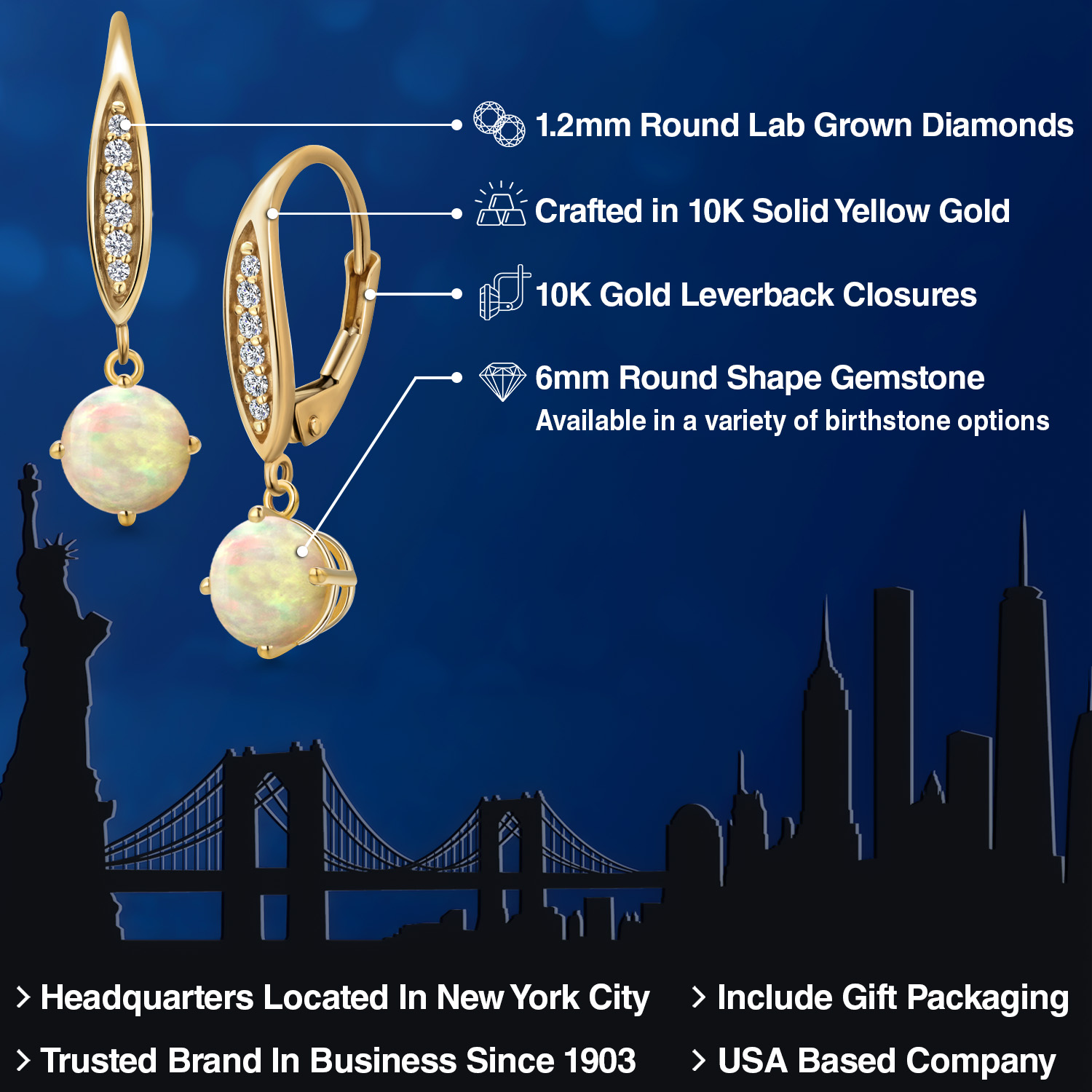 LAB-GROWN DIAMOND ACCENTS AND ARTISAN CRAFTSMANSHIP: Enhancing the allure of these earrings are the sparkling lab-grown diamonds that adorn the leverback. These diamonds exhibit exceptional brilliance, perfectly complementing the gemstone's radiance. Each pair is diligently handcrafted by our skilled artisans, ensuring a flawless finish and a timeless design.