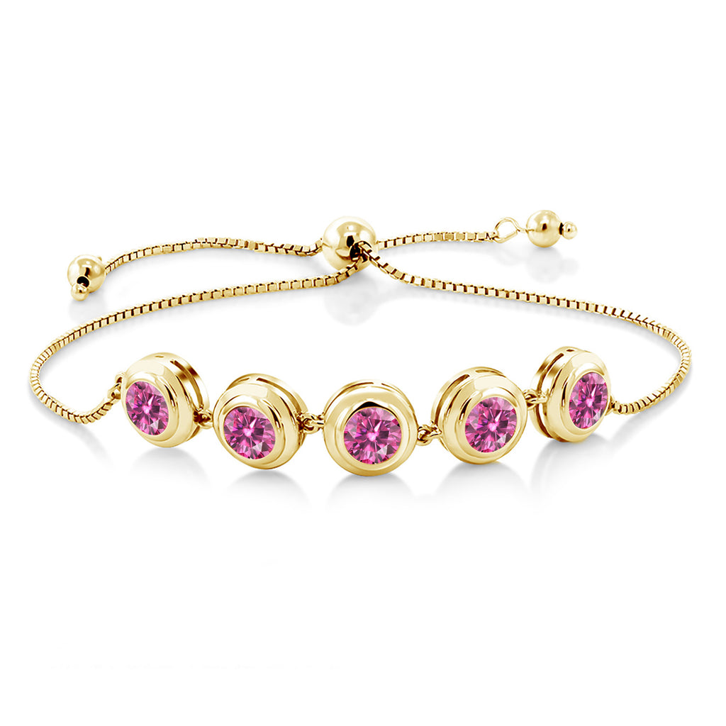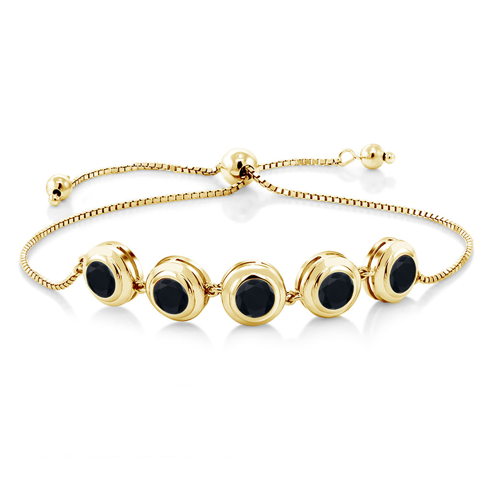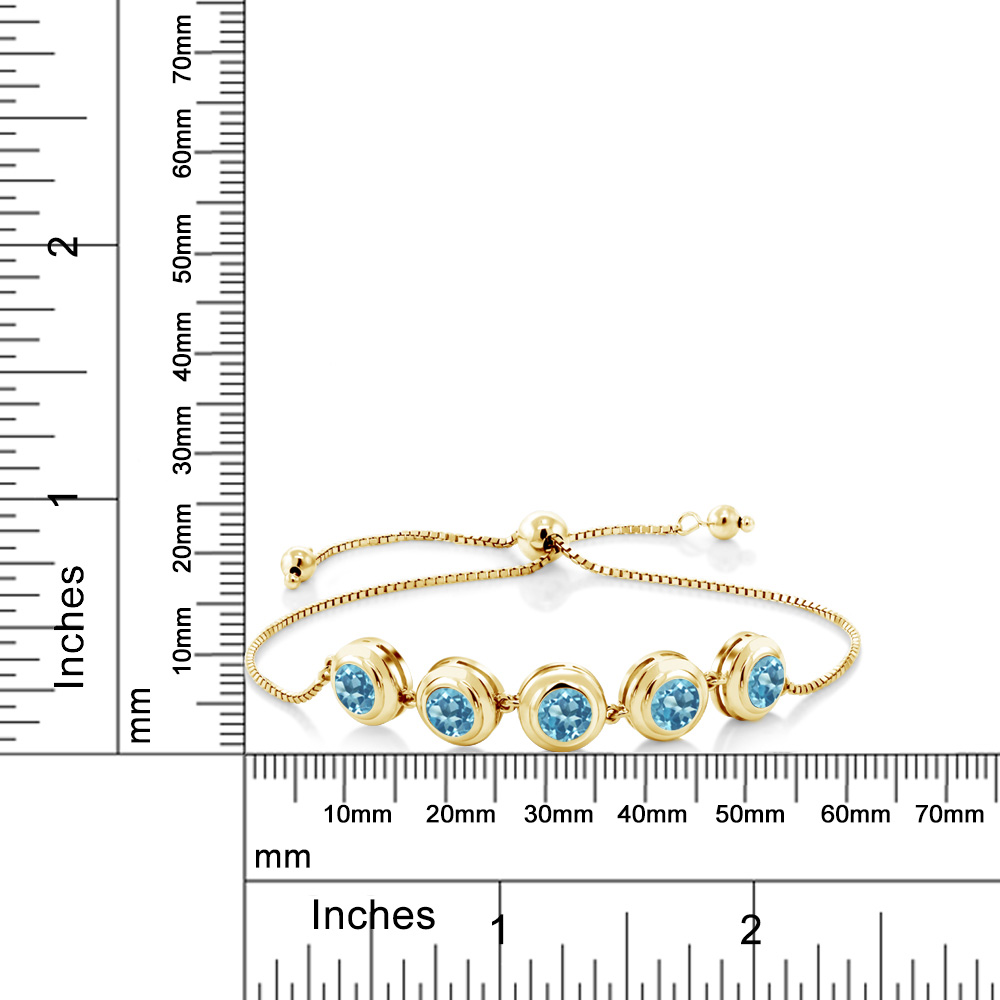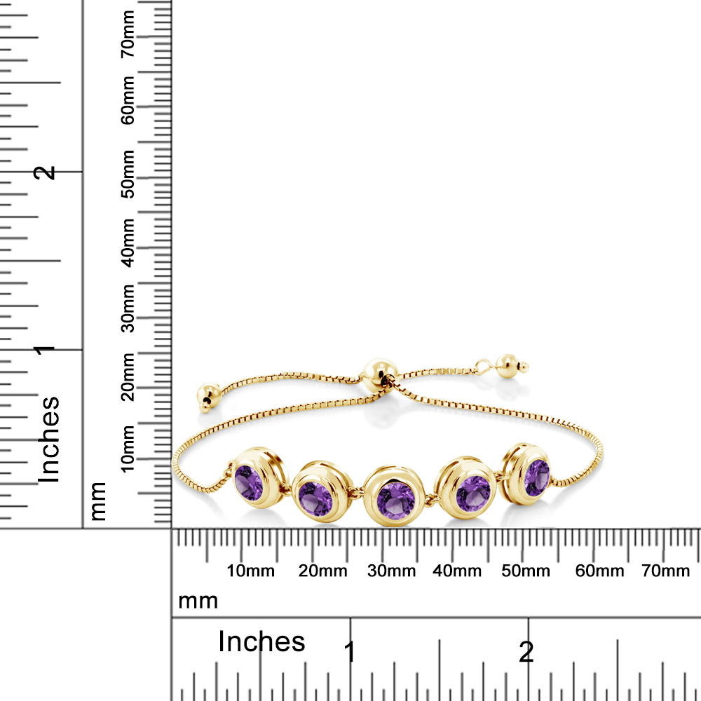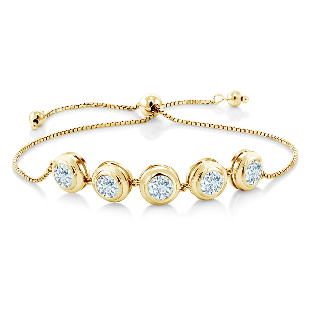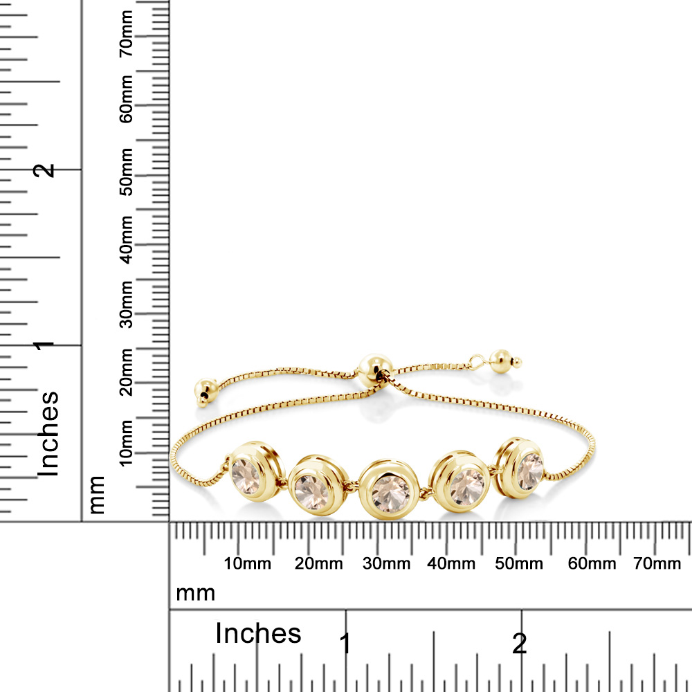 18K Yellow Gold Plated Silver 6MM Round Gemstone Birthstone Tennis Bracelet for Women | Adjustable Slider Clasp Fits Up to 9 Inch | Elegant Fine Jewelry for Her Mom Wife