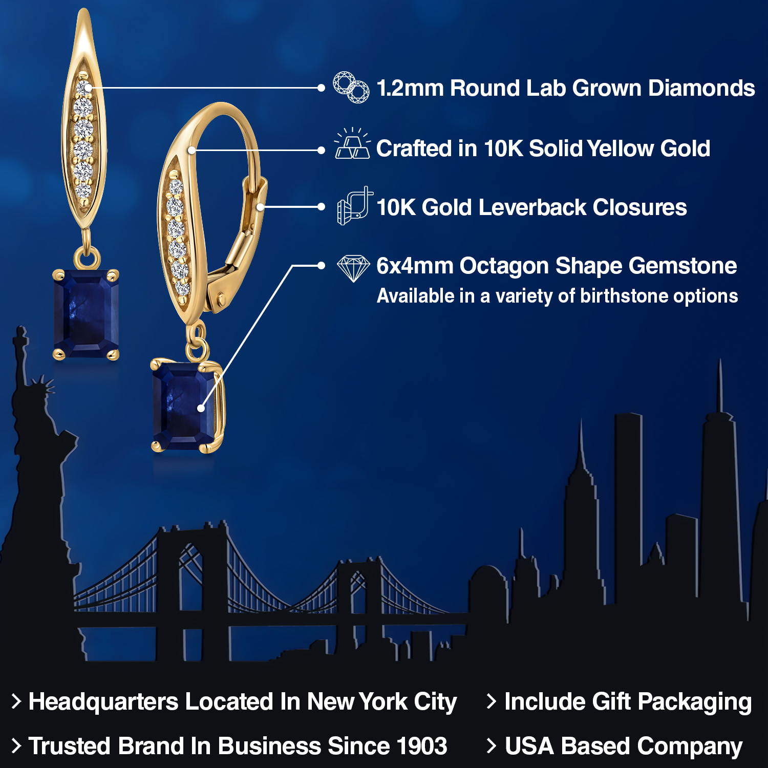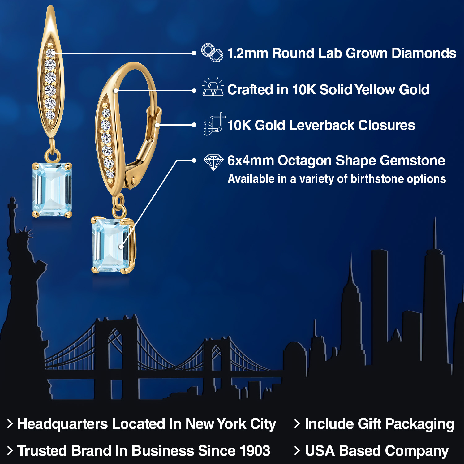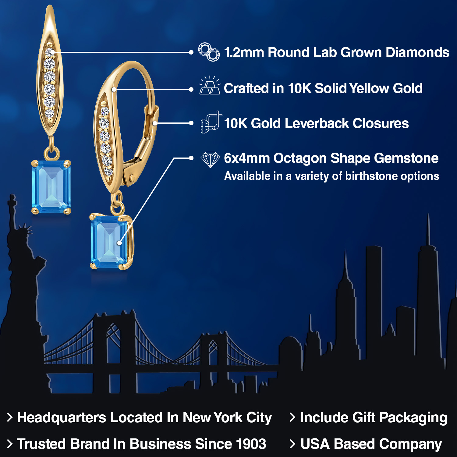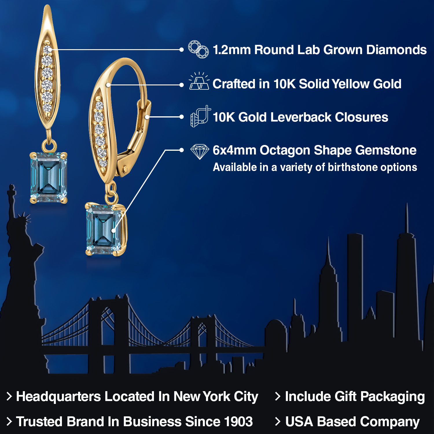 6X4MM Emerald Cut Gemstone Birhtstone and Lab Grown Diamond Leverback Dangle Earrings for Women in 10K Yellow Gold | Fine Jewelry Gifts for Her Mom Women Wife