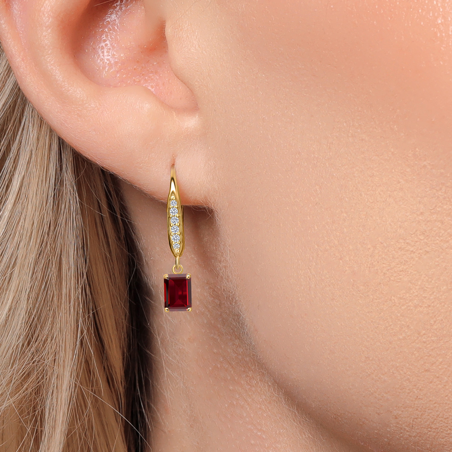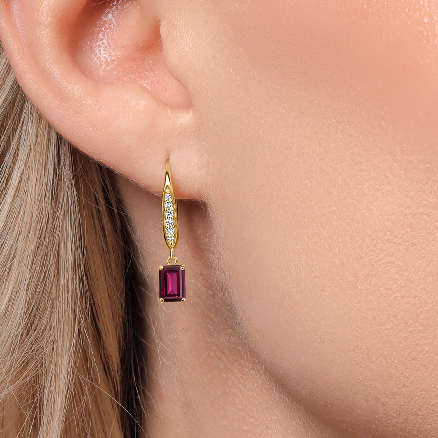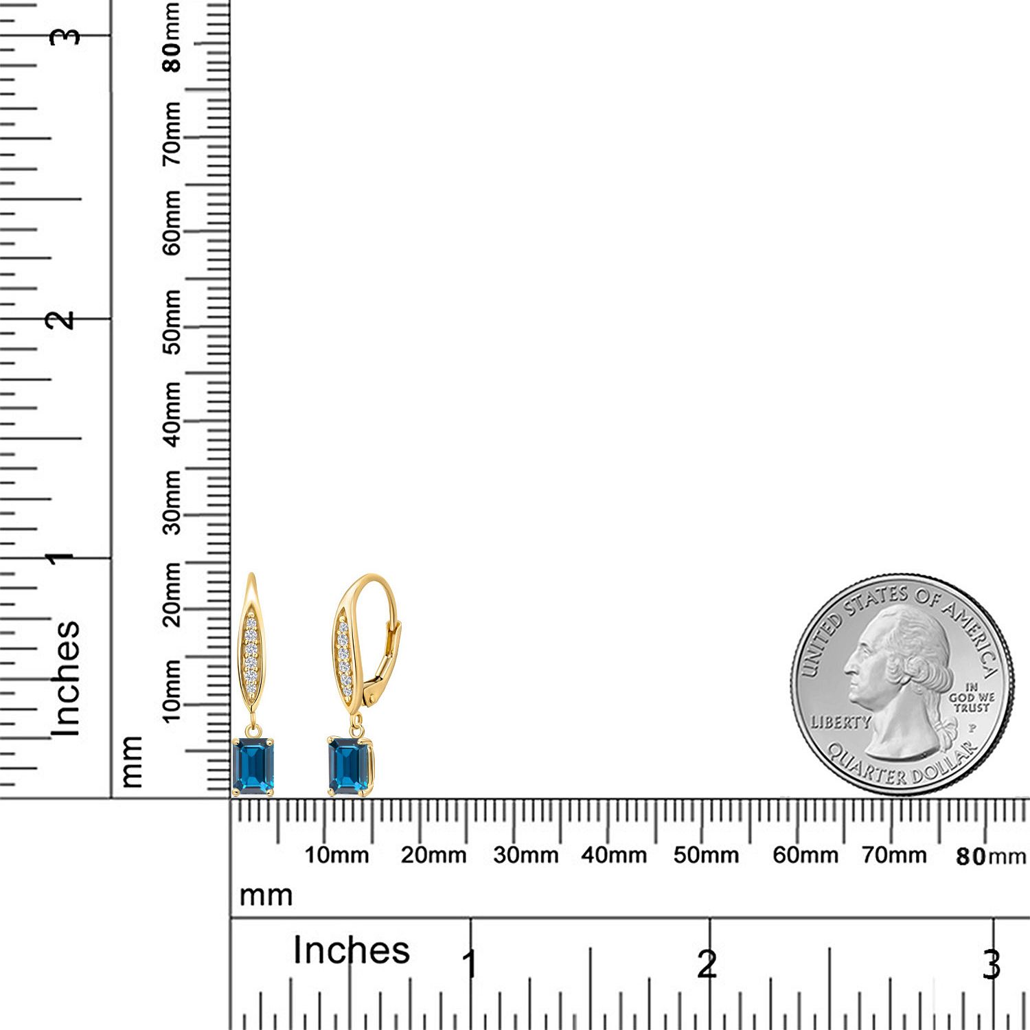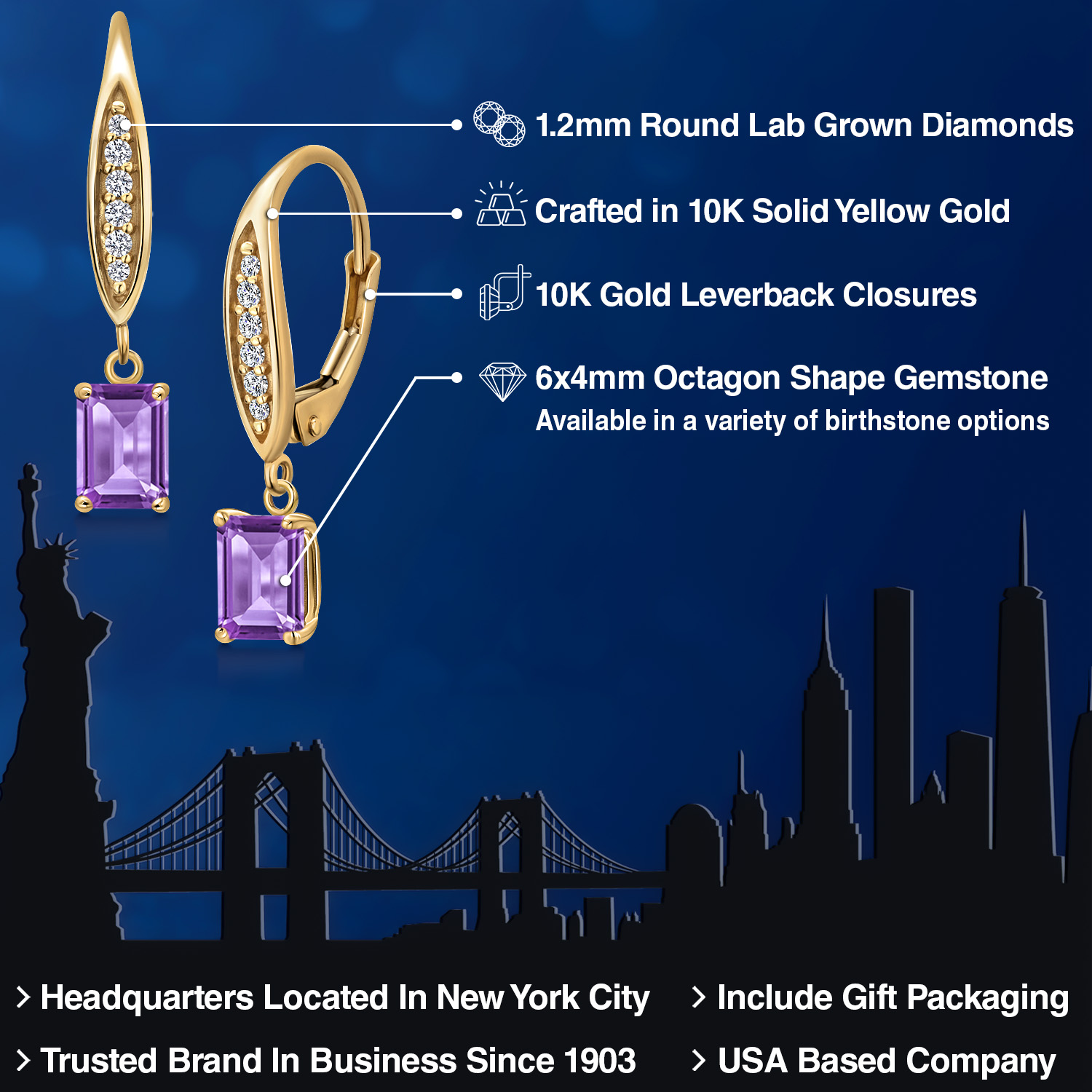 6X4MM Emerald Cut Gemstone Birhtstone and Lab Grown Diamond Leverback Dangle Earrings for Women in 10K Yellow Gold | Fine Jewelry Gifts for Her Mom Women Wife