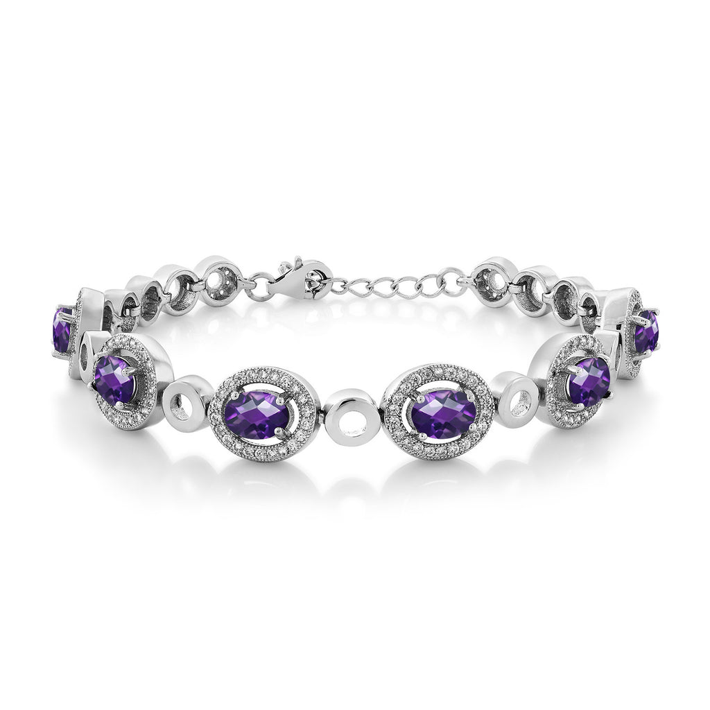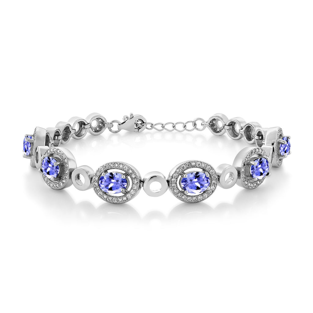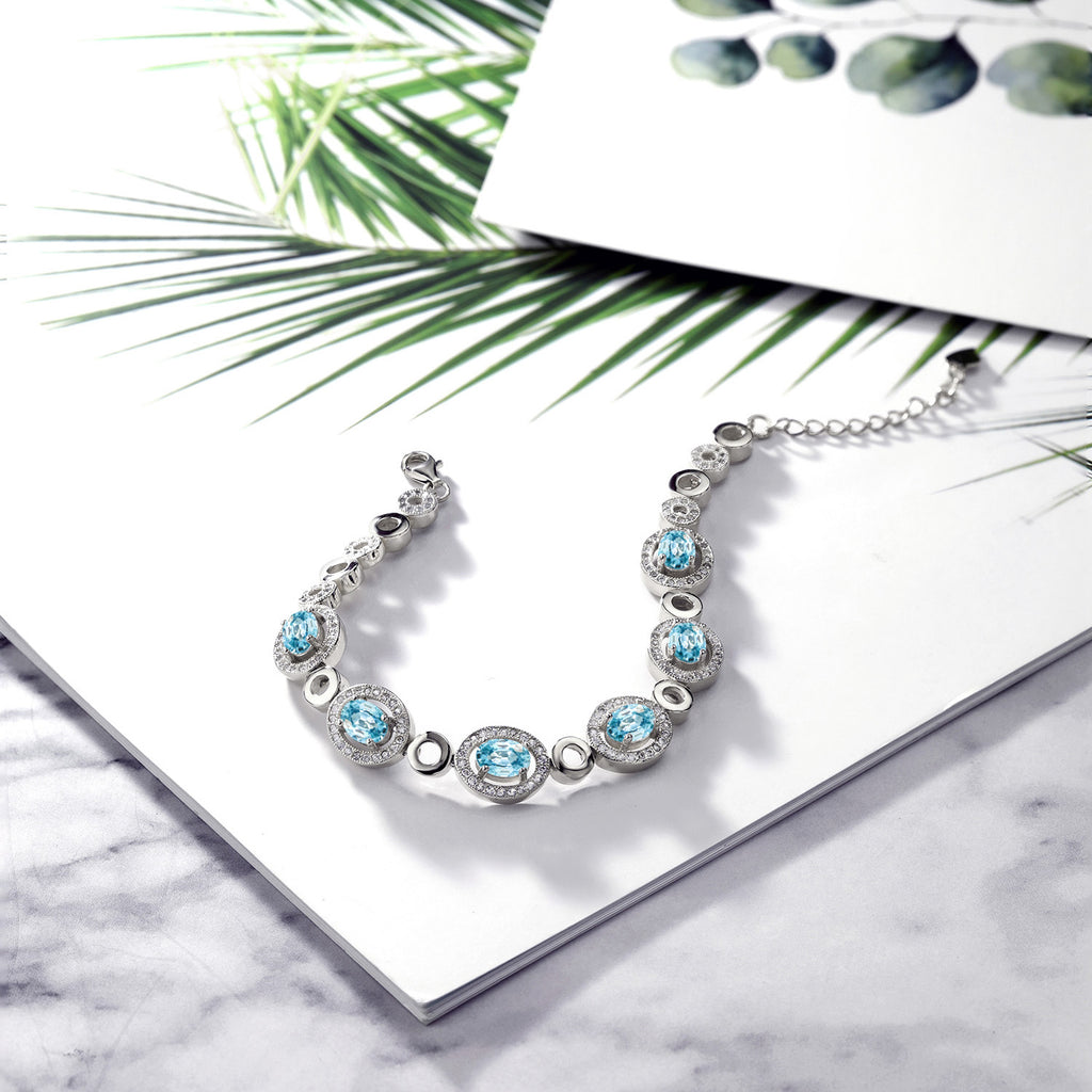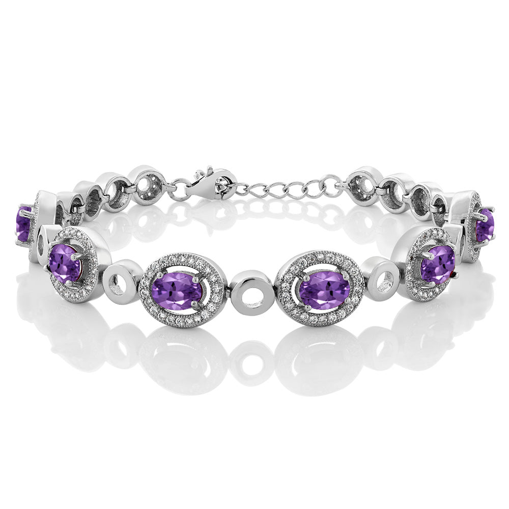 Oval Gemstone Birthstone Tennis Bracelet For Women | 925 Sterling Silver | Oval 7X5MM | 7 Inch with 1 Inch Extender | Fine Jewelry Gifts for Her Mom Women Wife
