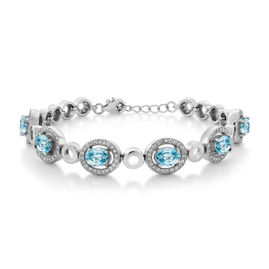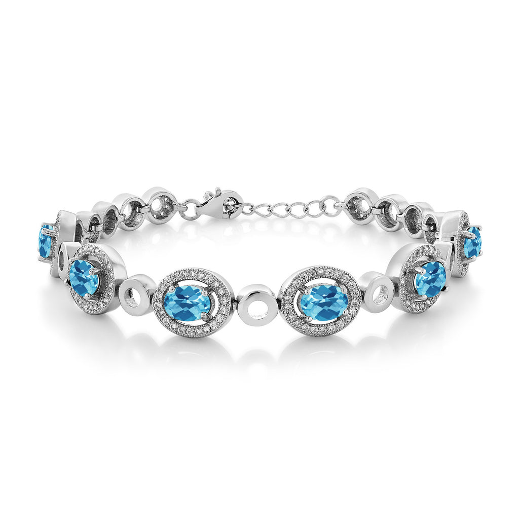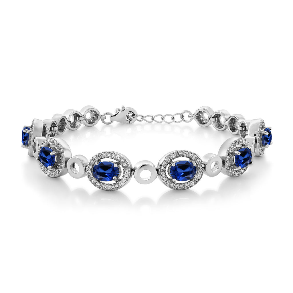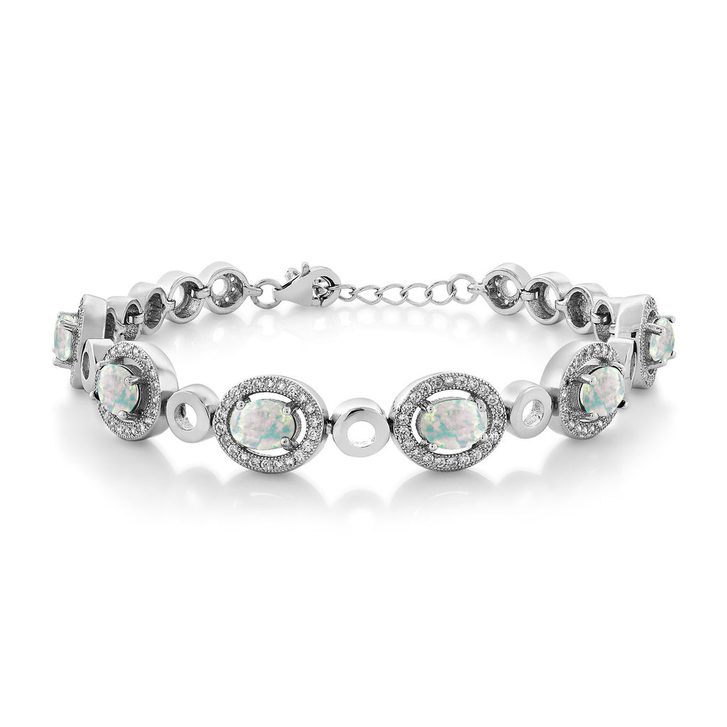 Oval Gemstone Birthstone Tennis Bracelet For Women | 925 Sterling Silver | Oval 7X5MM | 7 Inch with 1 Inch Extender | Fine Jewelry Gifts for Her Mom Women Wife