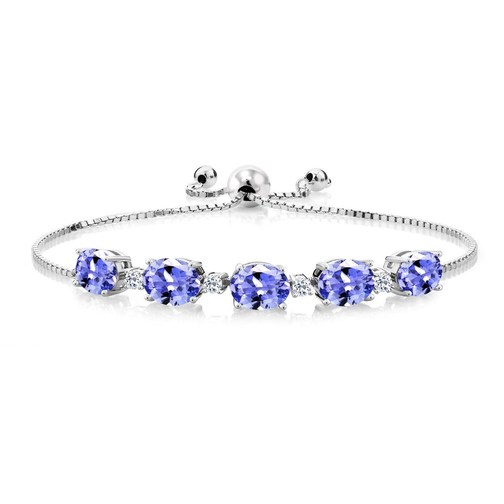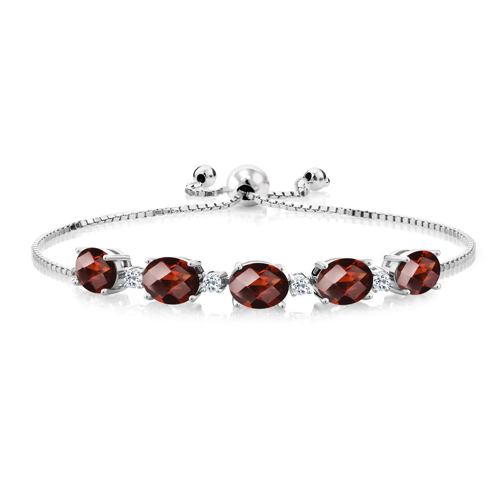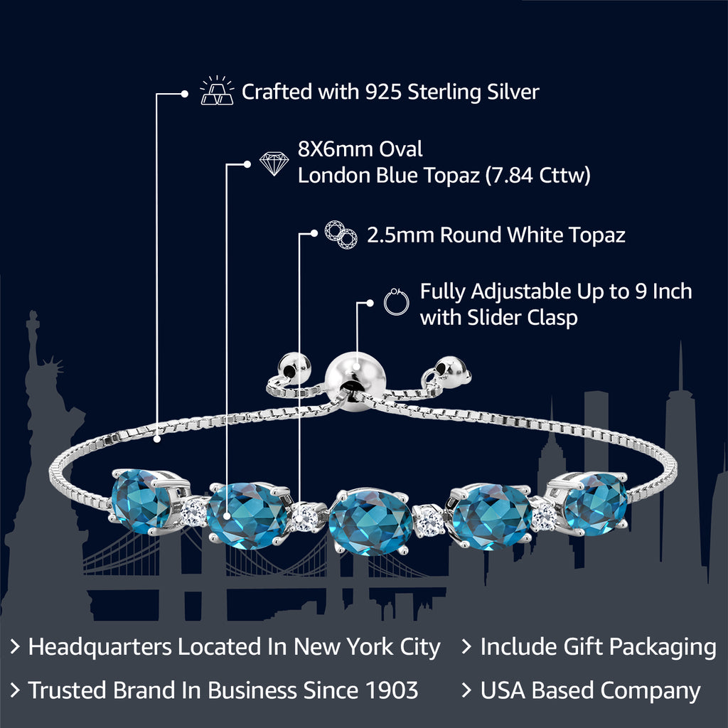925 Sterling Silver Gemstone Birthstone and White Topaz Tennis Bracelet for Women | Oval 8X6MM with Round 2.5MM Accents | Adjustable Bolo Chain | Fine Jewelry for Her Mom Wife