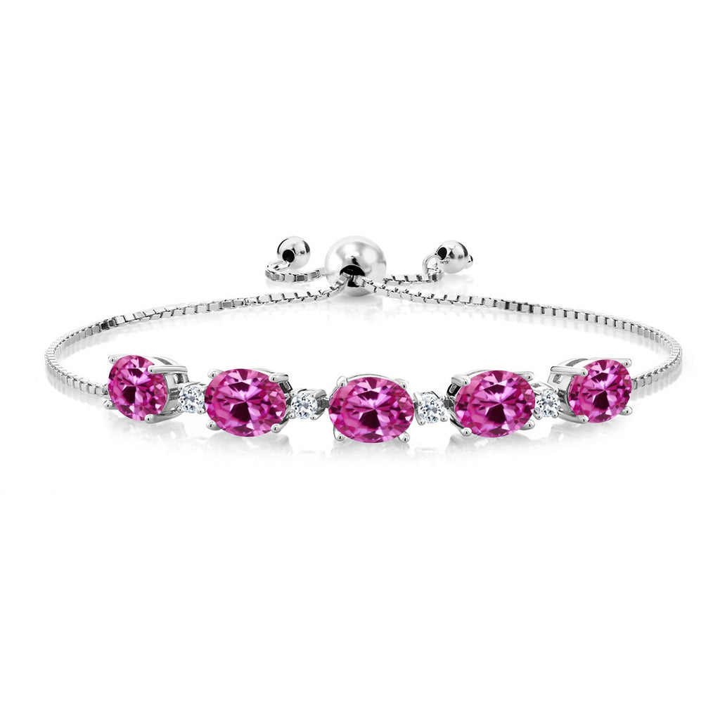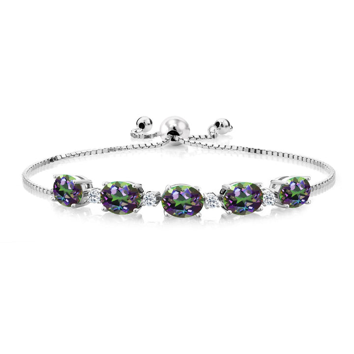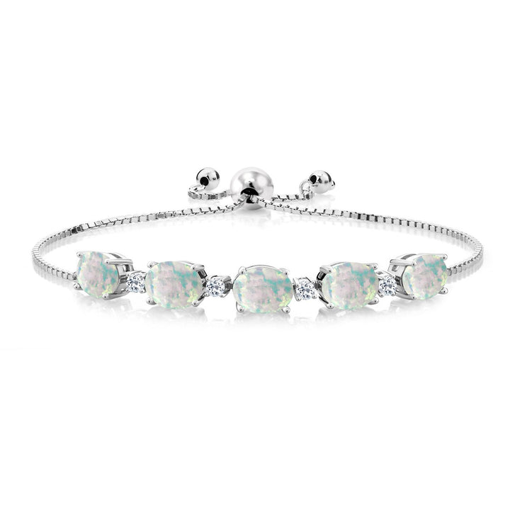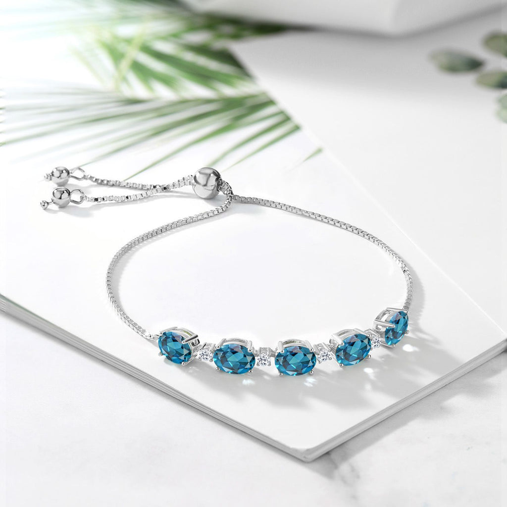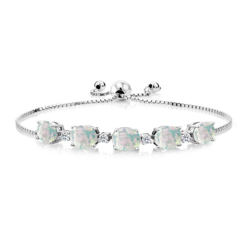 925 Sterling Silver Gemstone Birthstone and White Topaz Tennis Bracelet for Women | Oval 8X6MM with Round 2.5MM Accents | Adjustable Bolo Chain | Fine Jewelry for Her Mom Wife
