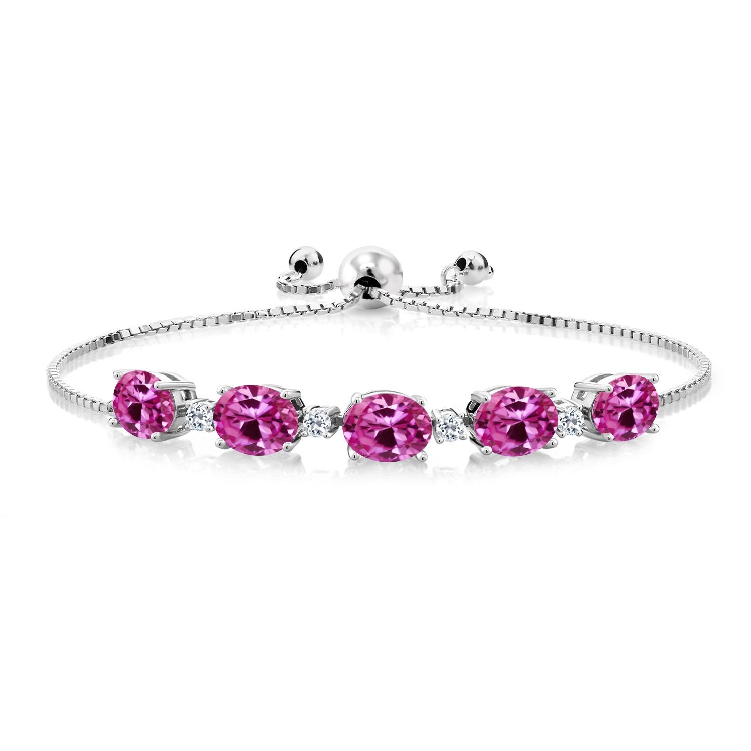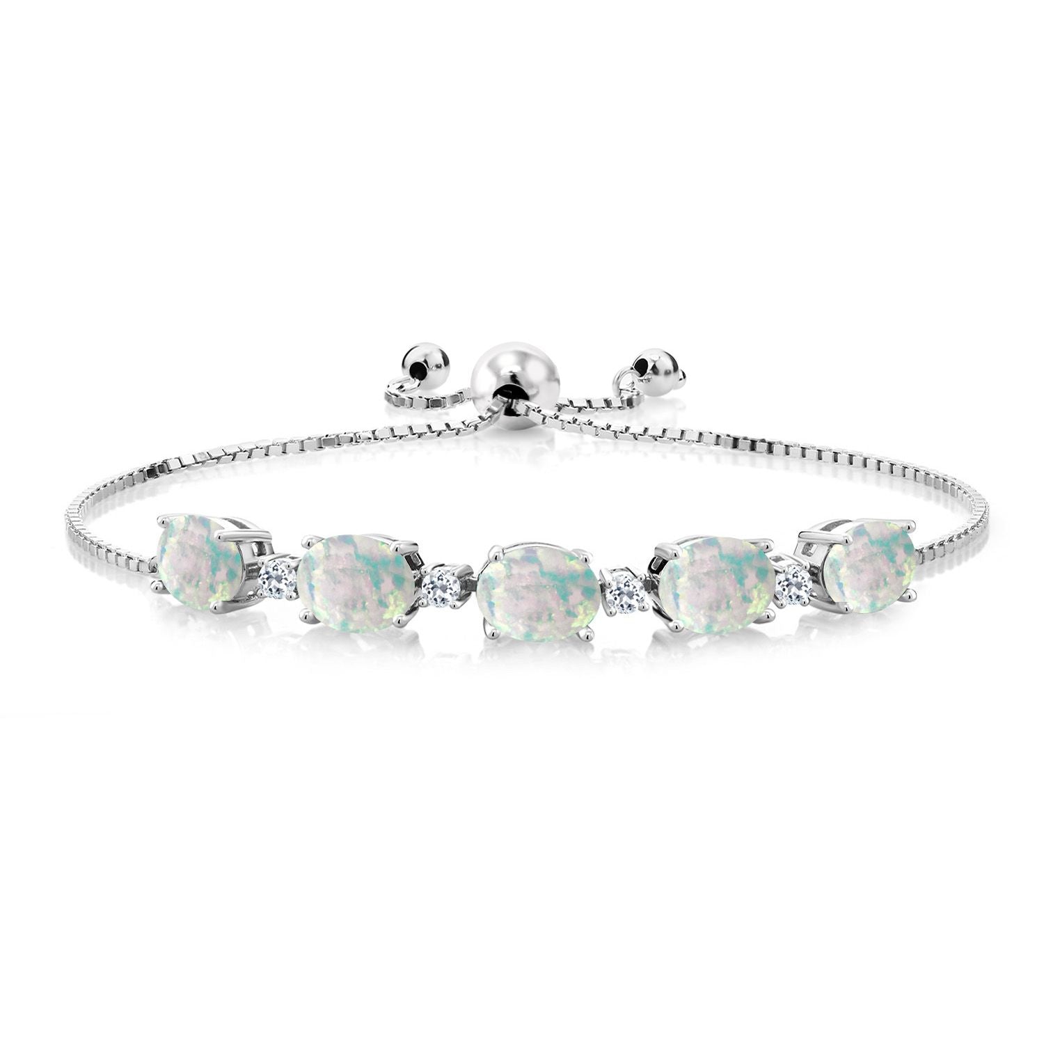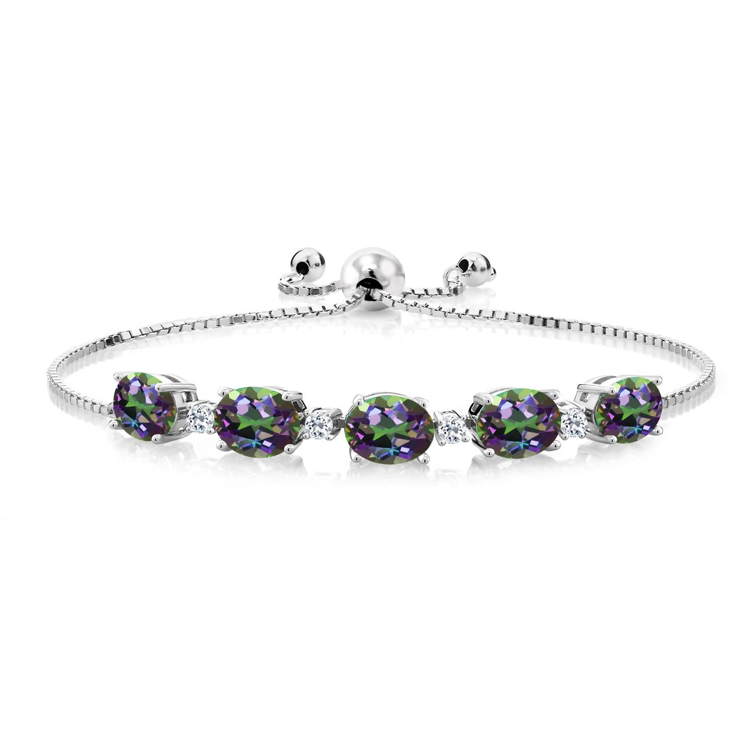INTRICATE DESIGN WITH WHITE TOPAZ ACCENTS: The bracelet features round 2.5MM white topaz accents that add a sparkling contrast to the vibrant birthstones. This exquisite combination is a testament to expert craftsmanship, with each stone meticulously set to create a harmonious and elegant design. The adjustable bolo chain ensures a perfect fit for any wrist size, offering both style and convenience for everyday wear.