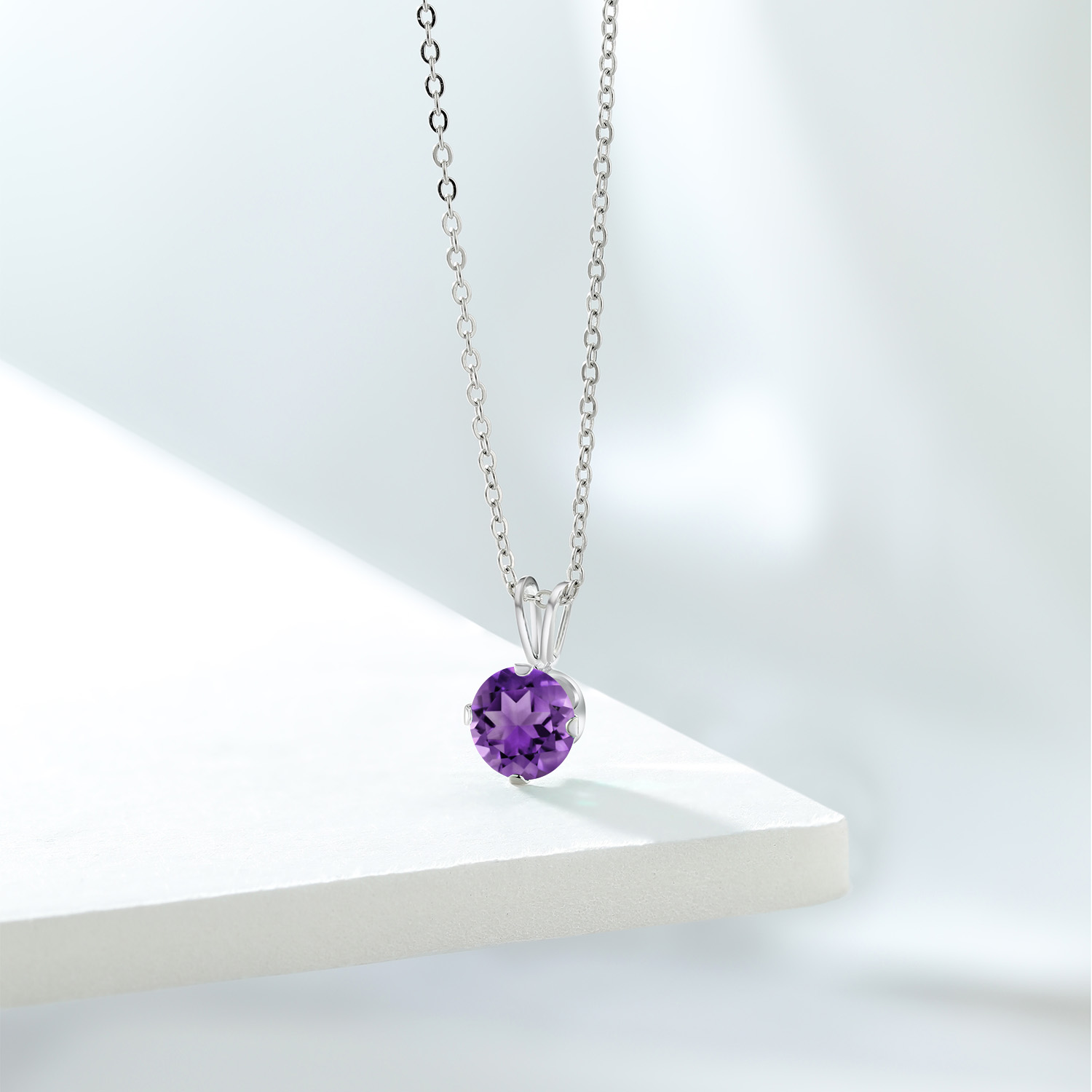 ELEGANT PENDANT NECKLACE: Elevate your style with this stunning 925 sterling silver pendant necklace featuring a classic 7mm round gemstone birthstone, exuding elegance and charm, perfect for daily wear or special occasions.