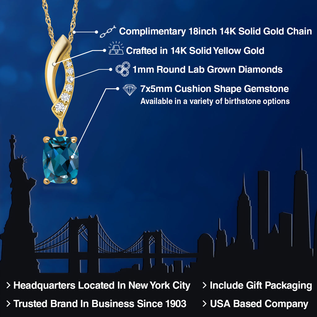 7X5MM Cushion Cut Gemstone Birthstone and White Lab Grown Diamond Infinity Pendant Necklace For Women in 14K Yellow Gold | Gold Necklace For Women | With 18 Inch Gold Chain
