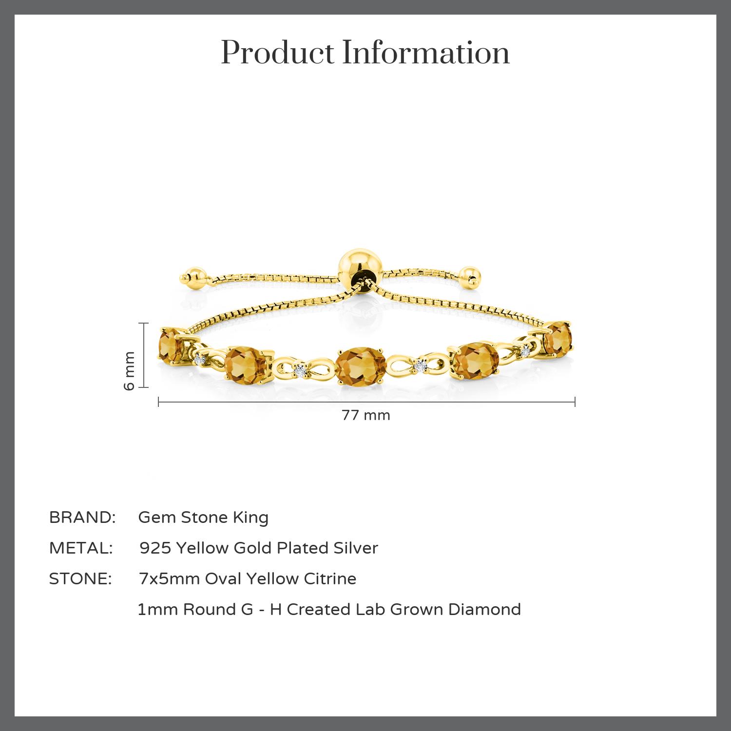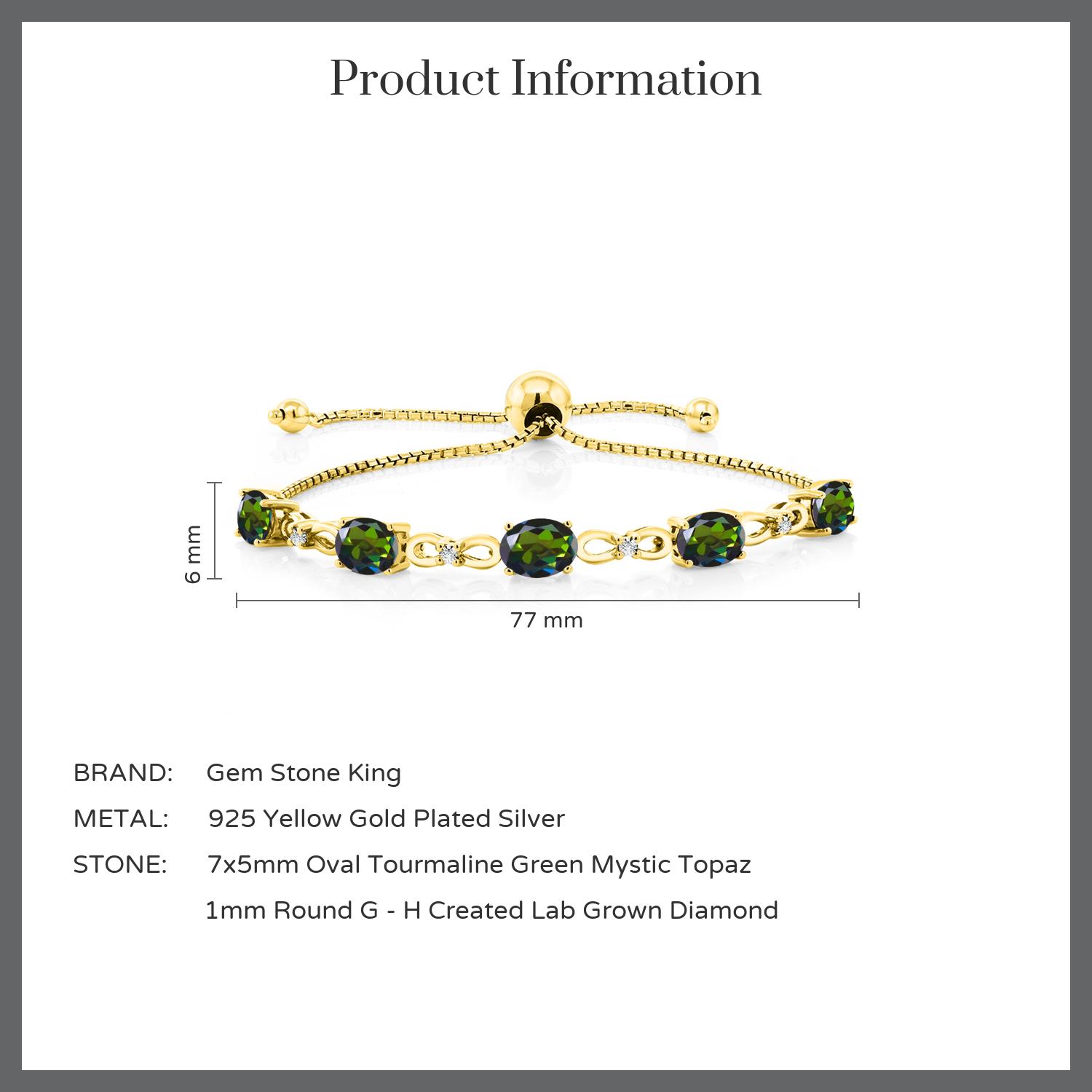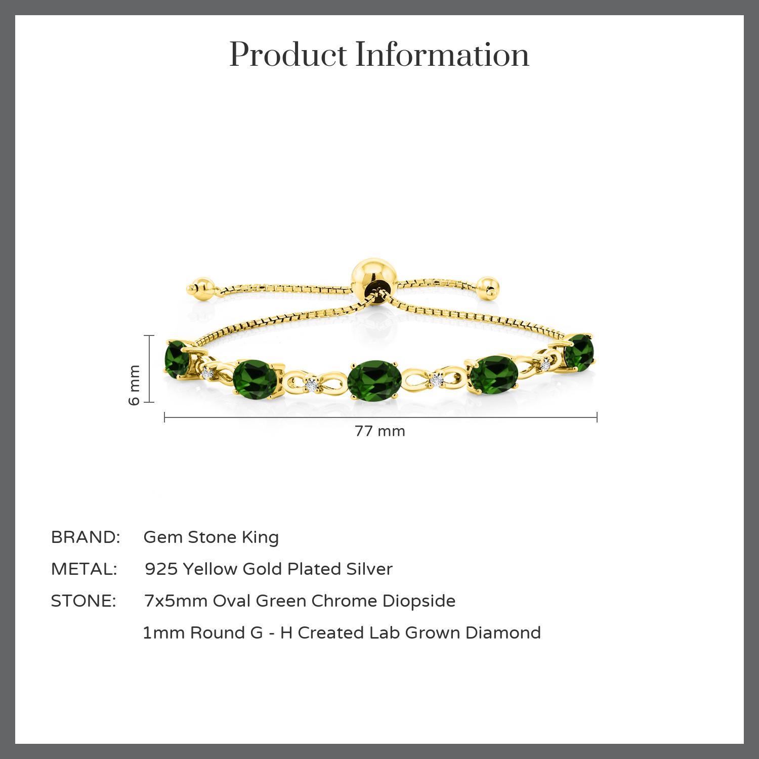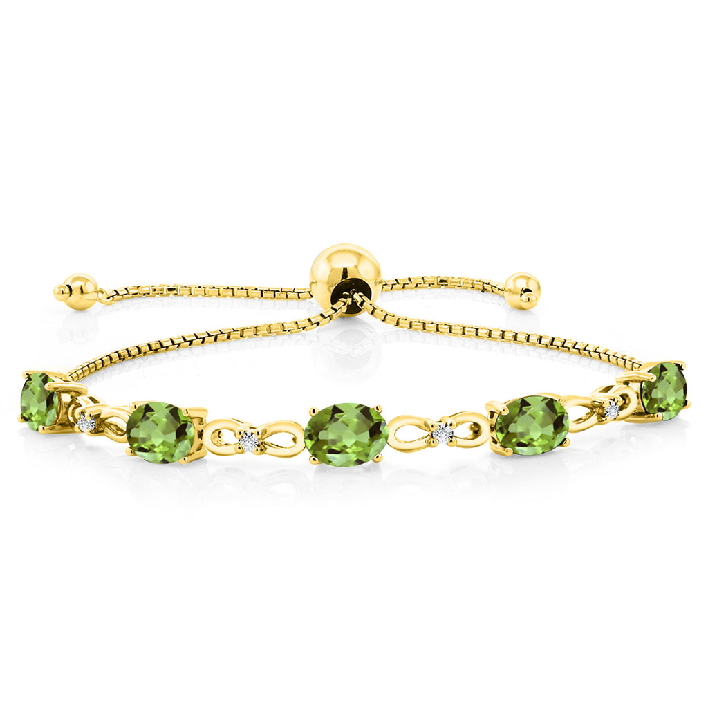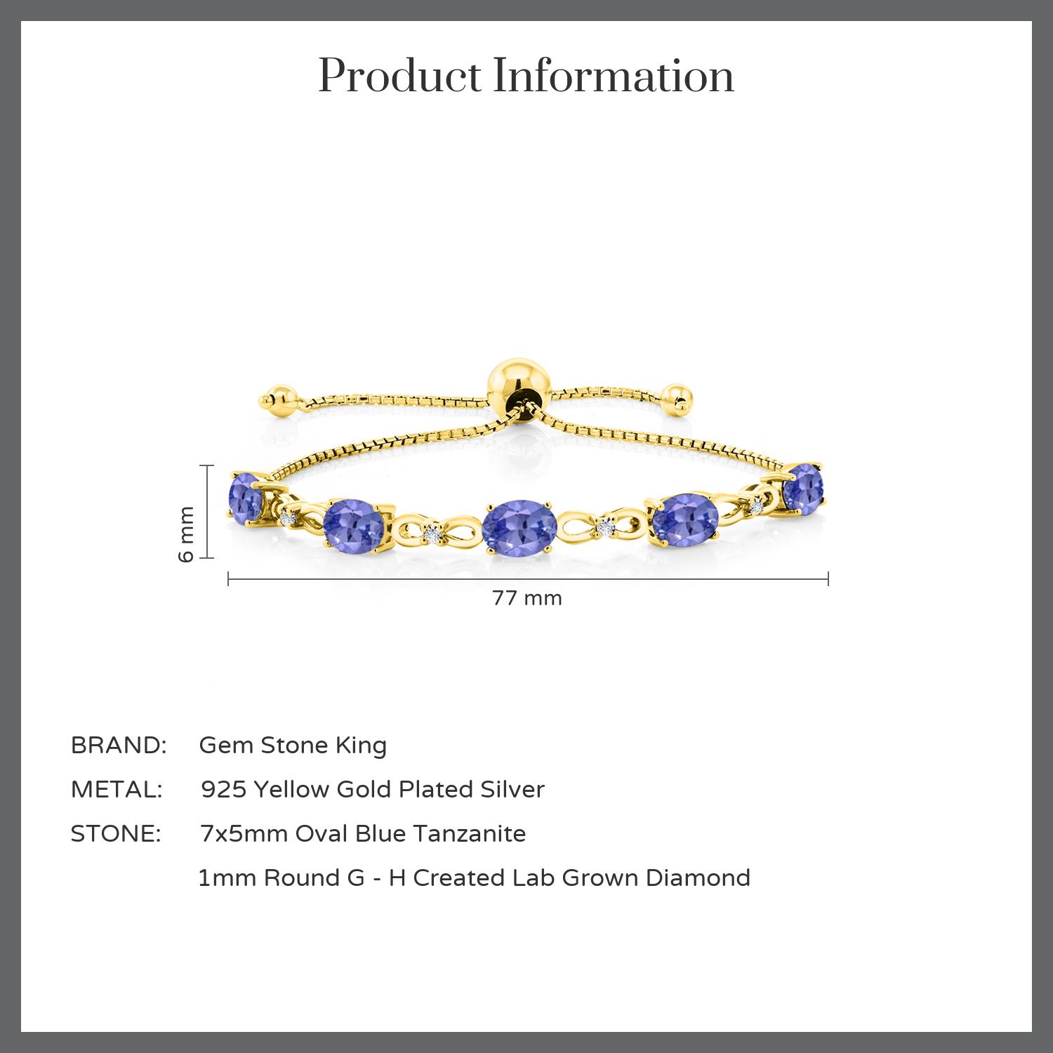 7X5MM Oval Cut Gemstone Birthstone and Accent Lab Grown Diamond Tennis Bracelet For Women In 18K Yellow Gold Plated Silver | Adjustable Bolo Bracelet For Women | Easy-On Easy-Off