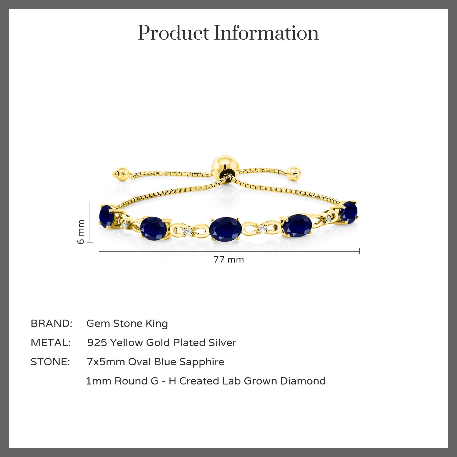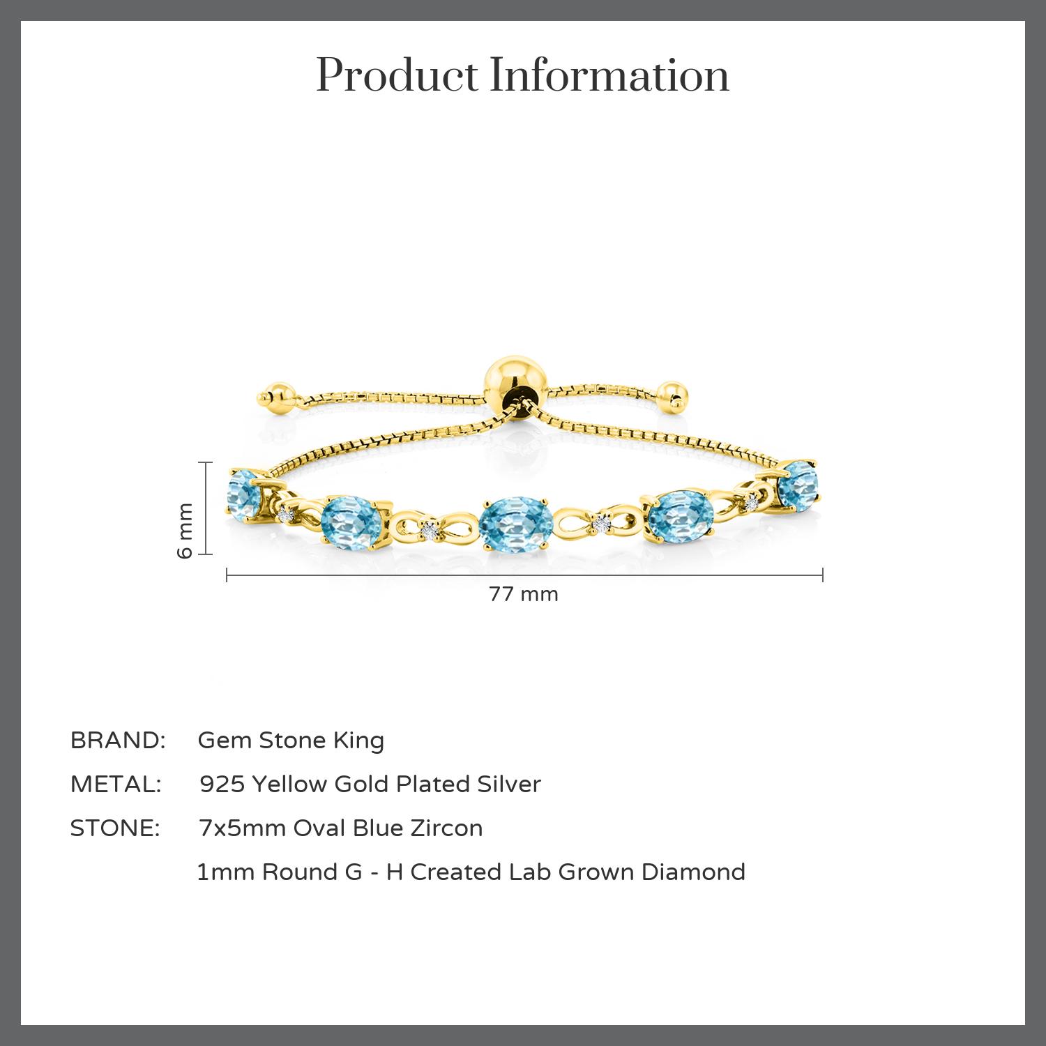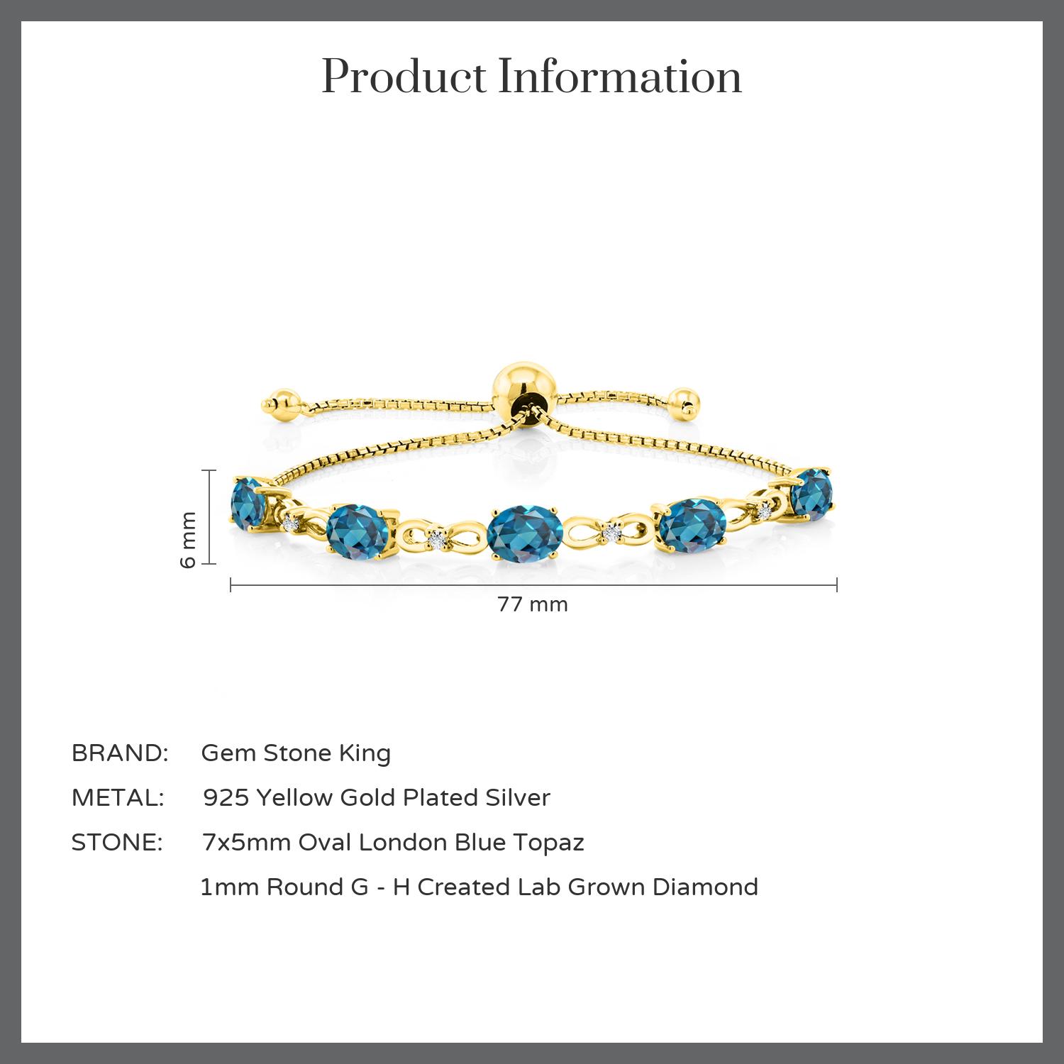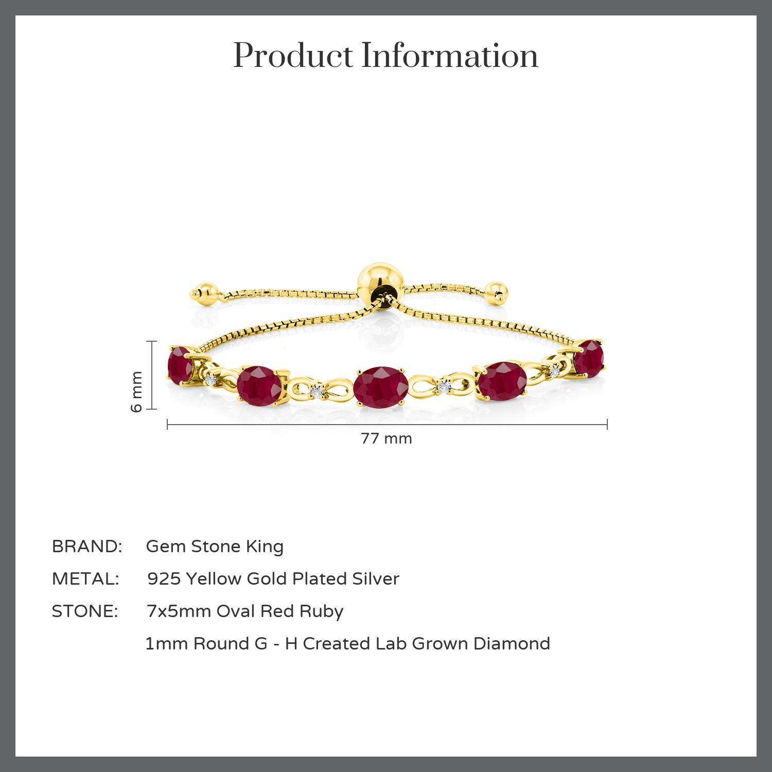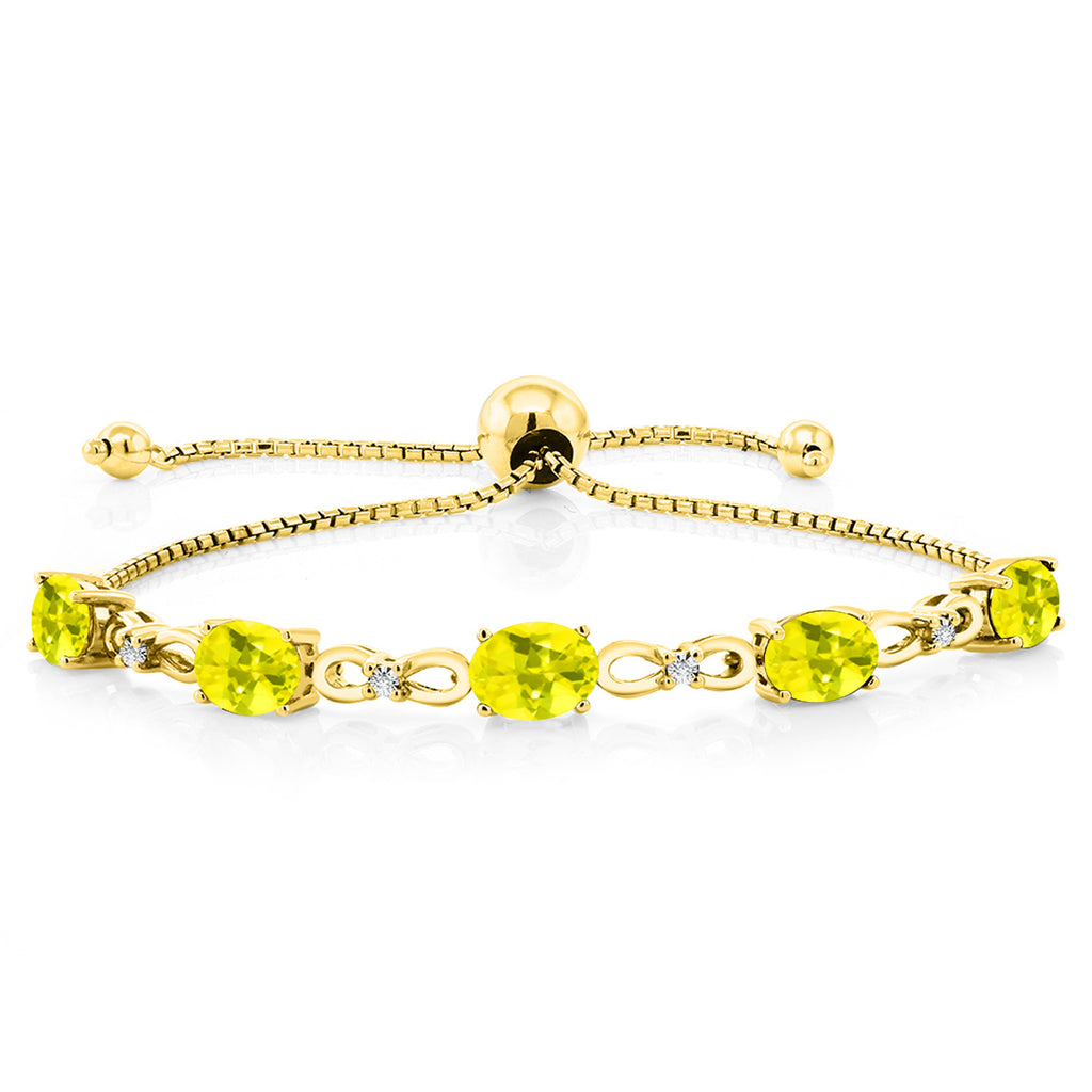 7X5MM Oval Cut Gemstone Birthstone and Accent Lab Grown Diamond Tennis Bracelet For Women In 18K Yellow Gold Plated Silver | Adjustable Bolo Bracelet For Women | Easy-On Easy-Off