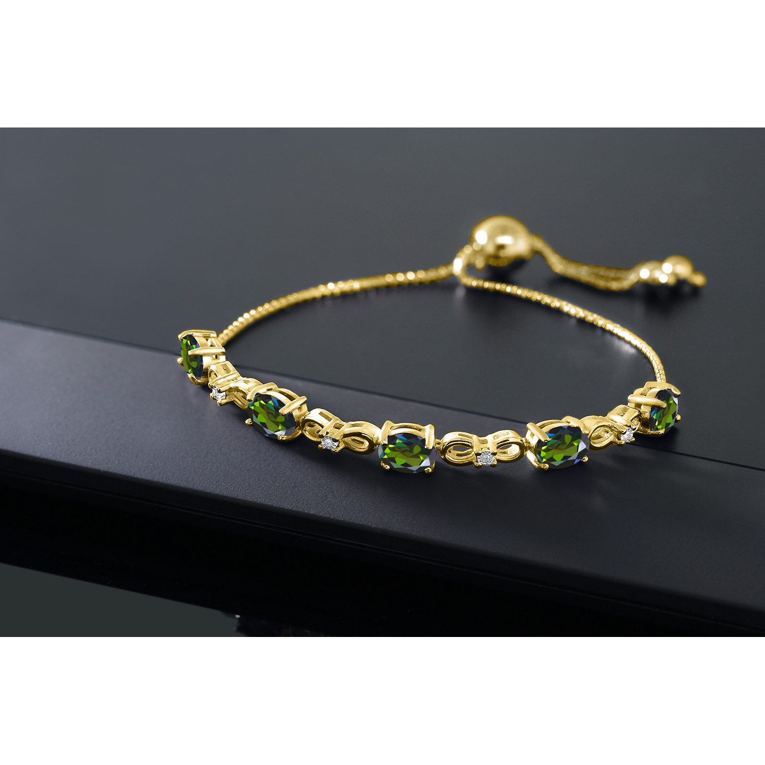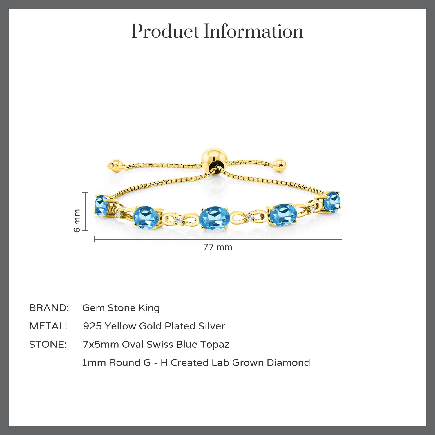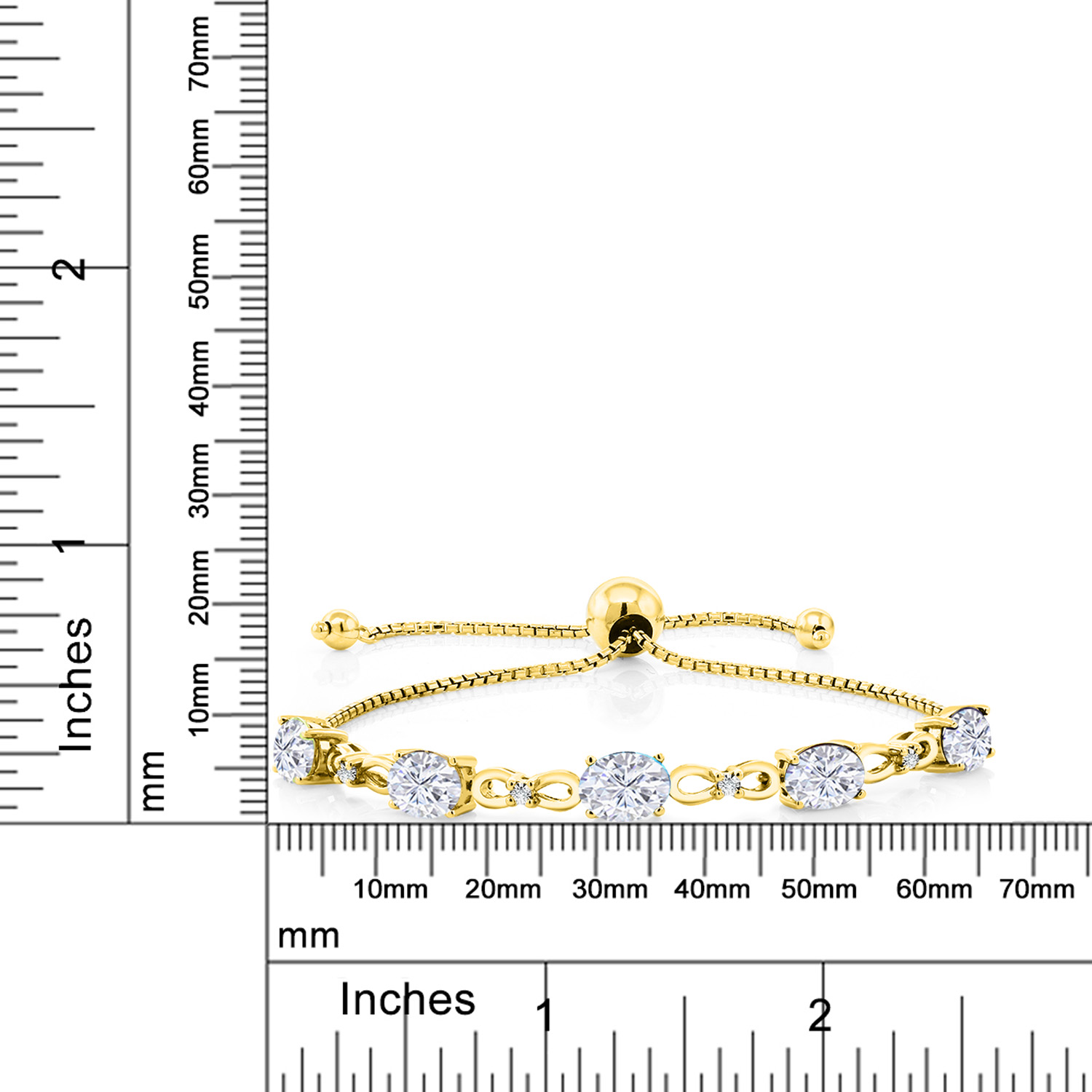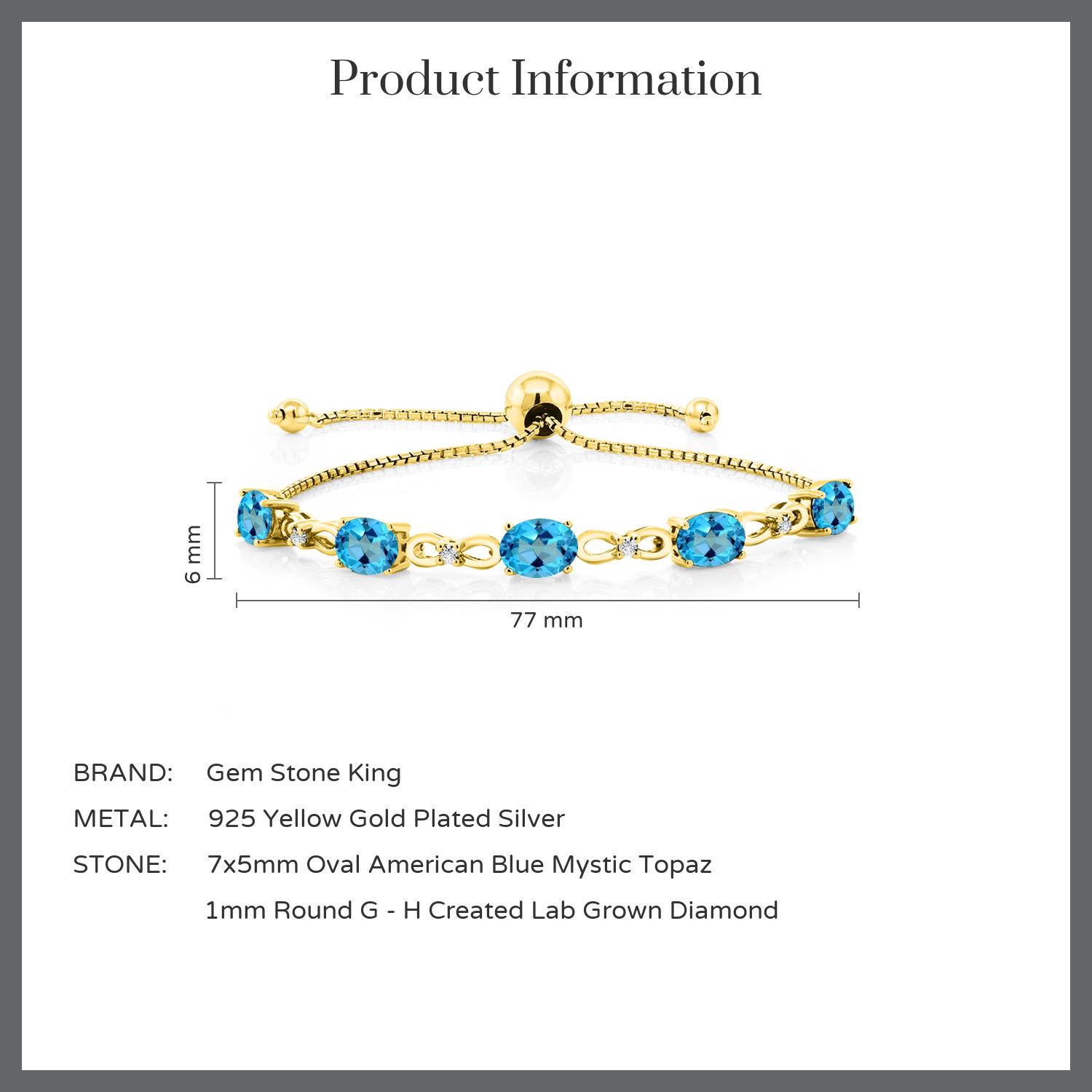 7X5MM Oval Cut Gemstone Birthstone and Accent Lab Grown Diamond Tennis Bracelet For Women In 18K Yellow Gold Plated Silver | Adjustable Bolo Bracelet For Women | Easy-On Easy-Off