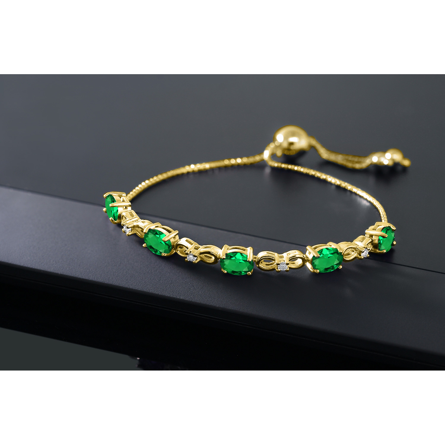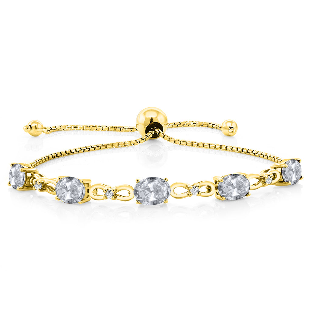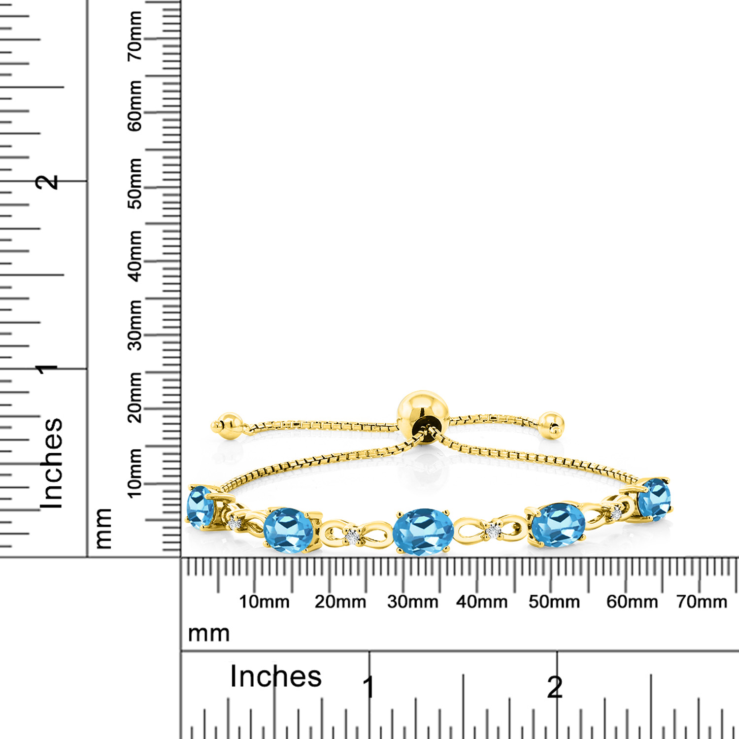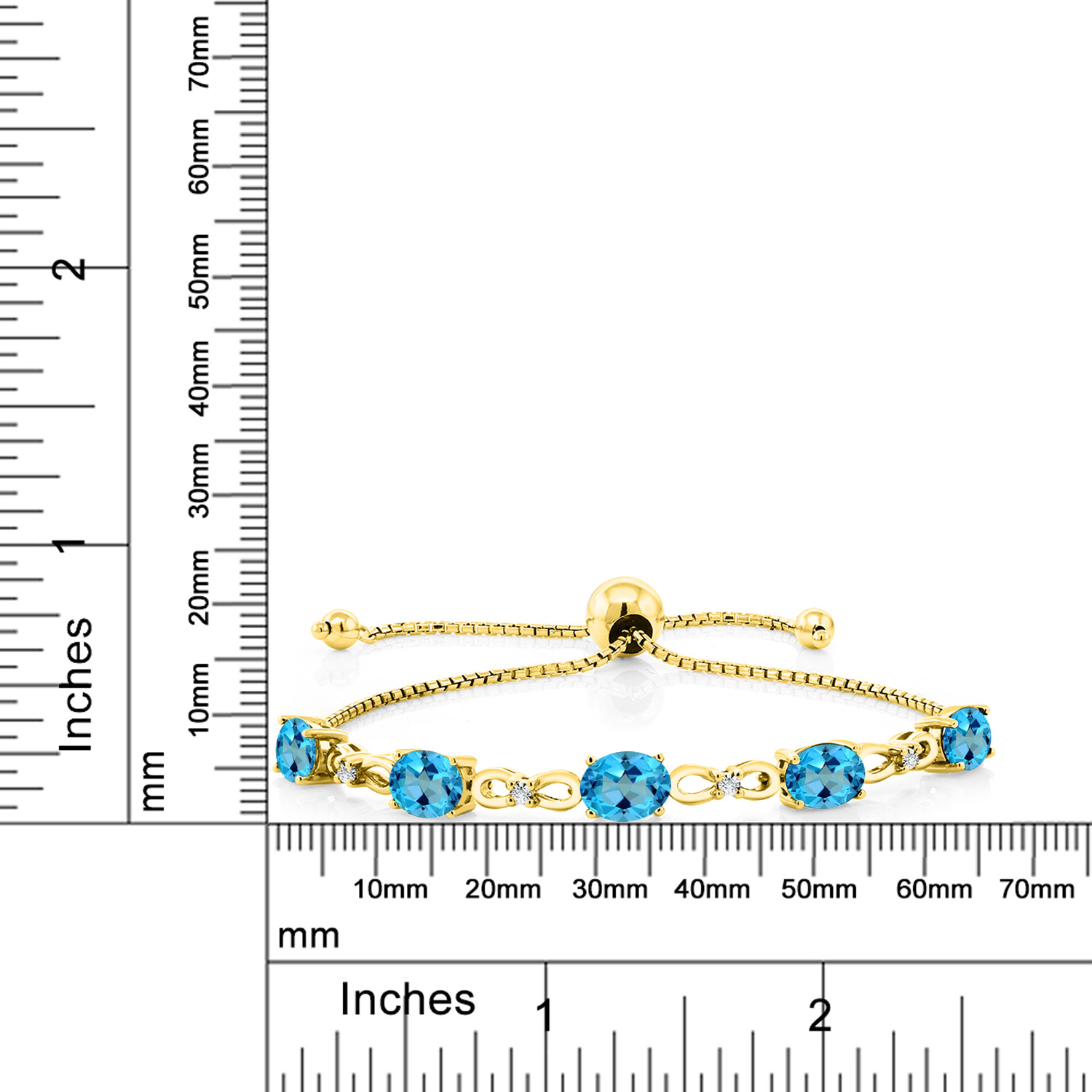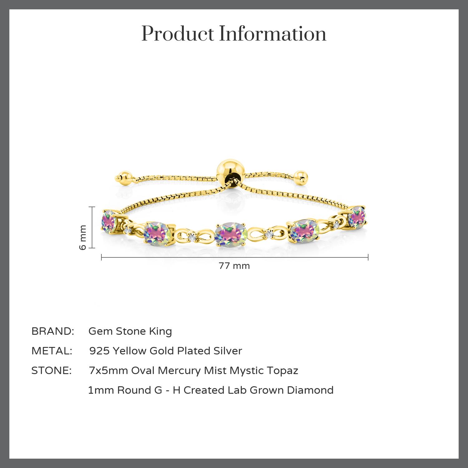 7X5MM Oval Cut Gemstone Birthstone and Accent Lab Grown Diamond Tennis Bracelet For Women In 18K Yellow Gold Plated Silver | Adjustable Bolo Bracelet For Women | Easy-On Easy-Off