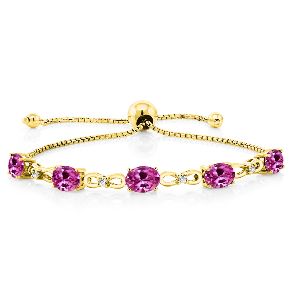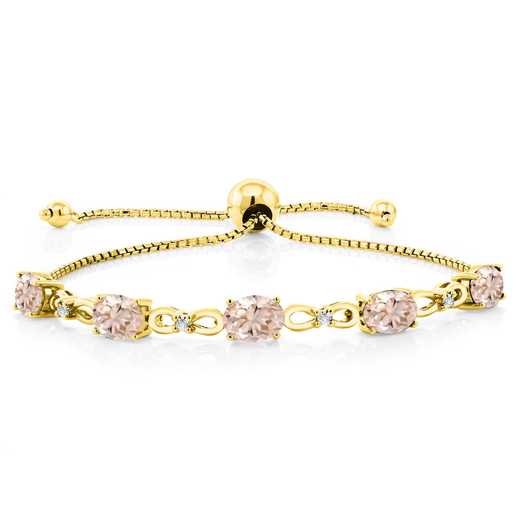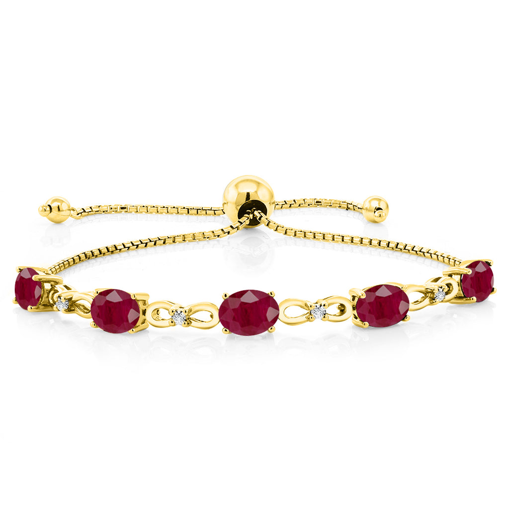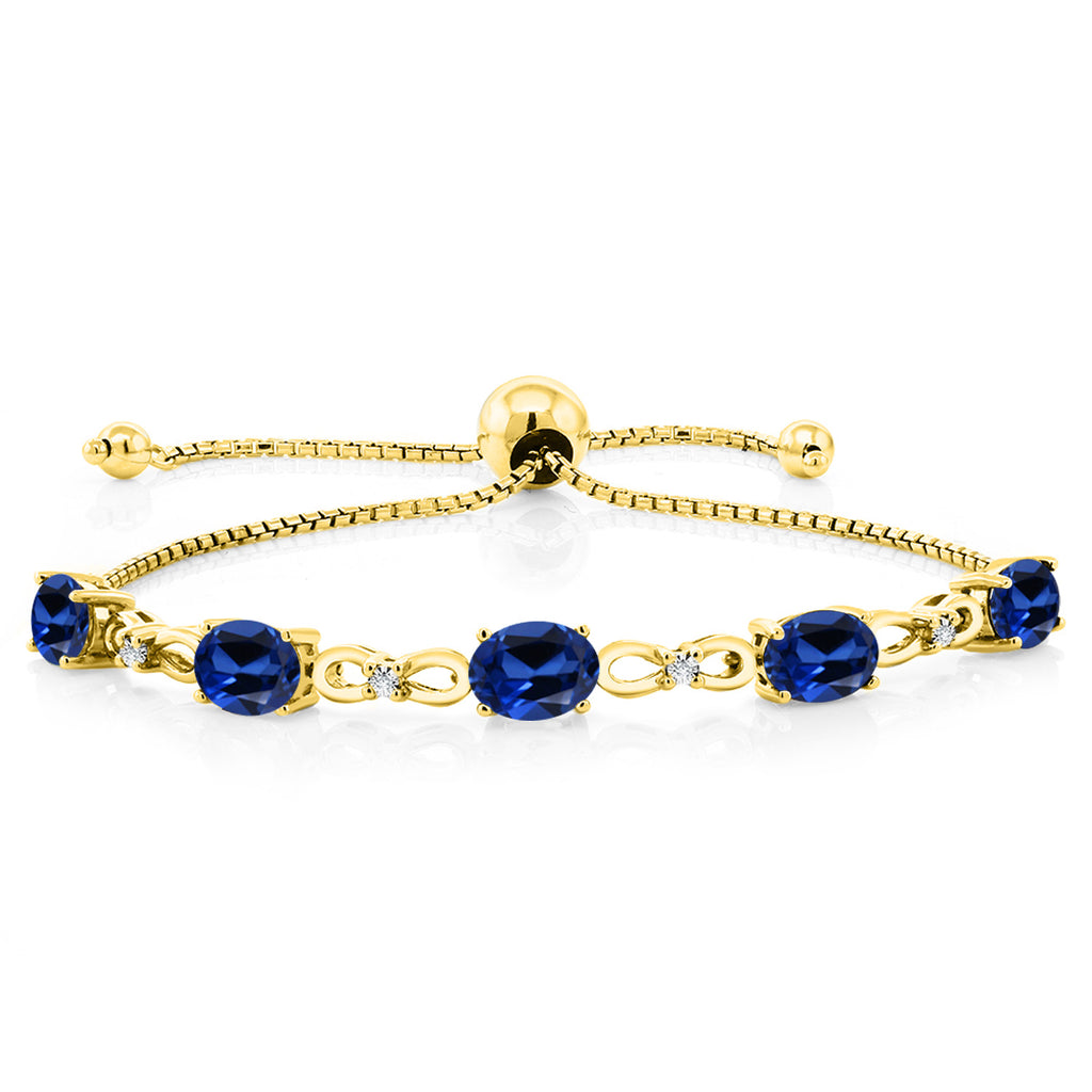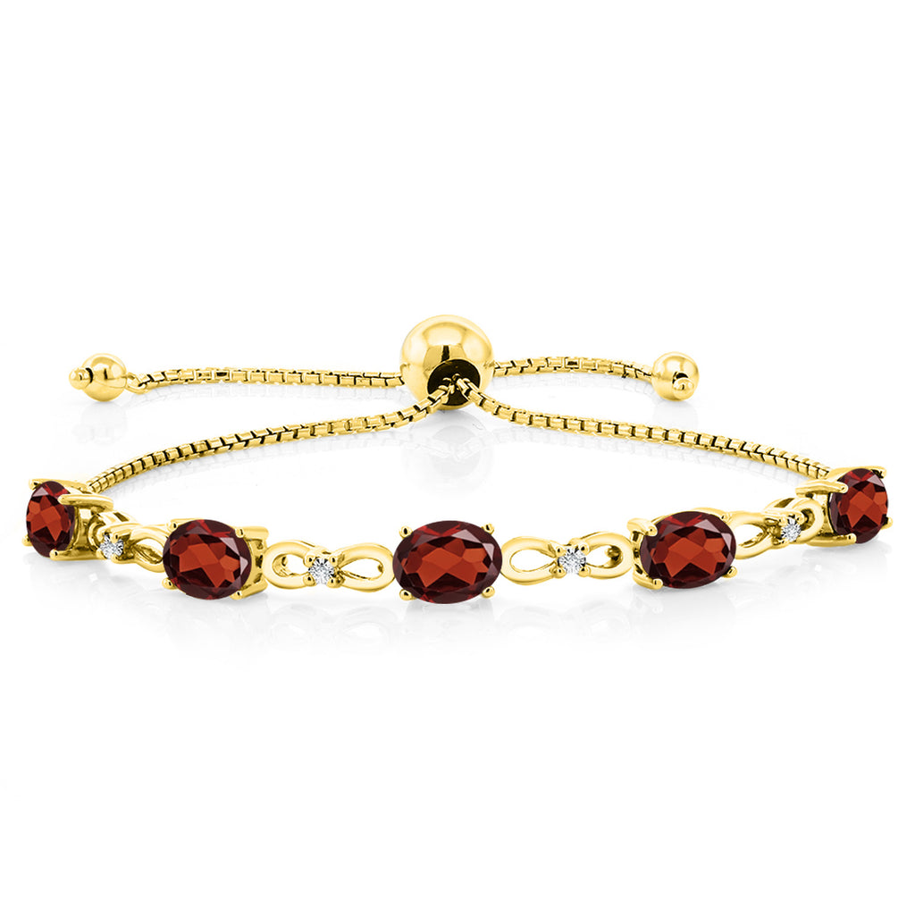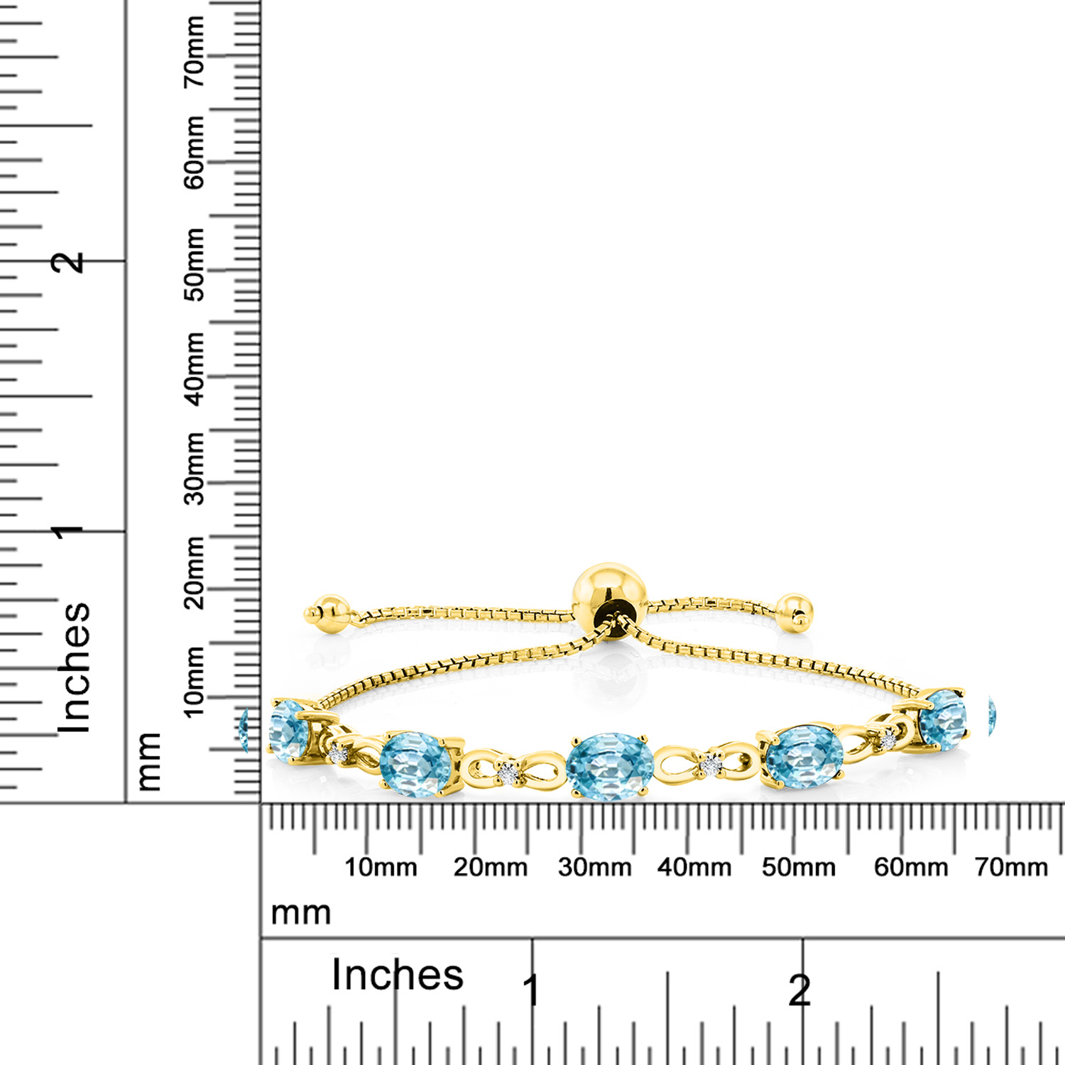 7X5MM Oval Cut Gemstone Birthstone and Accent Lab Grown Diamond Tennis Bracelet For Women In 18K Yellow Gold Plated Silver | Adjustable Bolo Bracelet For Women | Easy-On Easy-Off
