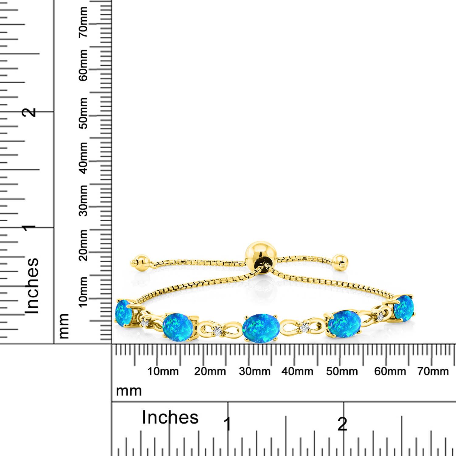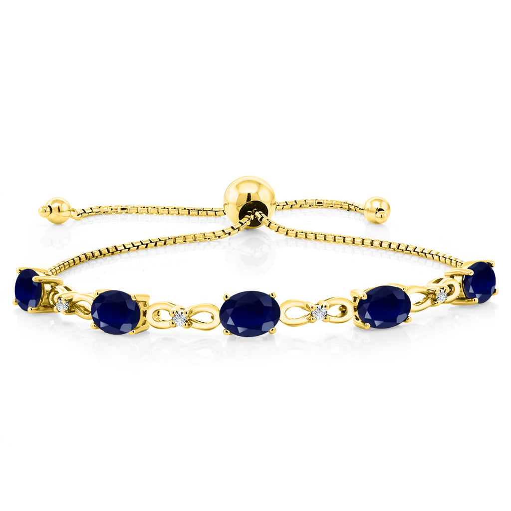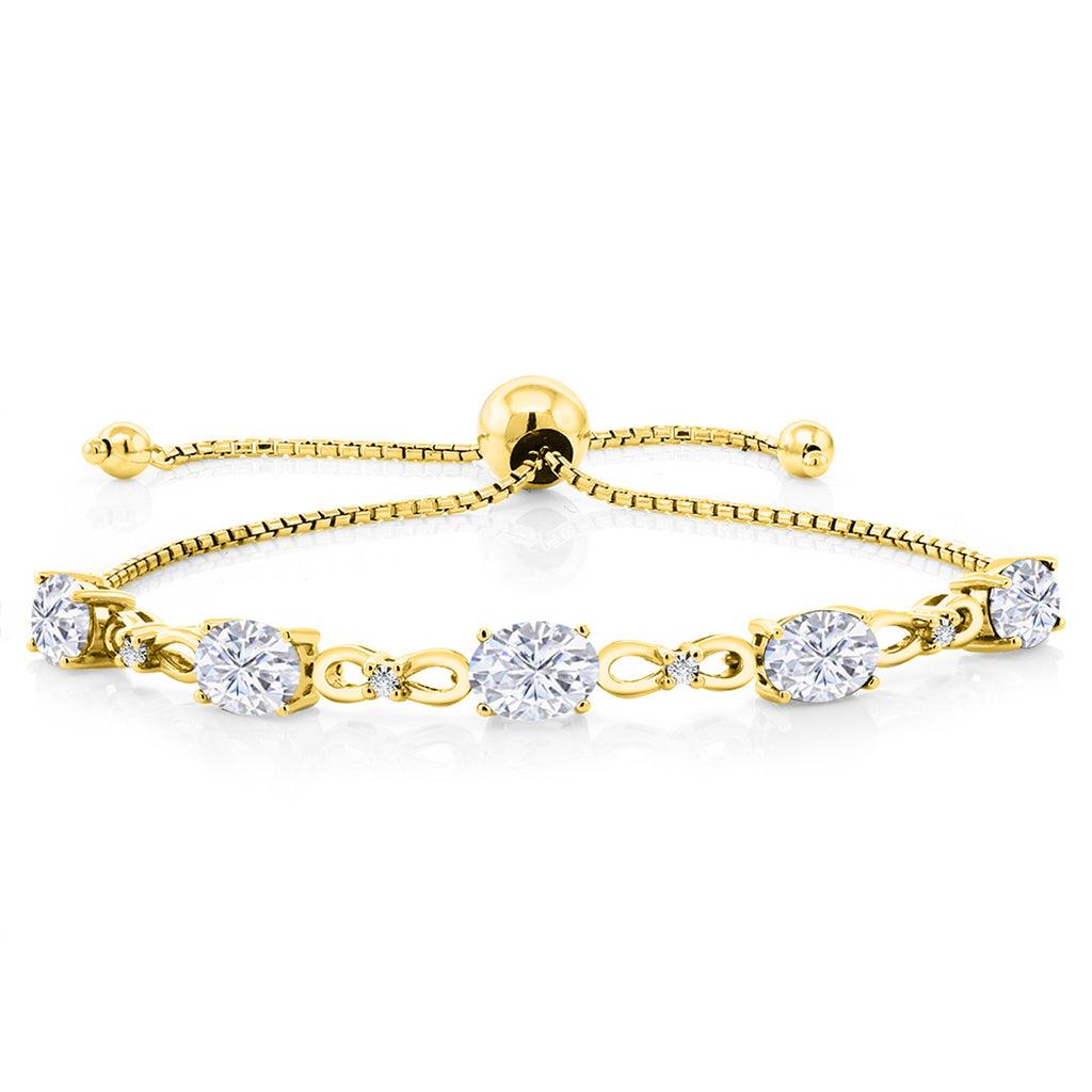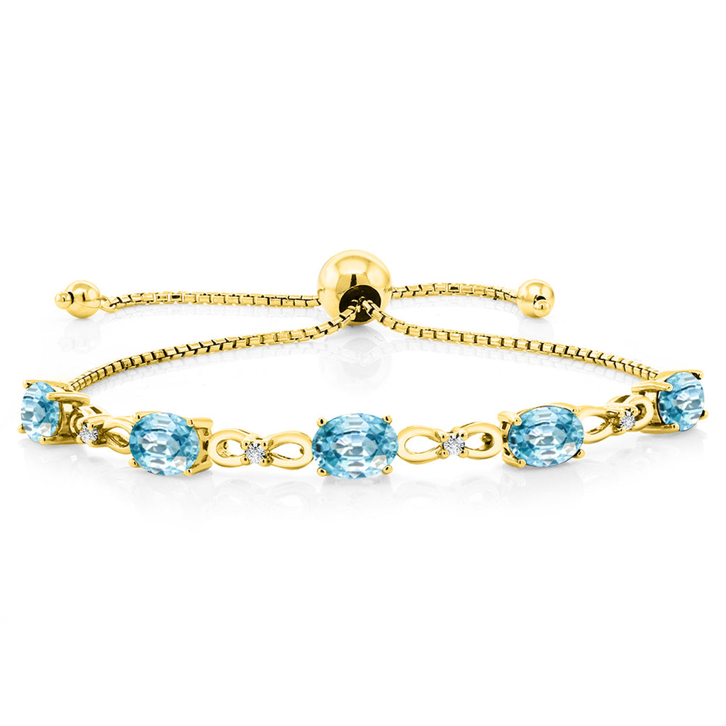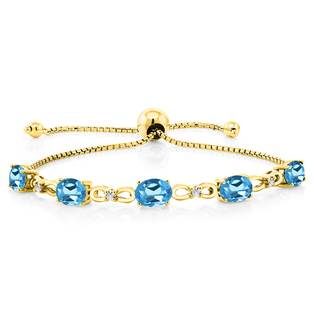 7X5MM Oval Cut Gemstone Birthstone and Accent Lab Grown Diamond Tennis Bracelet For Women In 18K Yellow Gold Plated Silver | Adjustable Bolo Bracelet For Women | Easy-On Easy-Off