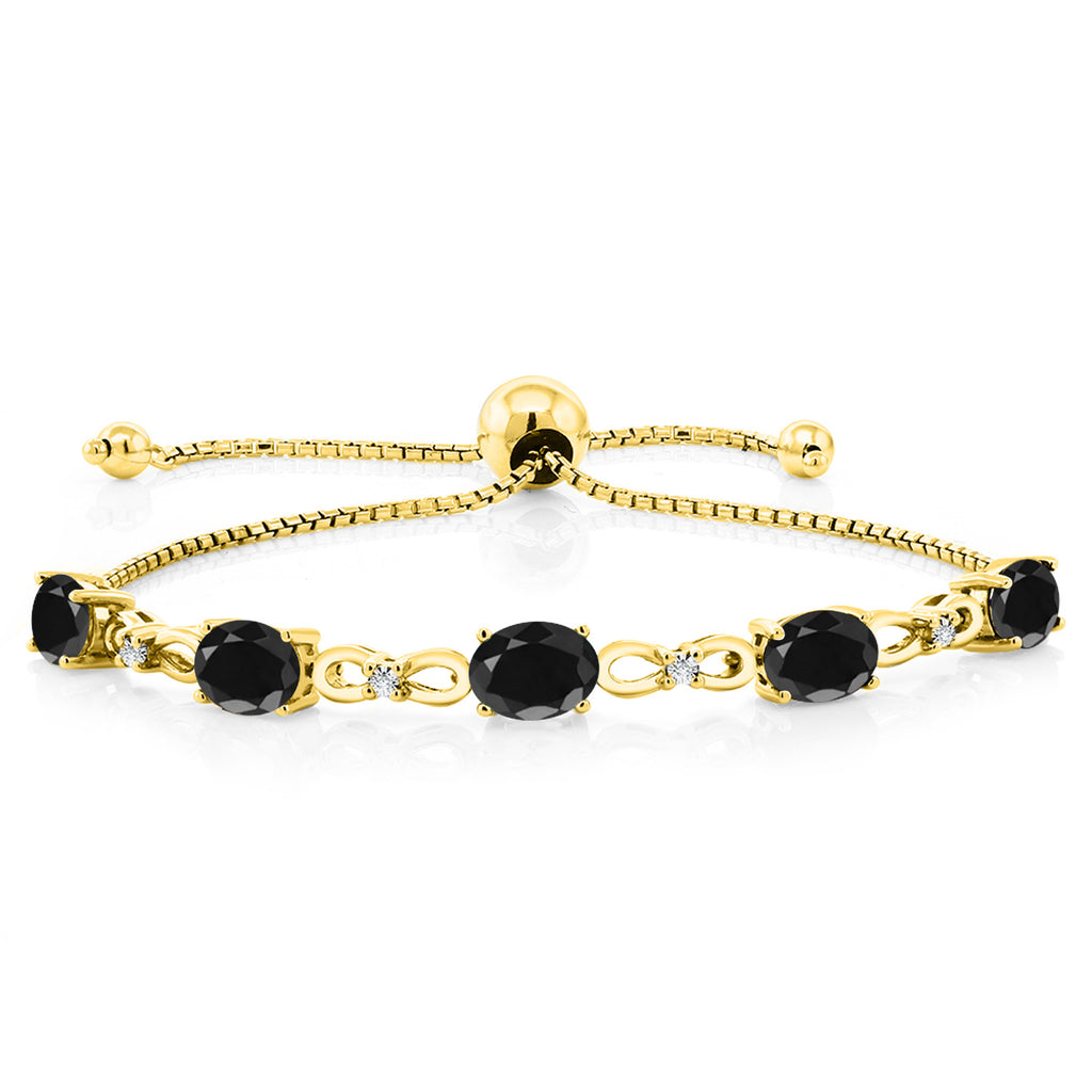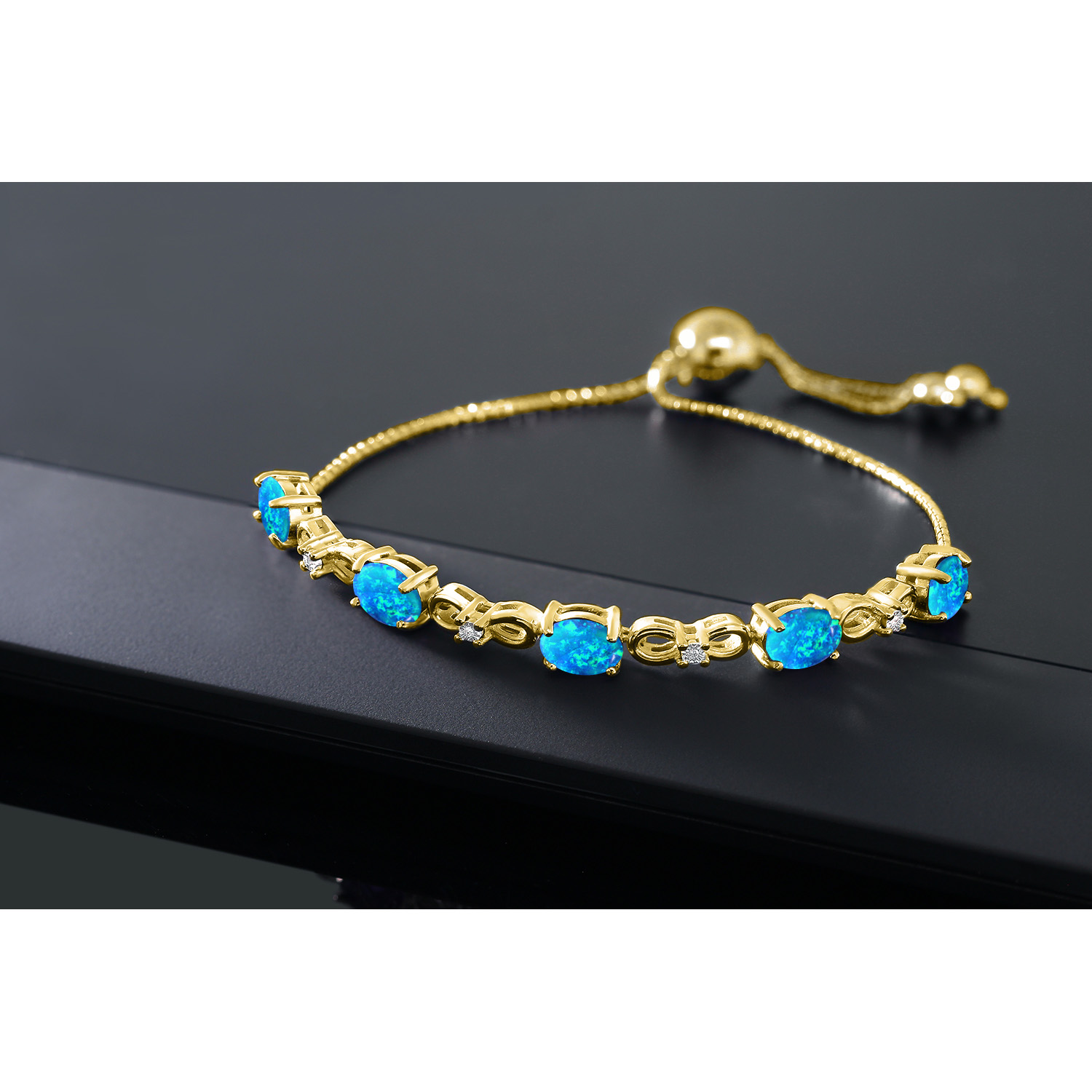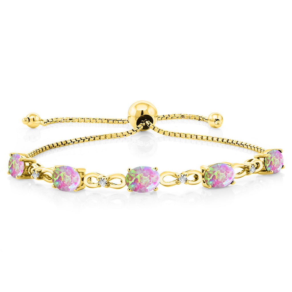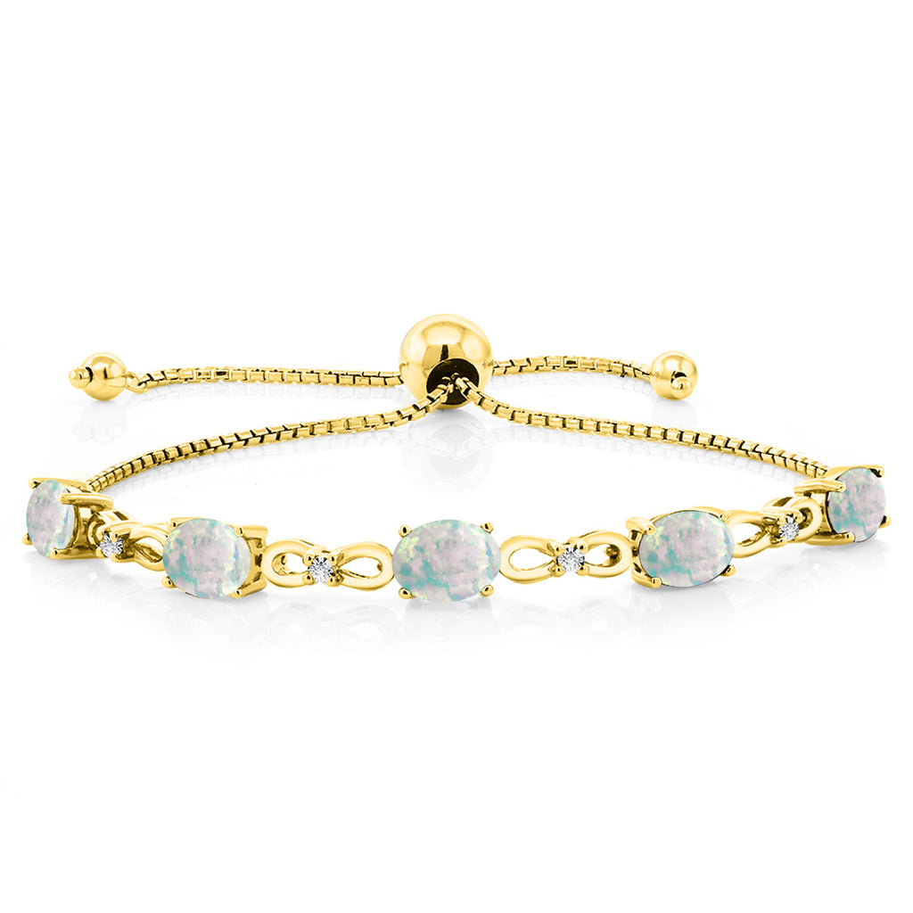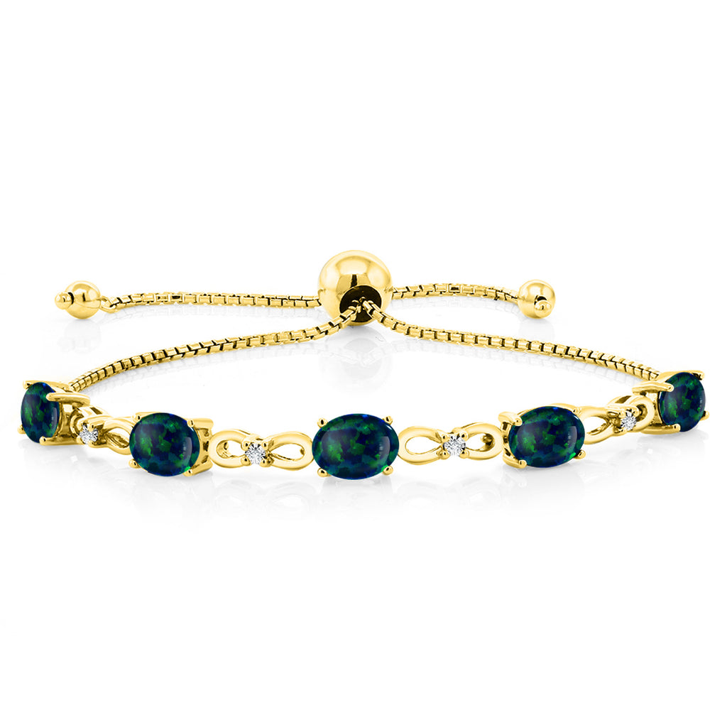 7X5MM Oval Cut Gemstone Birthstone and Accent Lab Grown Diamond Tennis Bracelet For Women In 18K Yellow Gold Plated Silver | Adjustable Bolo Bracelet For Women | Easy-On Easy-Off