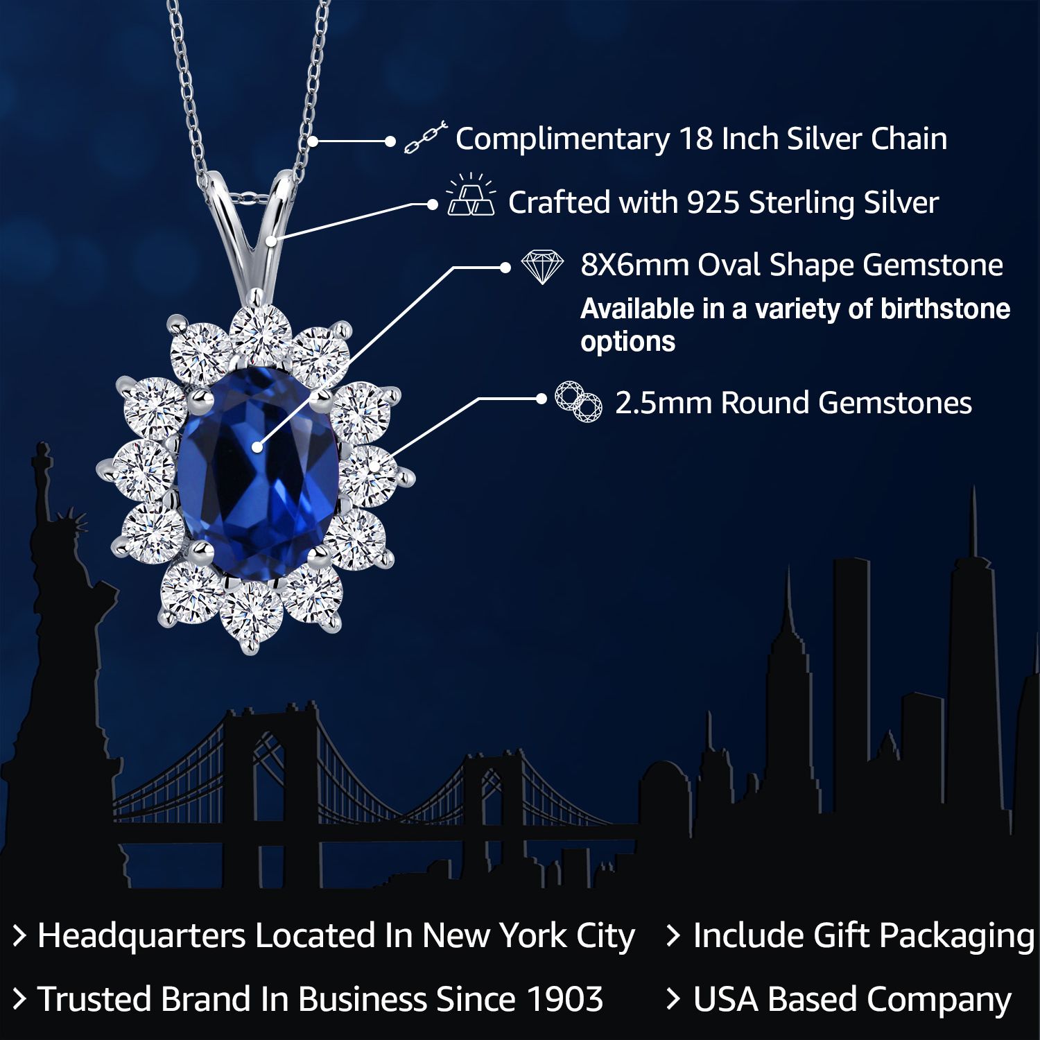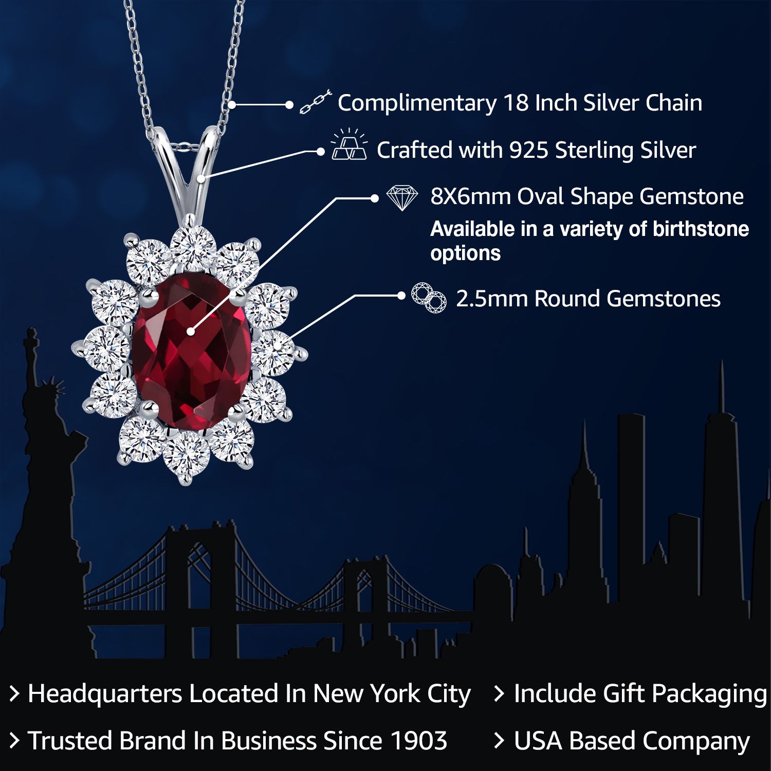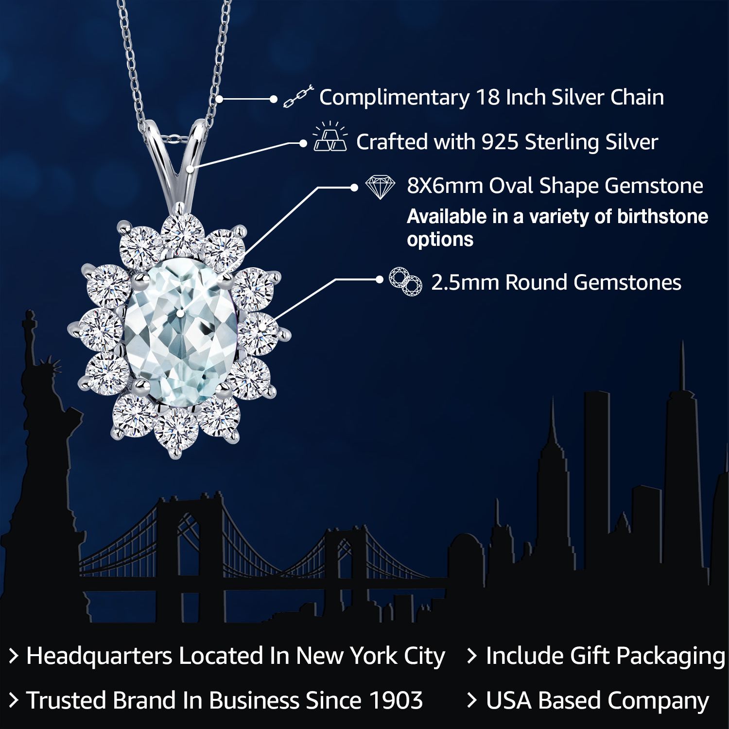 EXQUISITE GEMSTONE PENDANT: This pendant features a captivating oval 8x6mm gemstone birthstone, chosen to symbolize the wearer's birth month or personal preference. The gemstone is securely set within a halo of sterling silver, enhancing its brilliance and creating a stunning focal point.