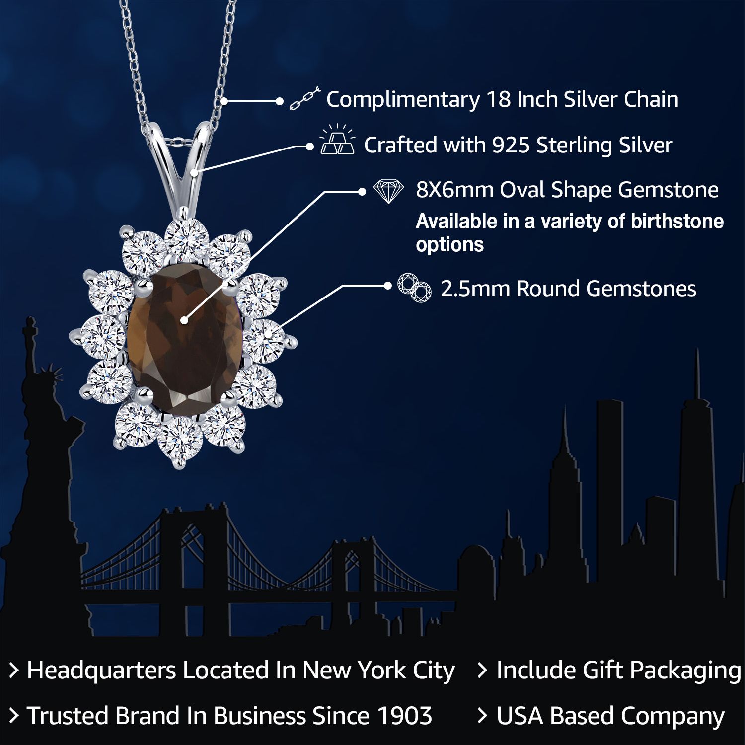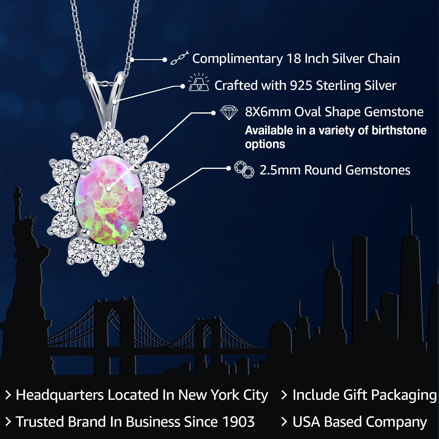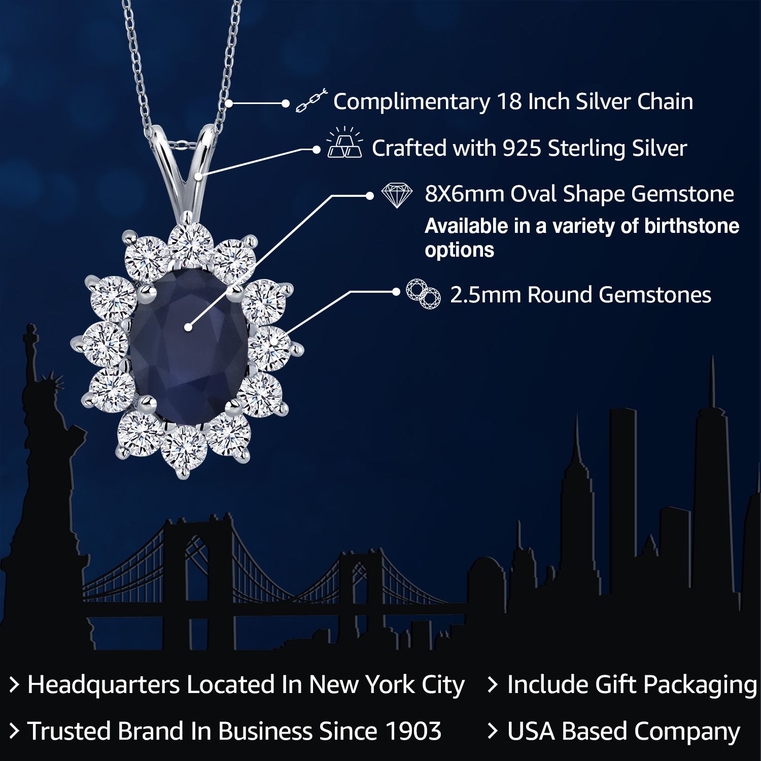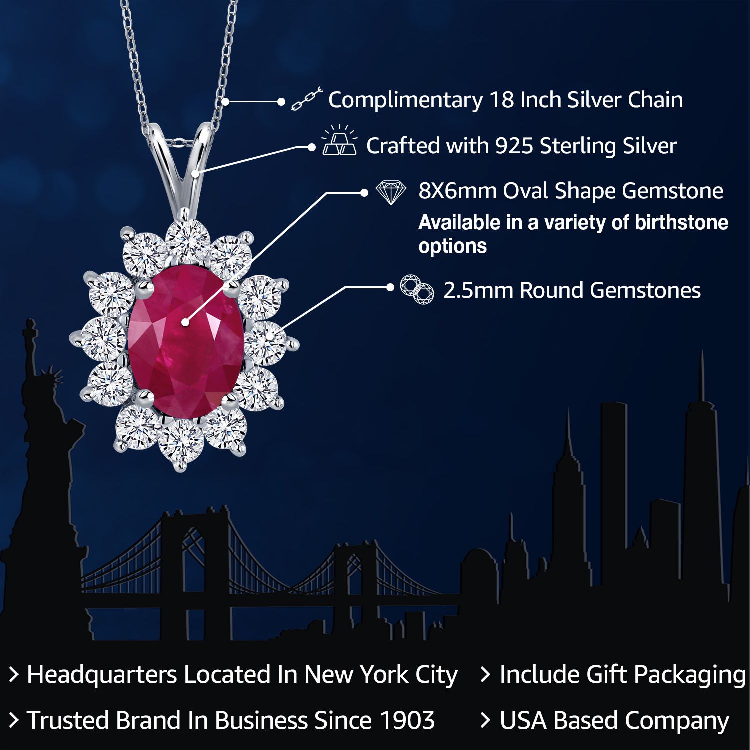 EXQUISITE GEMSTONE PENDANT: This pendant features a captivating oval 8x6mm gemstone birthstone, chosen to symbolize the wearer's birth month or personal preference. The gemstone is securely set within a halo of sterling silver, enhancing its brilliance and creating a stunning focal point.