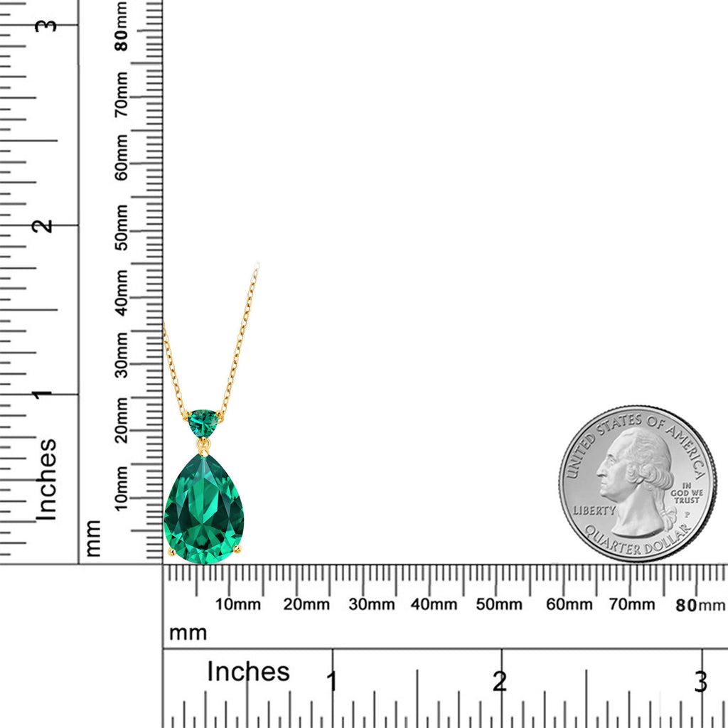 9.72 CTTW OF RADIANT GREEN NANO EMERALD: This showstopping pendant features an 18x13MM pear-shaped green nano emerald accented with a 5MM trillion-cut stone, totaling 9.72 carats. The vivid, deep green hue evokes luxury, vitality, and timeless grace—making it a bold yet elegant tribute to May’s birthstone and a striking centerpiece for any look.