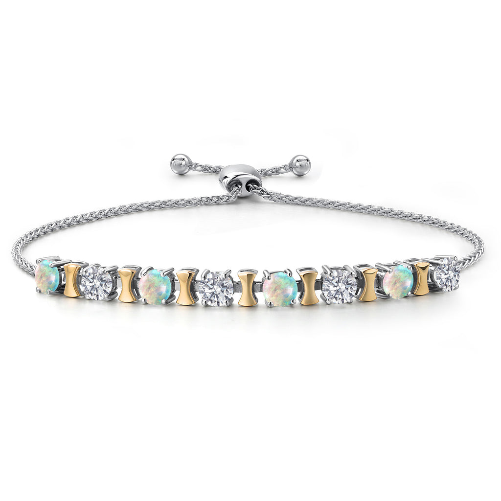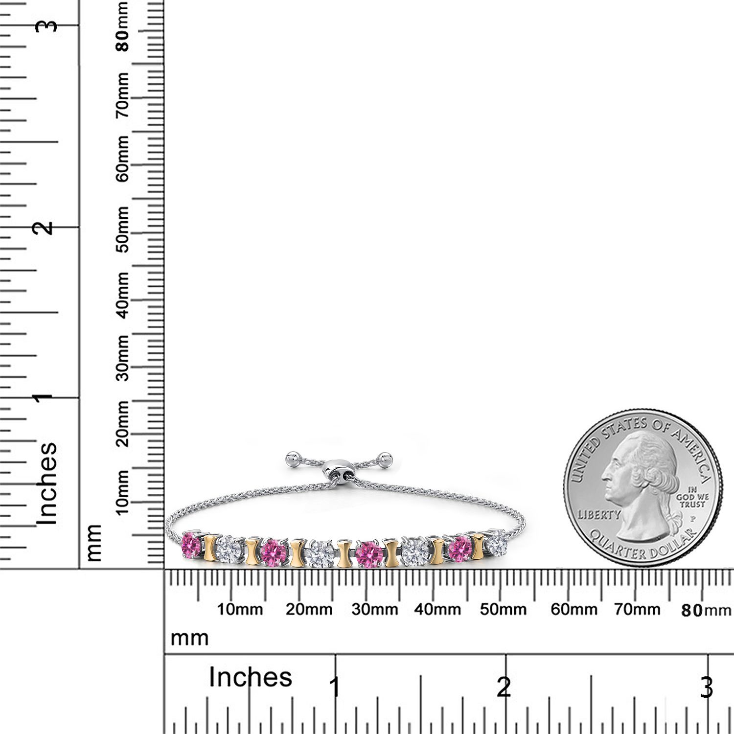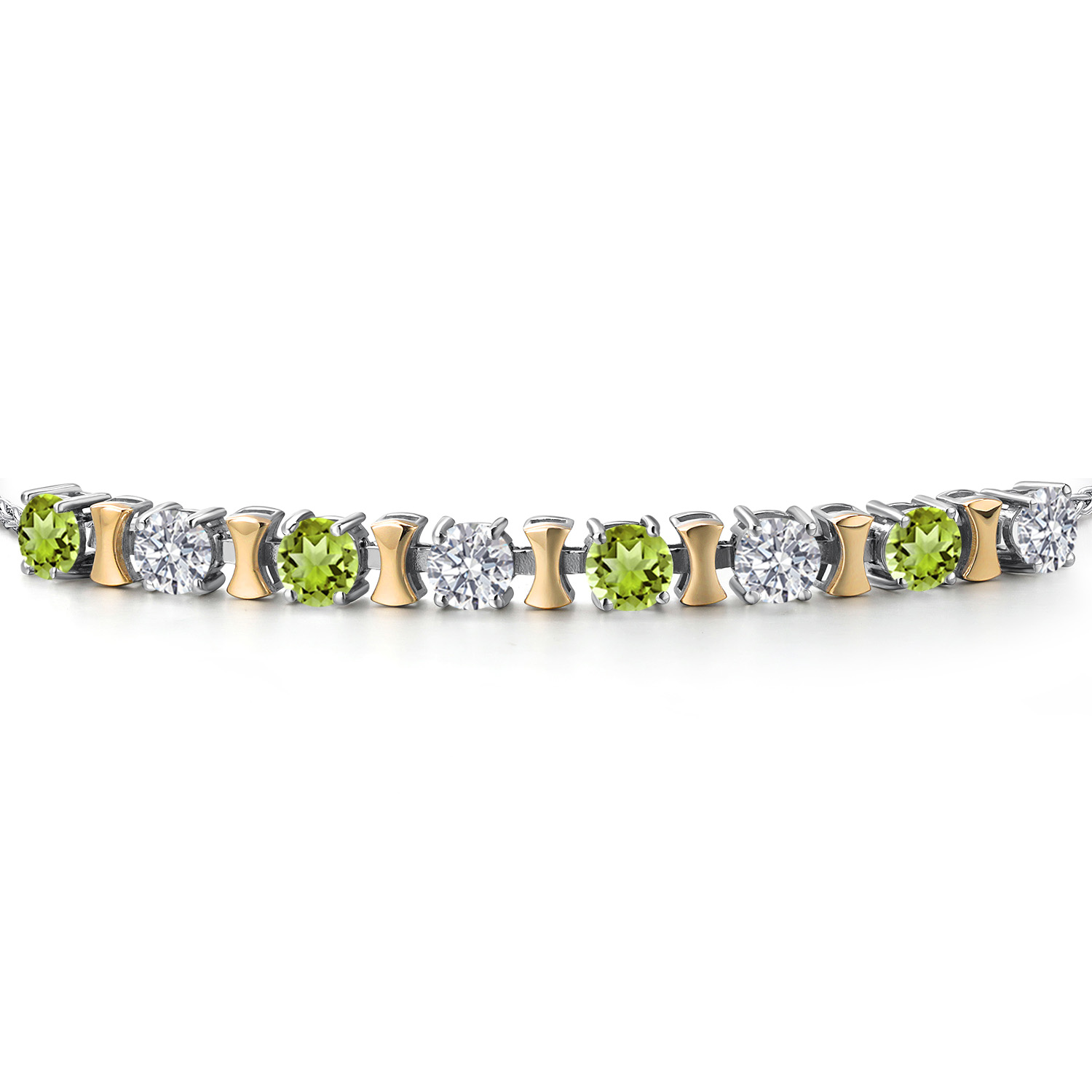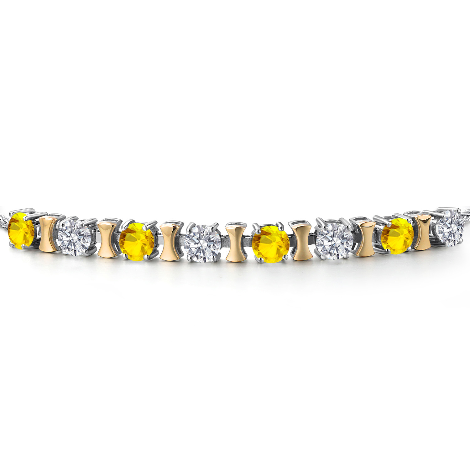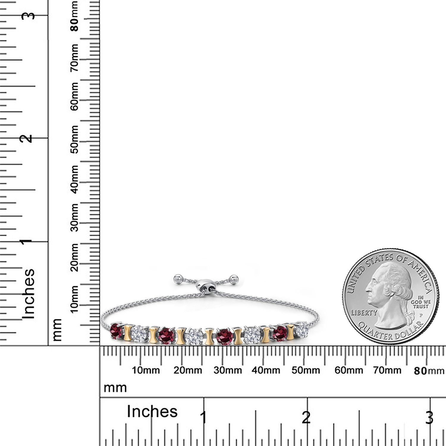 925 Silver 10K Yellow Gold Birthstone Bracelet for Women | 4MM Round Gemstones & Lab Grown Diamond | Adjustable Bolo 9 Inch | Jewelry Gift for Mom Wife