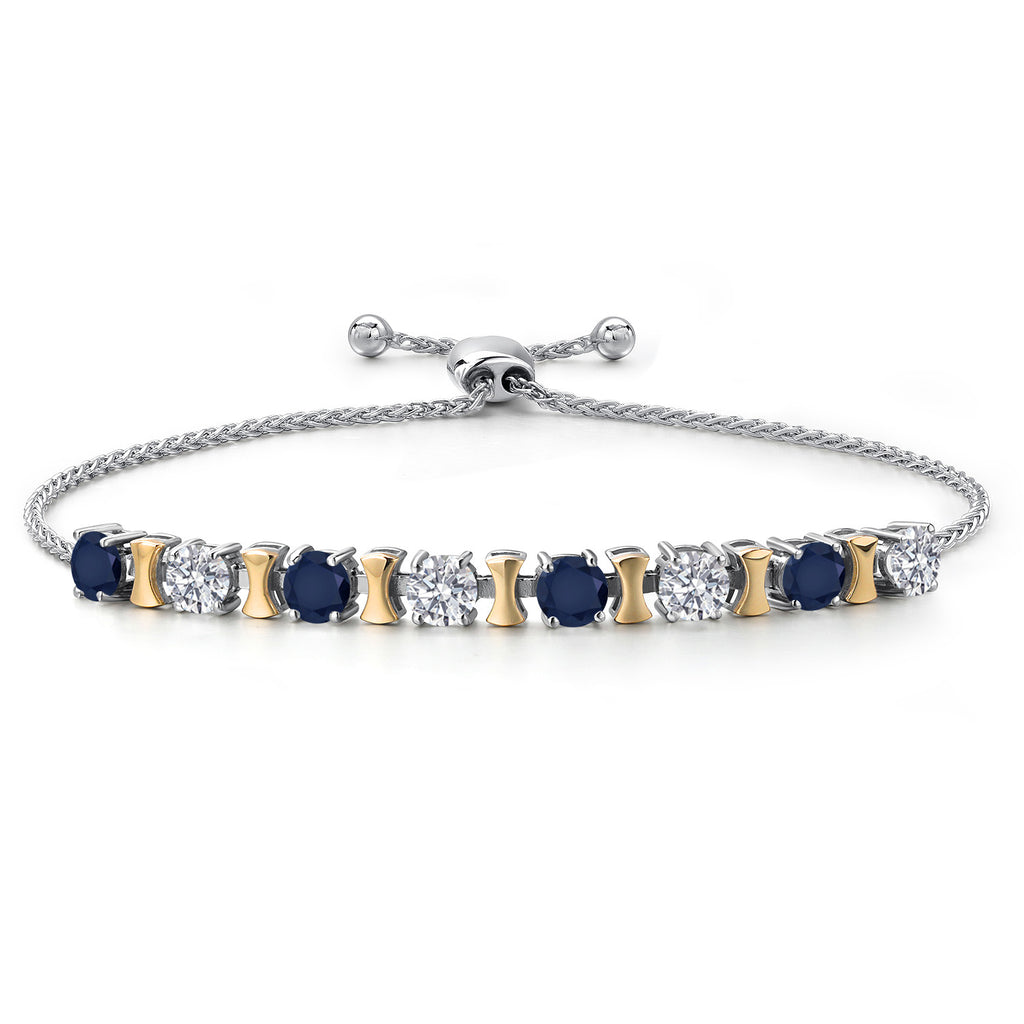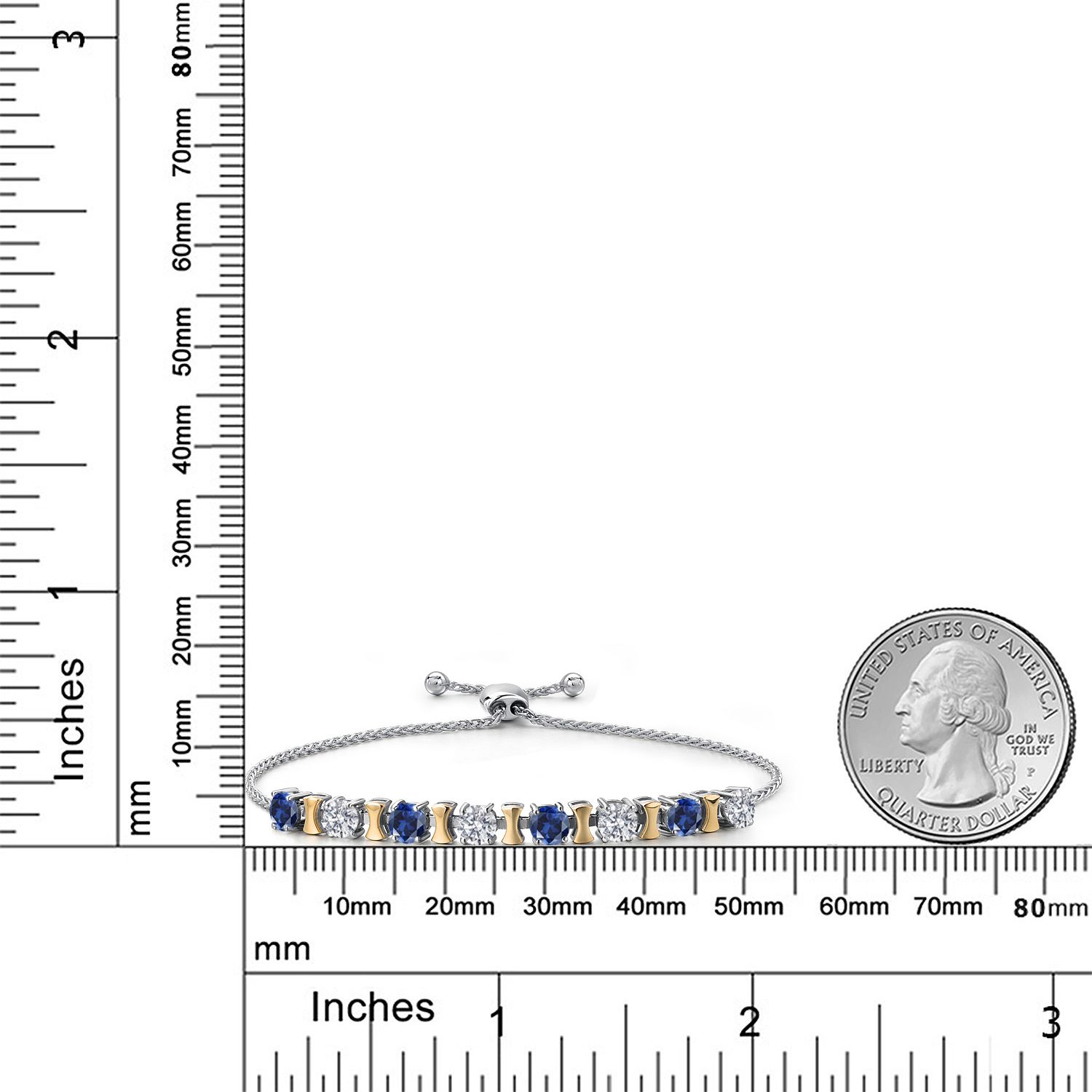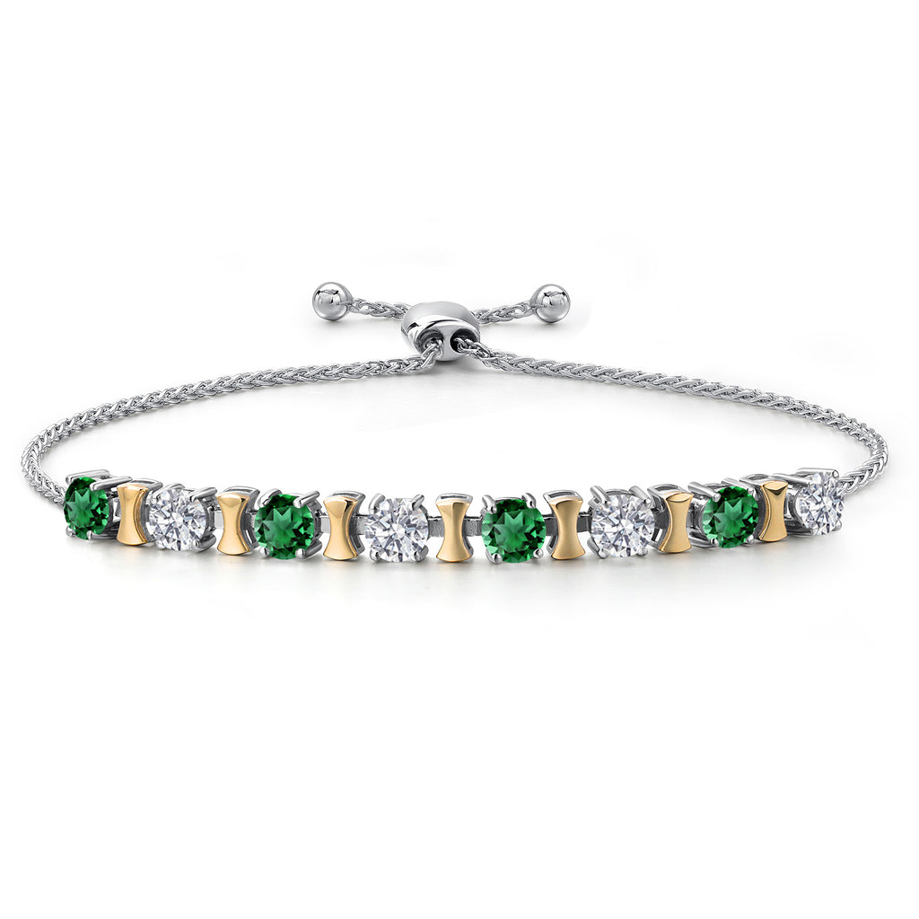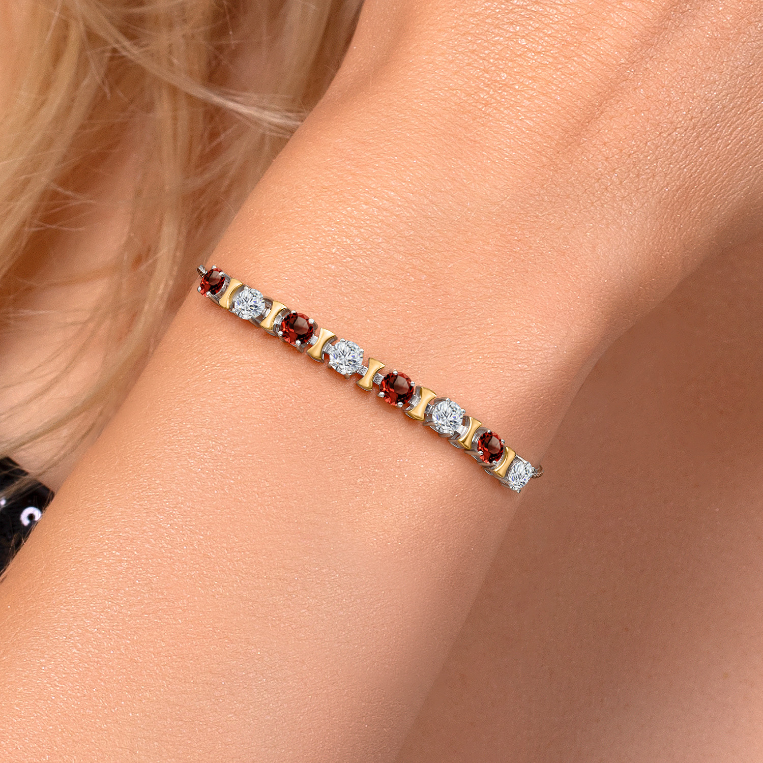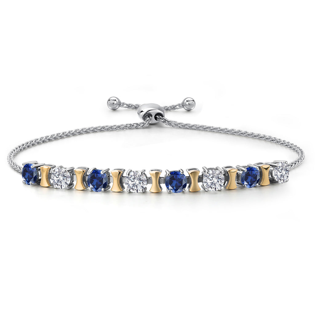 ELEGANT DESIGN AND SPARKLING ACCENTS: the elegant two-tone style showcases alternating round gemstones with radiant lab-grown diamonds, achieving visual harmony. 10k gold accents beautifully contrast with silver, enhancing the bracelet’s allure for a timeless look.
