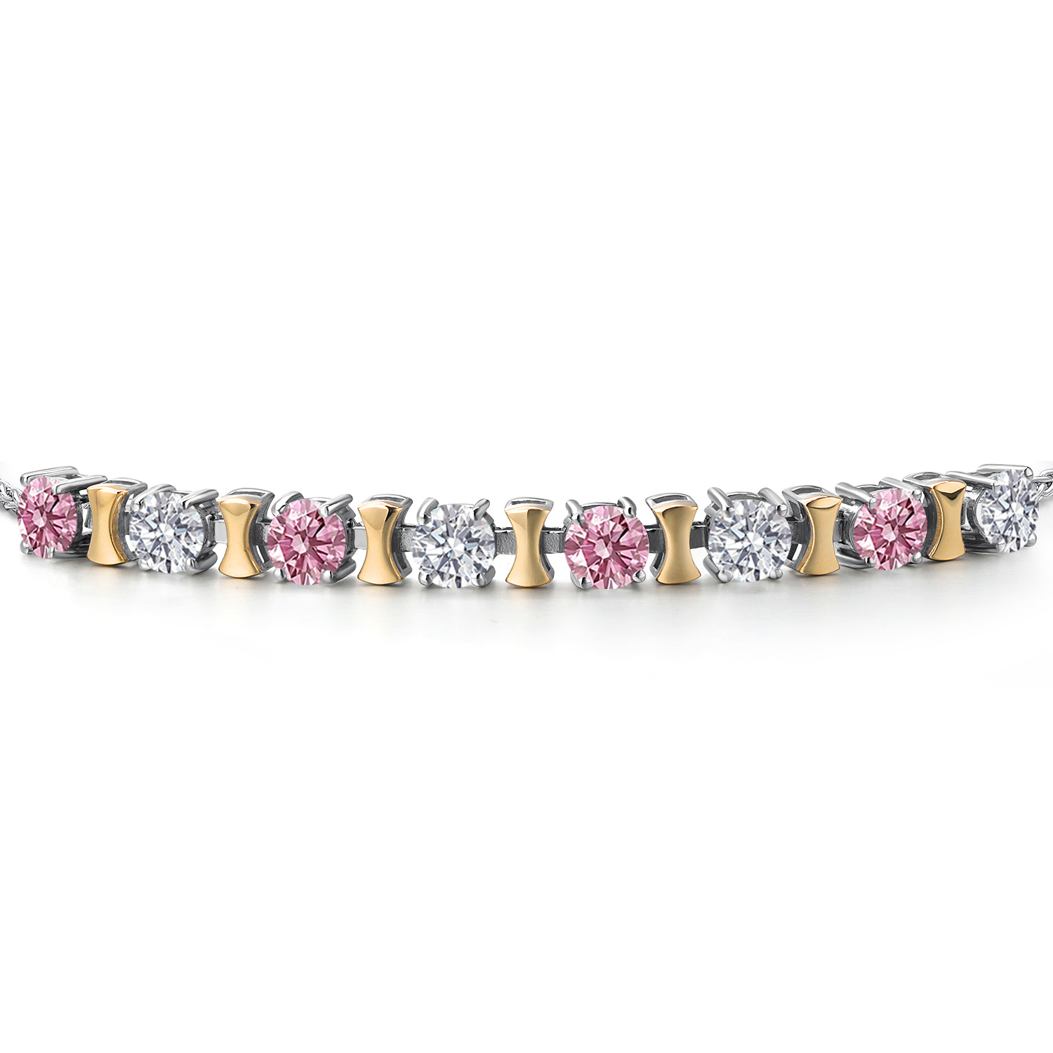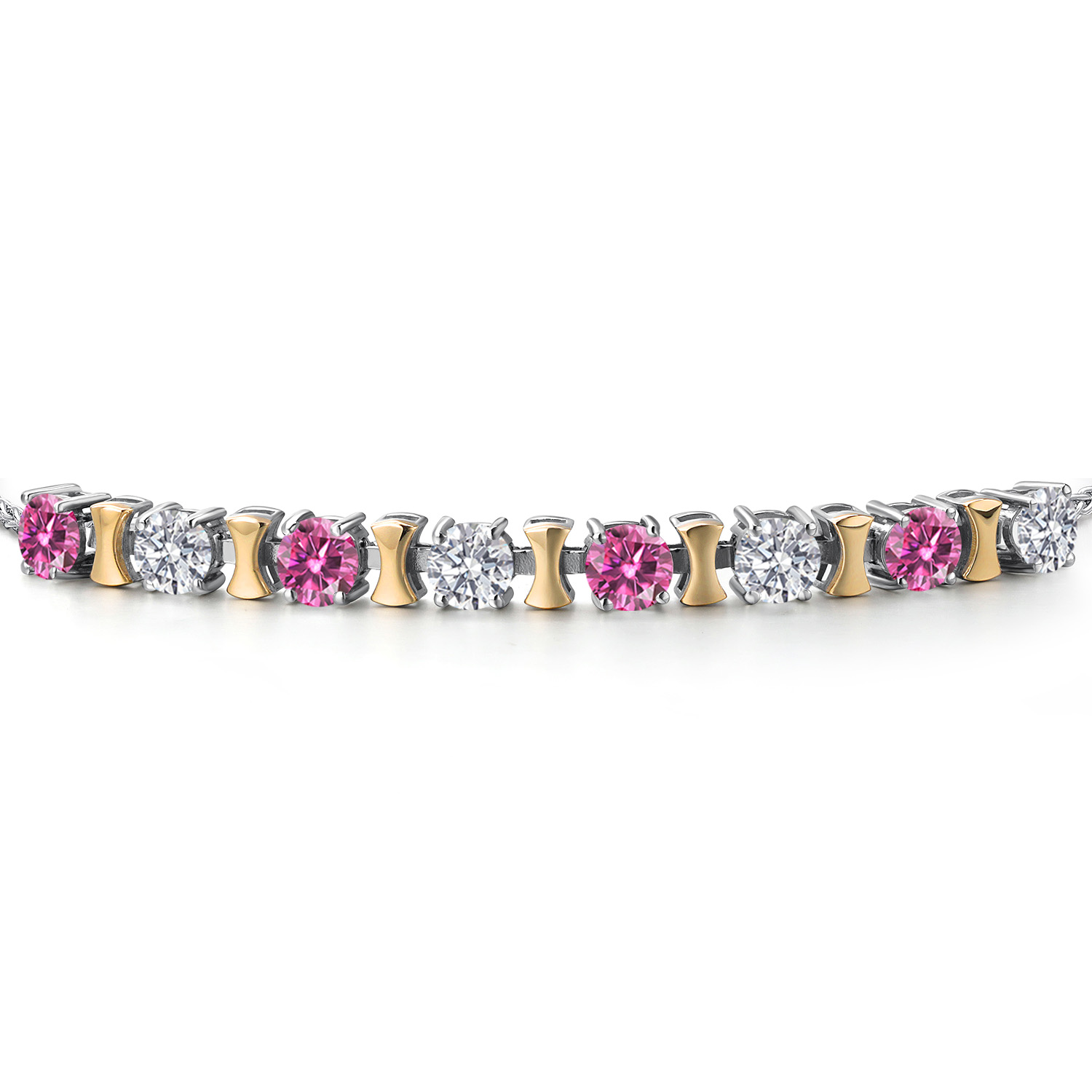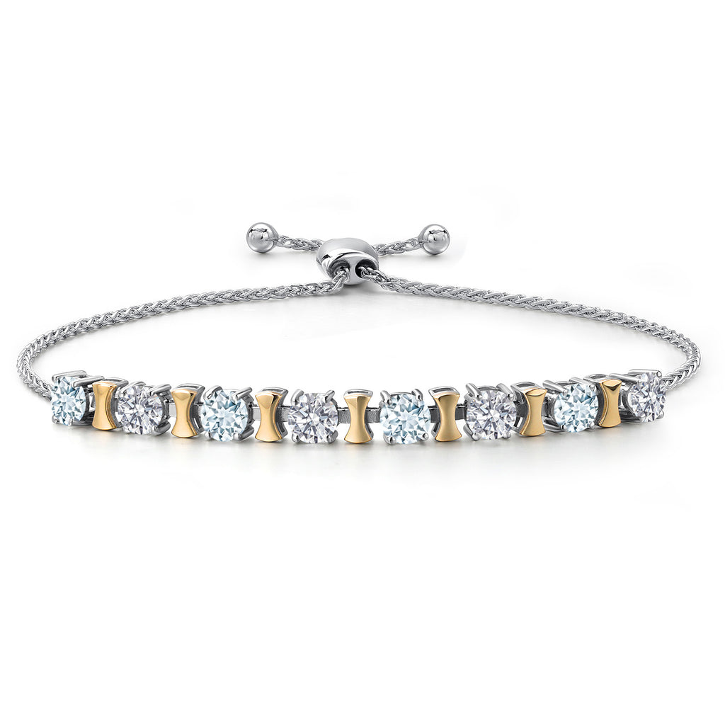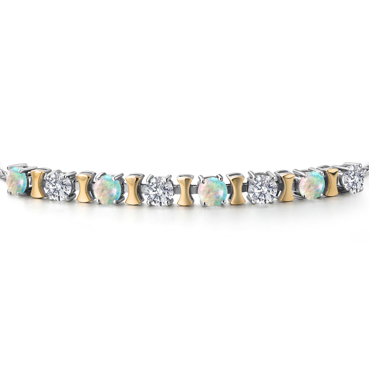 ELEGANT DESIGN AND SPARKLING ACCENTS: the elegant two-tone style showcases alternating round gemstones with radiant lab-grown diamonds, achieving visual harmony. 10k gold accents beautifully contrast with silver, enhancing the bracelet’s allure for a timeless look.