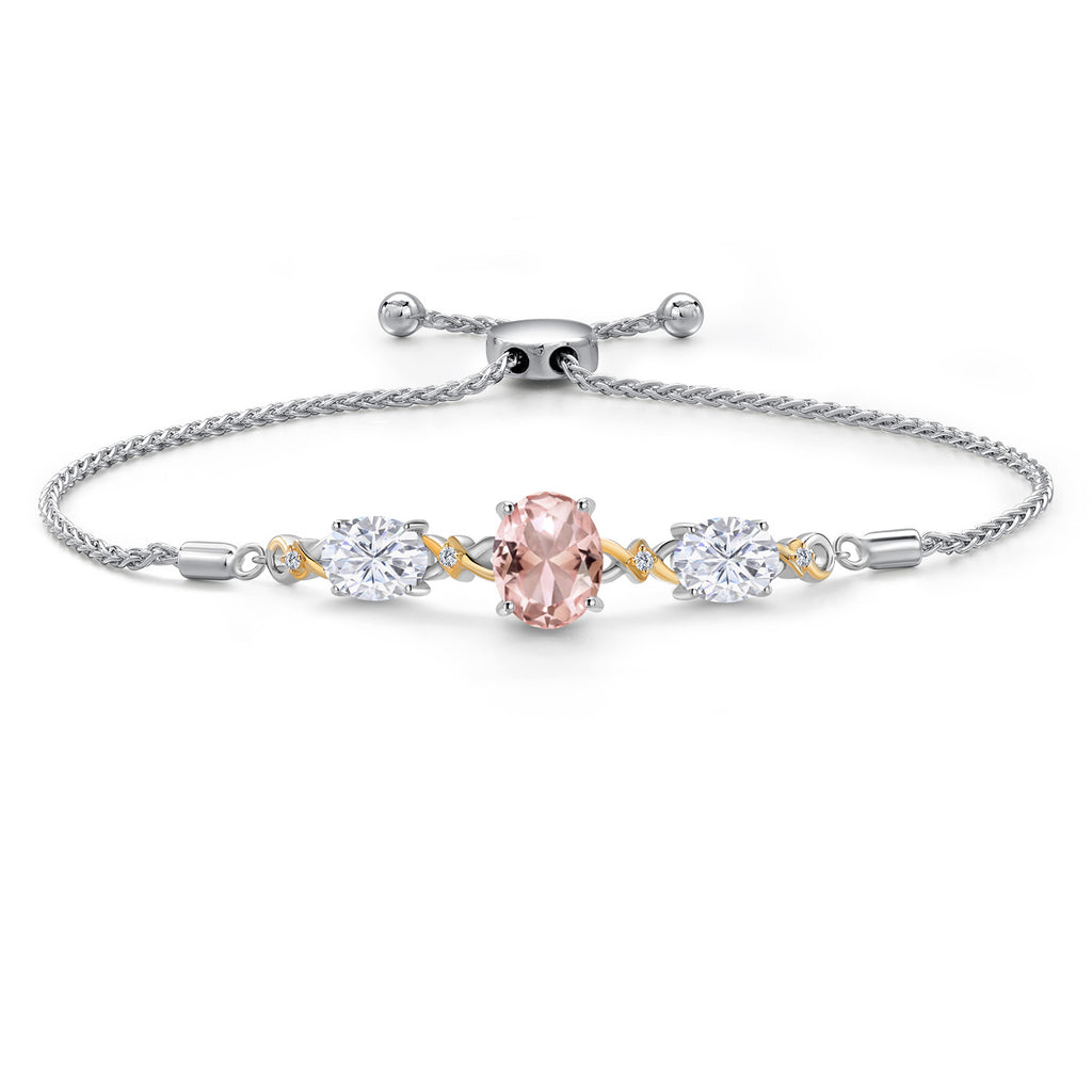 ELEGANT PEACH MORGANITE, MOISSANITE, AND DIAMOND DESIGN: This exquisite bracelet features oval-cut Peach Nano Morganite stones paired with brilliant White Moissanite and Lab Grown Diamonds, totaling 5.38 carats. The October birthstone symbolizes love, harmony, and emotional balance.