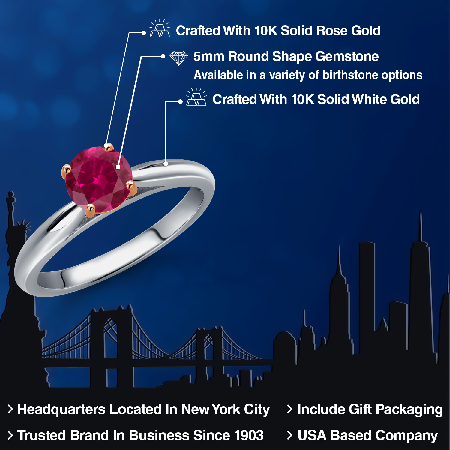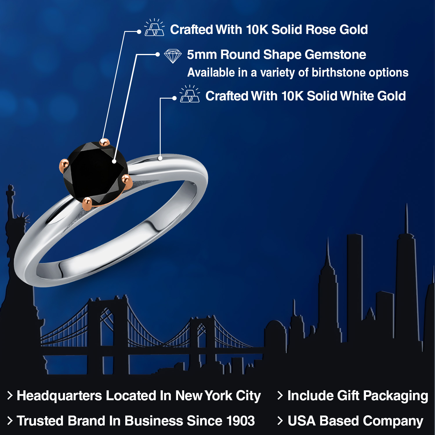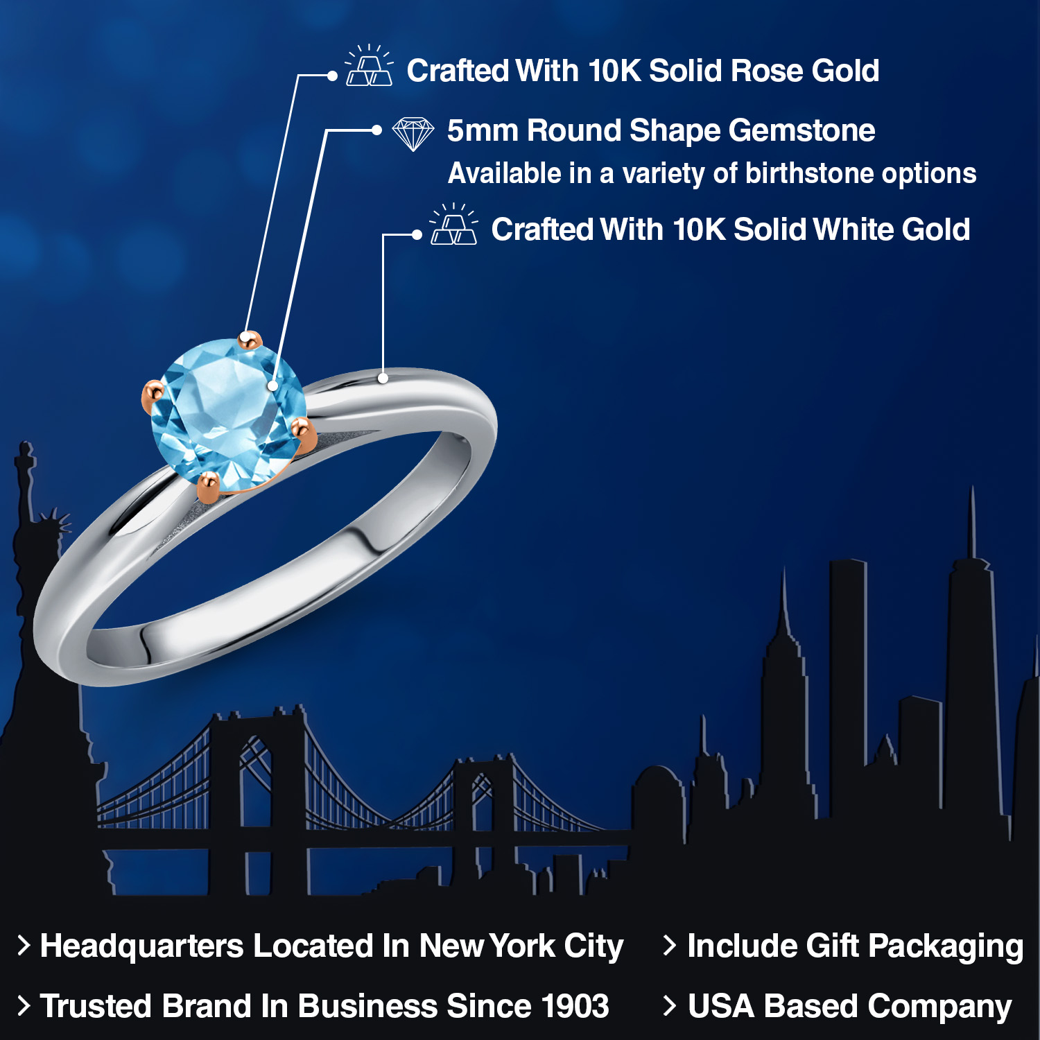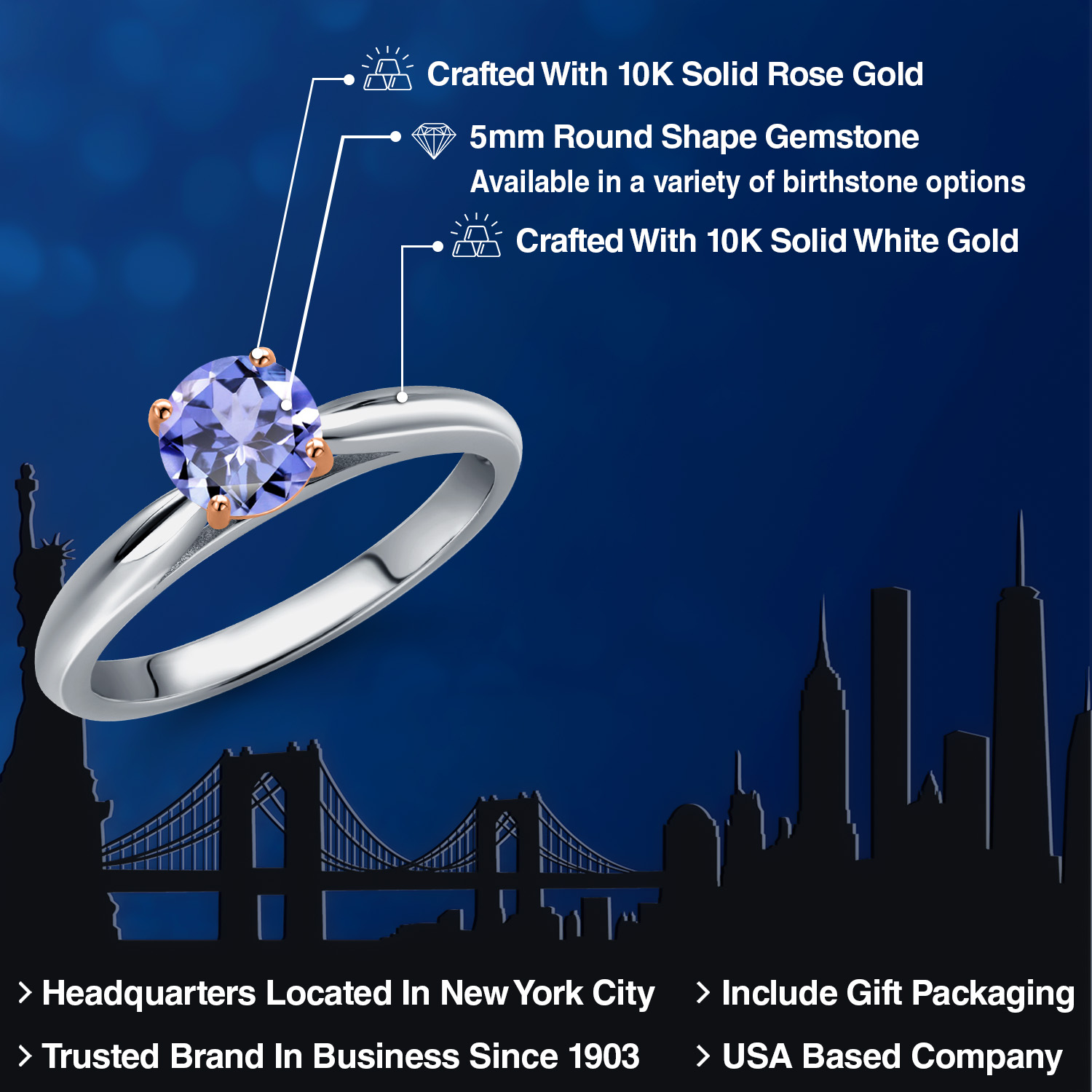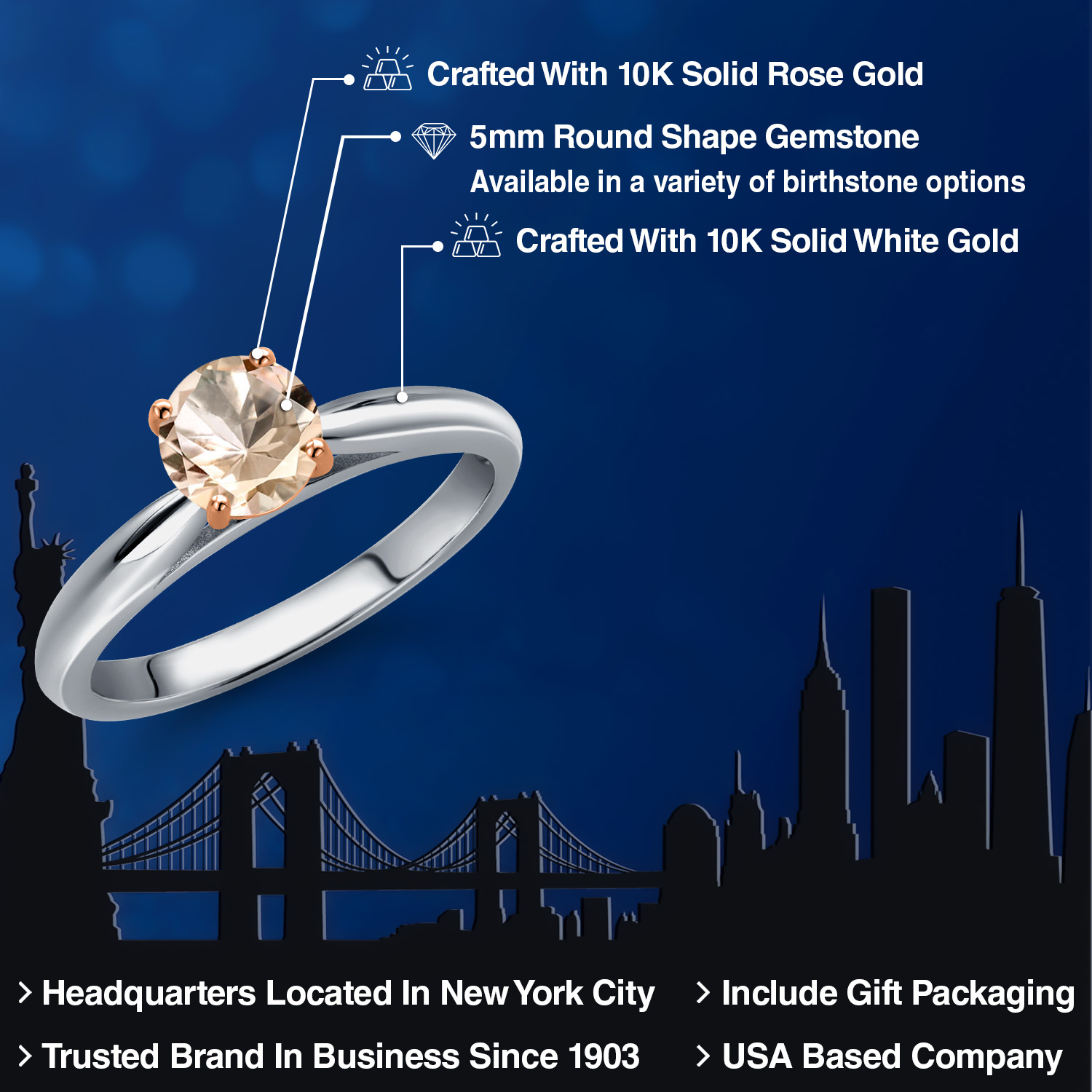 925 Silver and 10K Rose Gold Round 5MM Gemstone Birthstone Solitaire Engagement Ring For Women | Wedding Anniversary Promise Ring For Women | Size 5,6,7,8,9