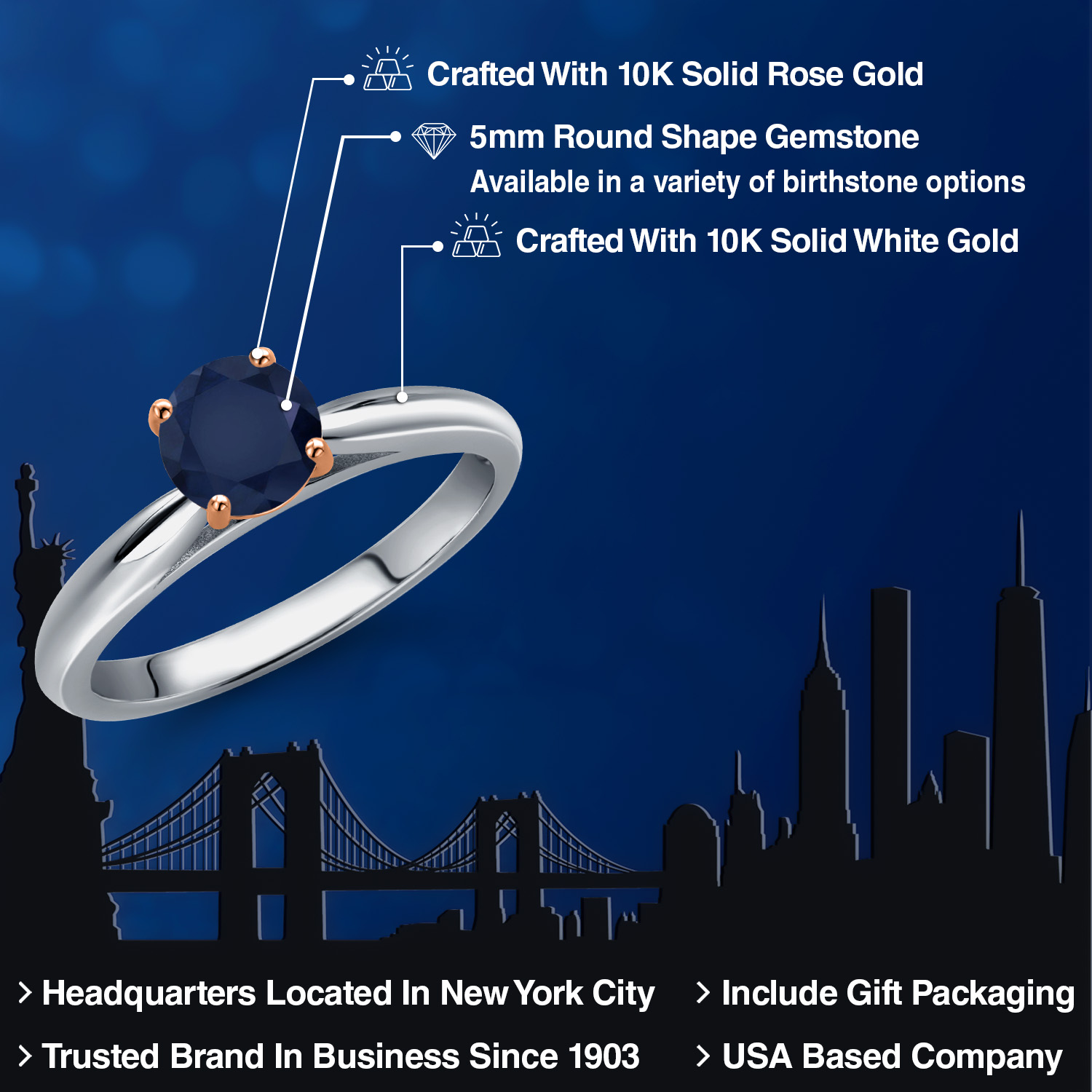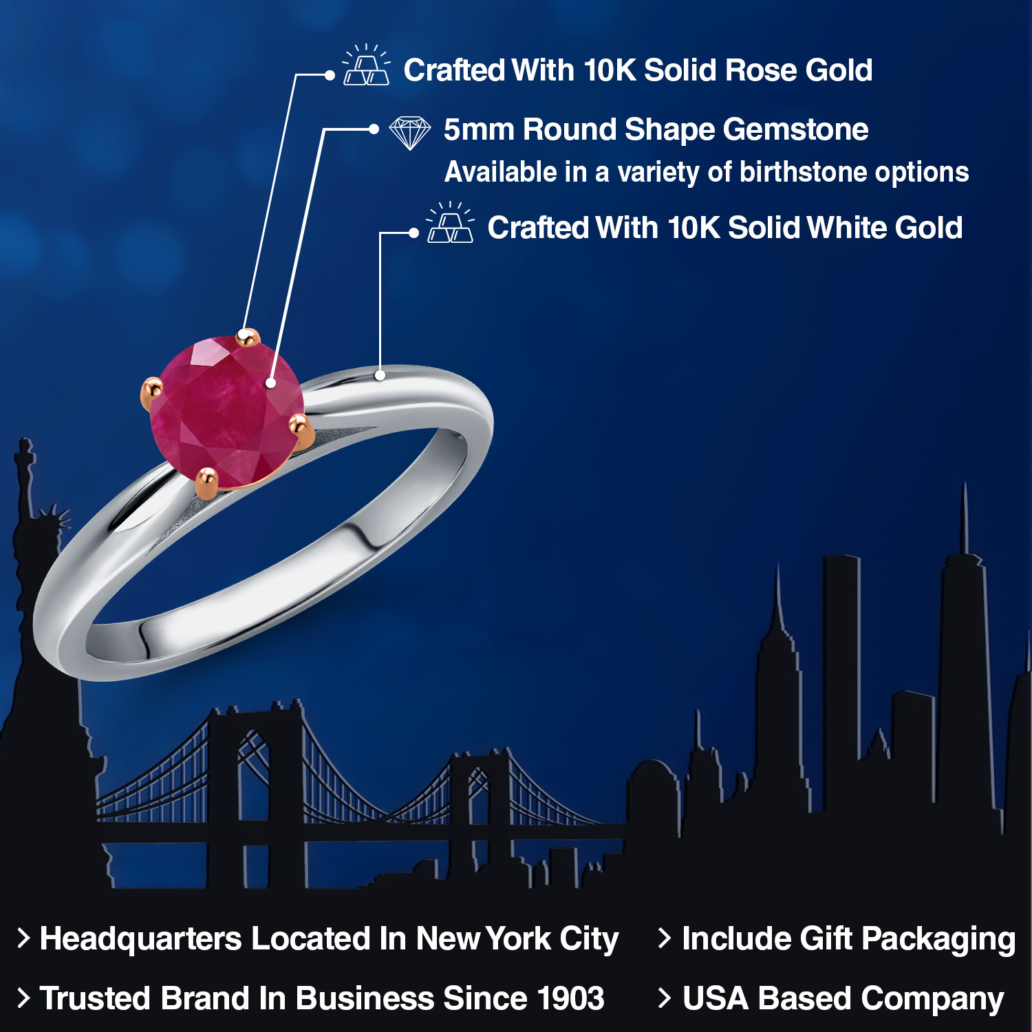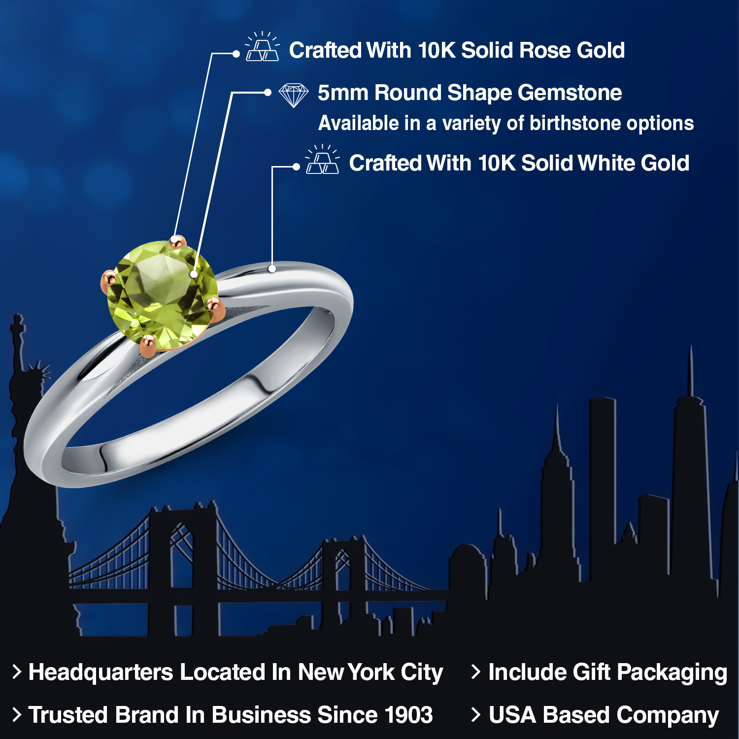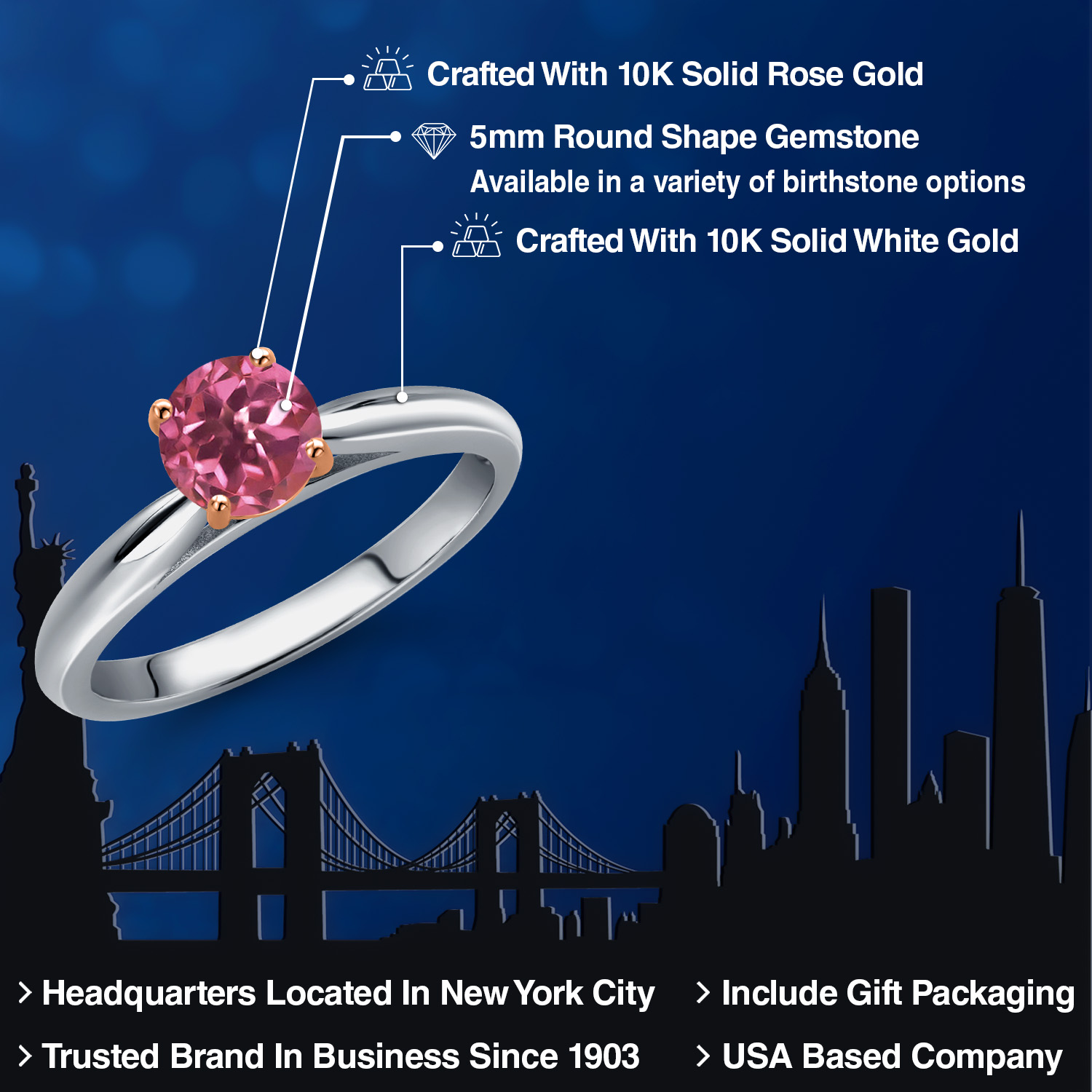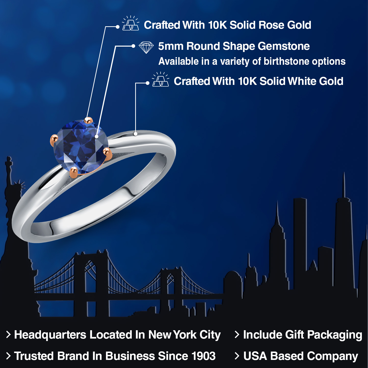 925 Silver and 10K Rose Gold Round 5MM Gemstone Birthstone Solitaire Engagement Ring For Women | Wedding Anniversary Promise Ring For Women | Size 5,6,7,8,9