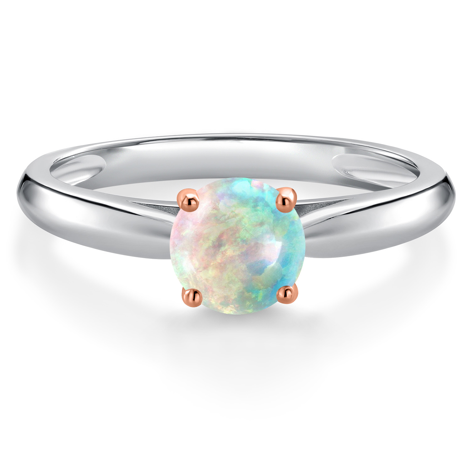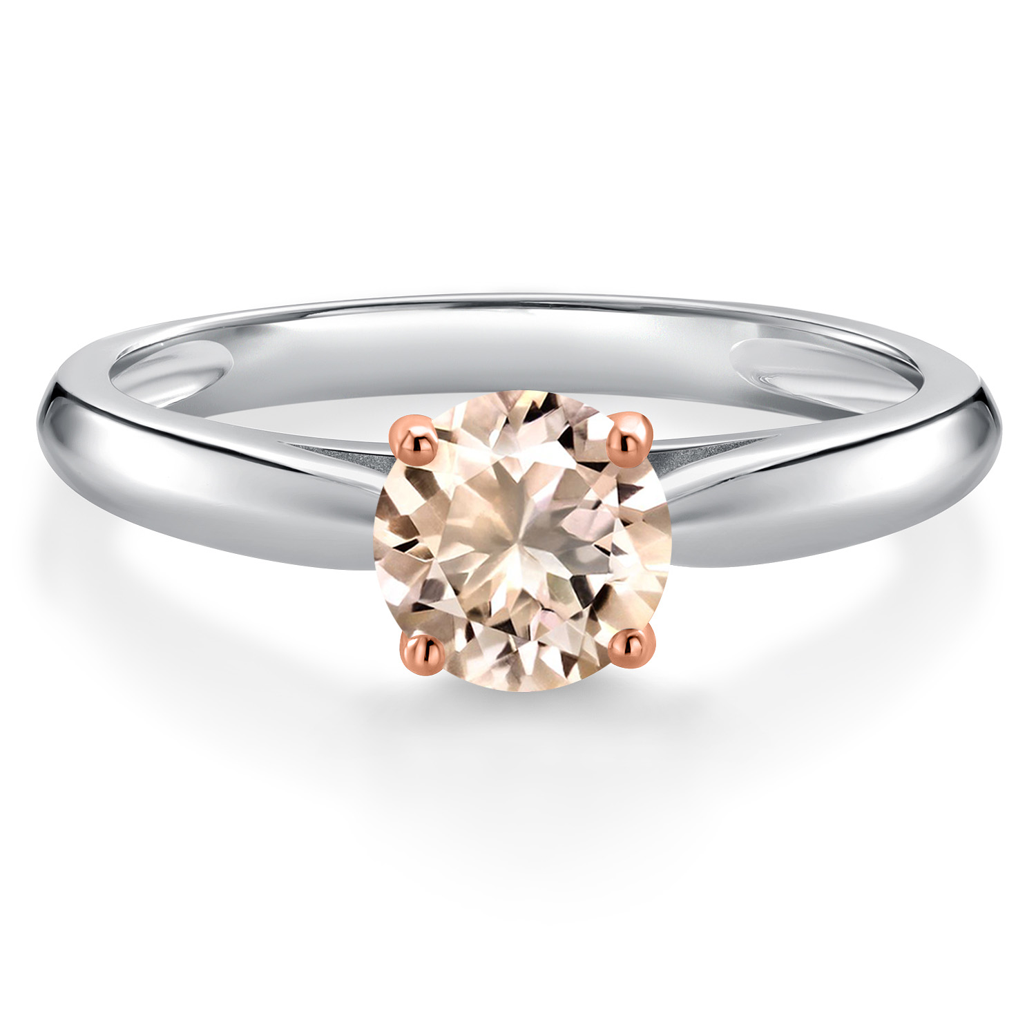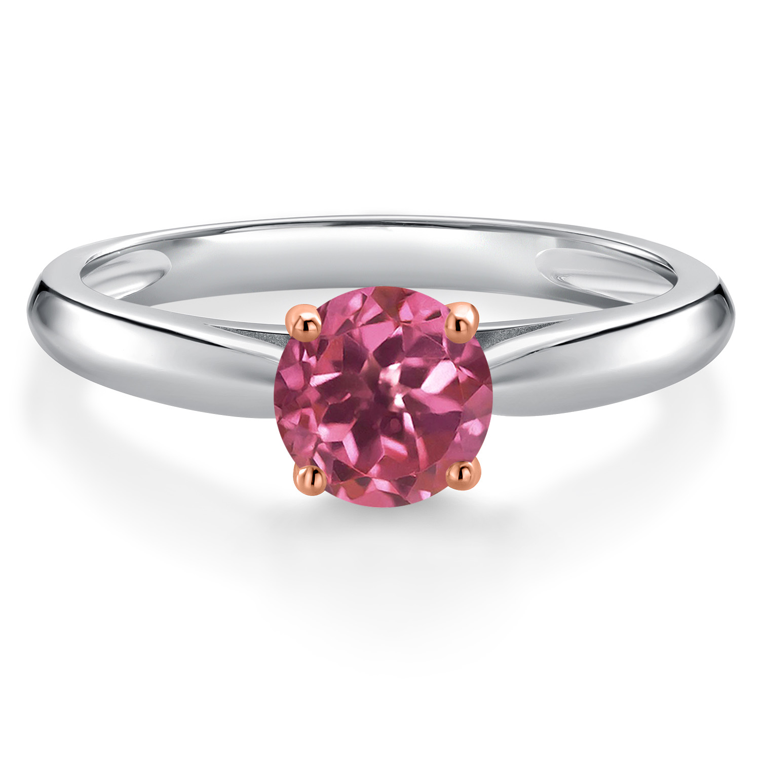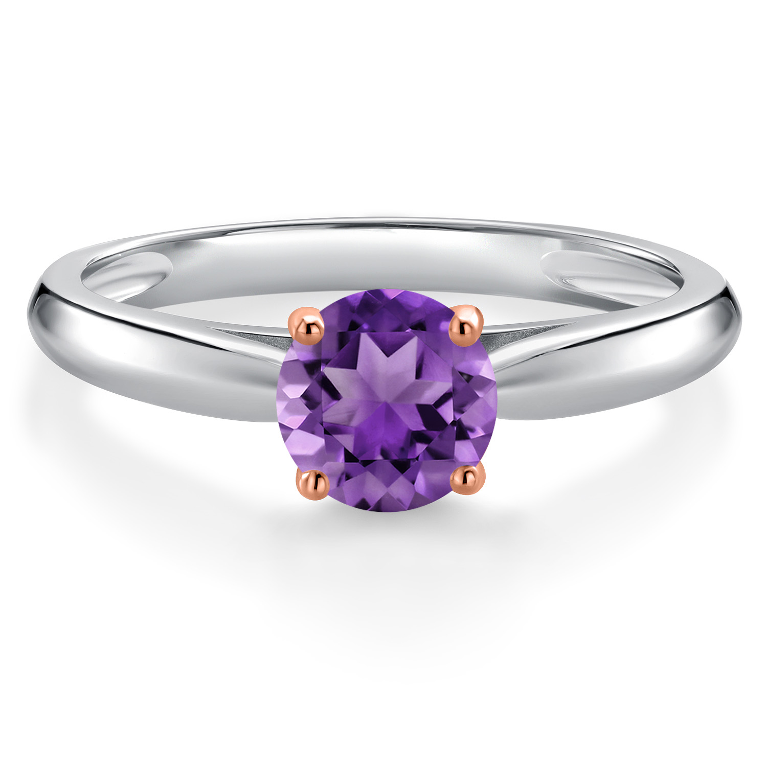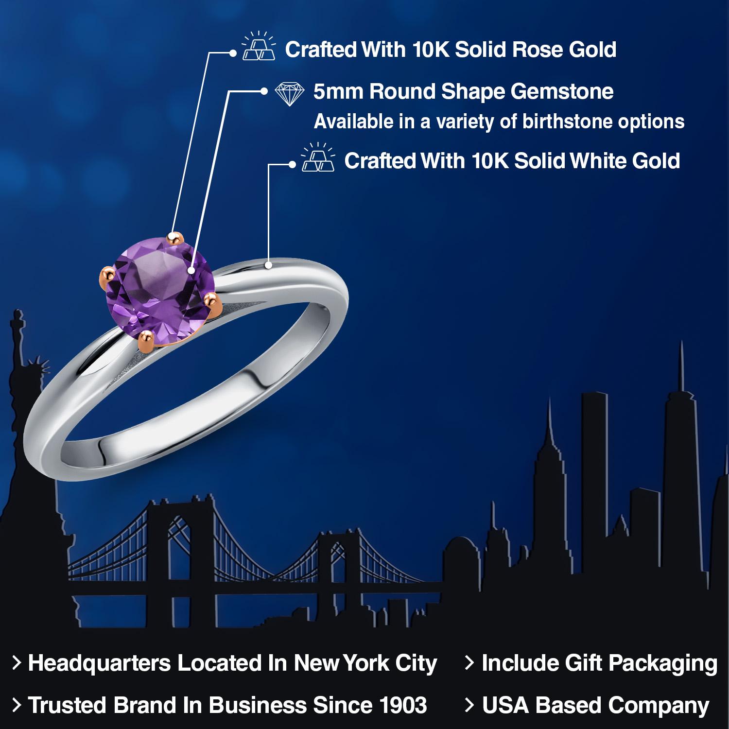 925 Silver and 10K Rose Gold Round 5MM Gemstone Birthstone Solitaire Engagement Ring For Women | Wedding Anniversary Promise Ring For Women | Size 5,6,7,8,9