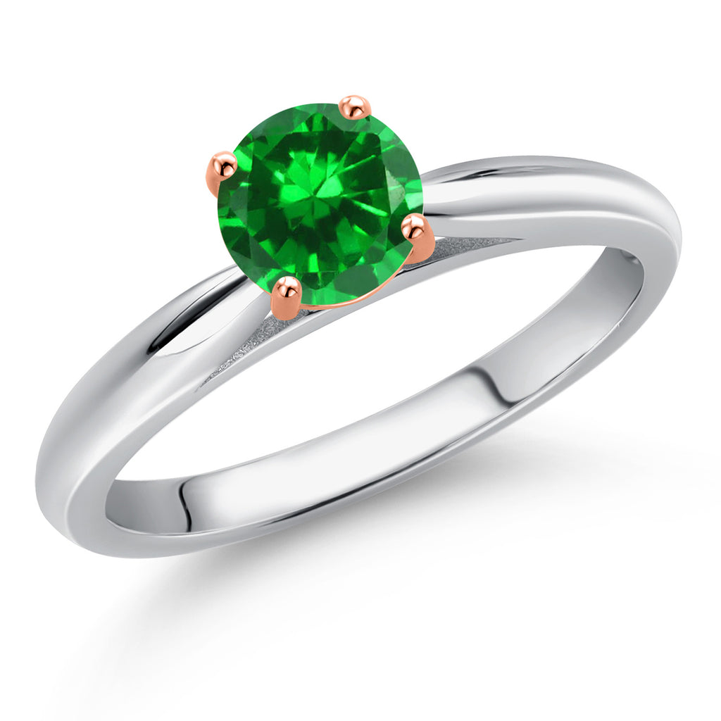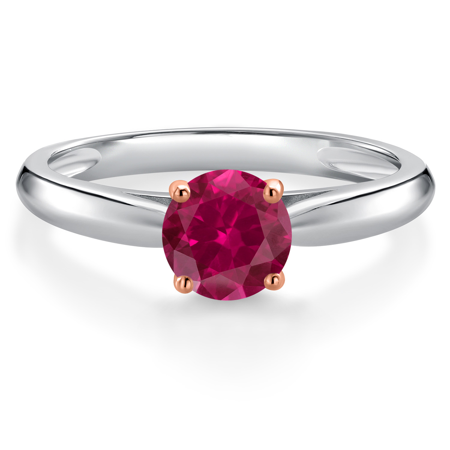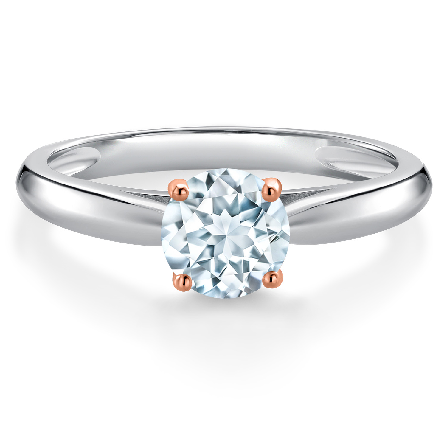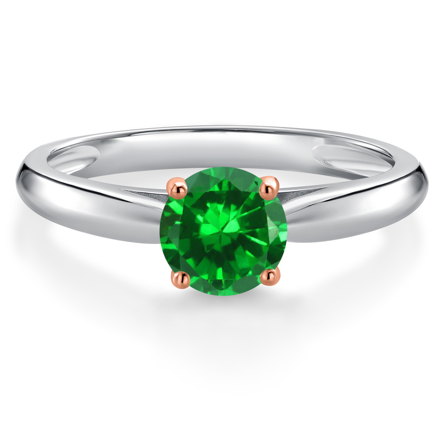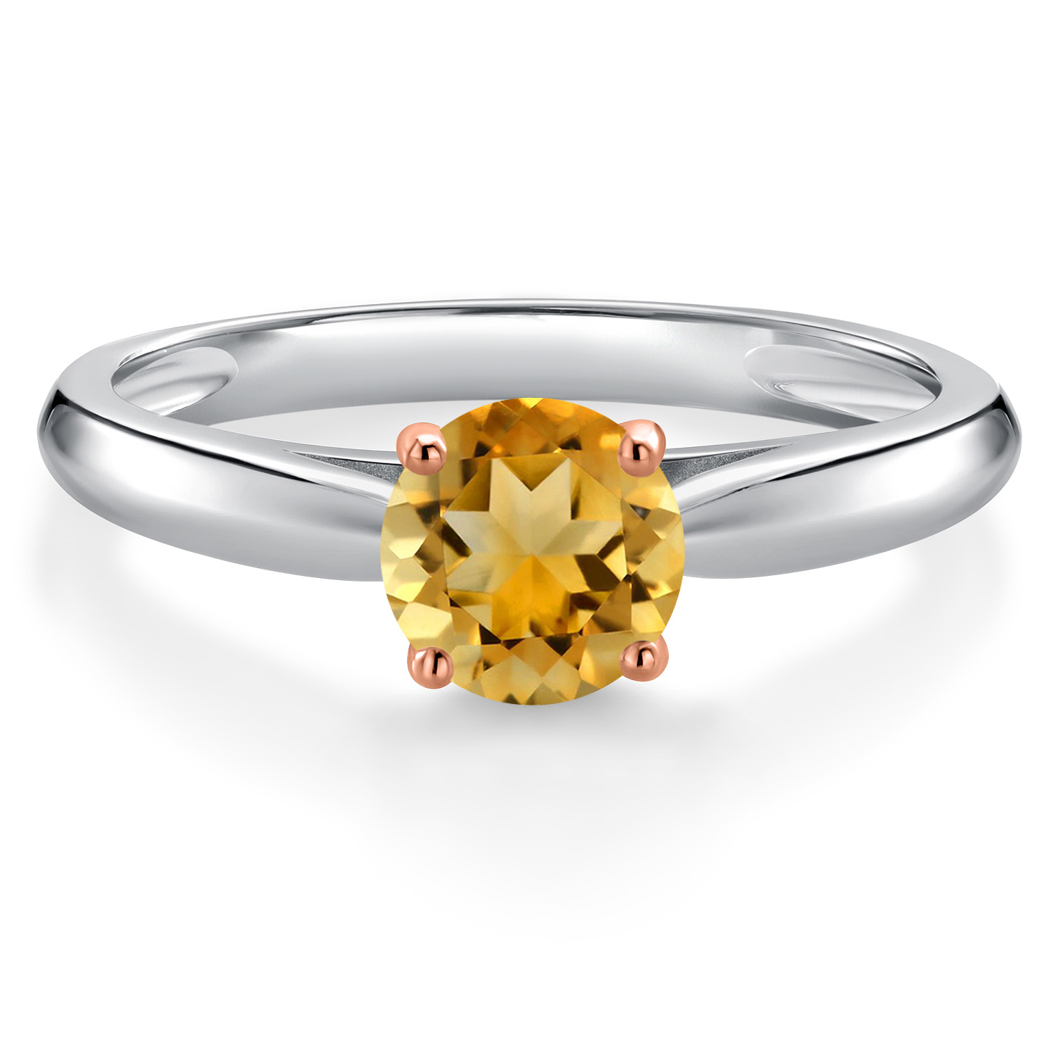 925 Silver and 10K Rose Gold Round 5MM Gemstone Birthstone Solitaire Engagement Ring For Women | Wedding Anniversary Promise Ring For Women | Size 5,6,7,8,9