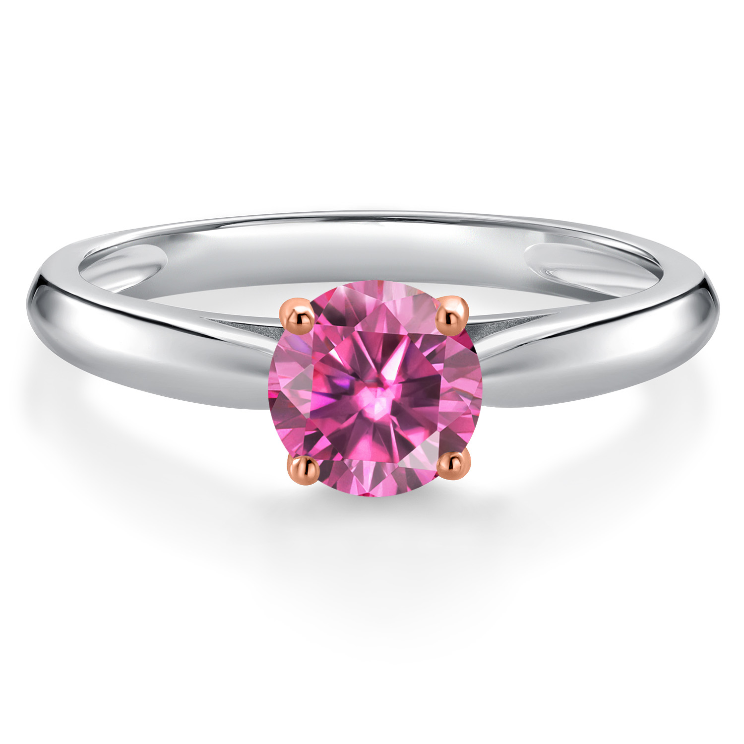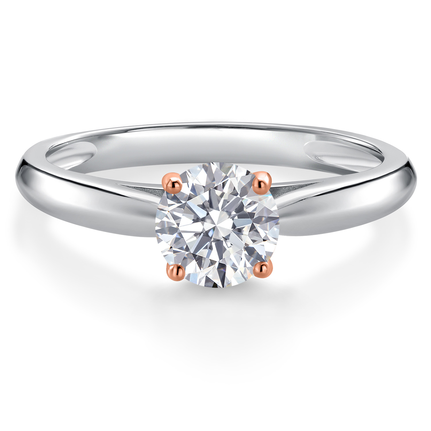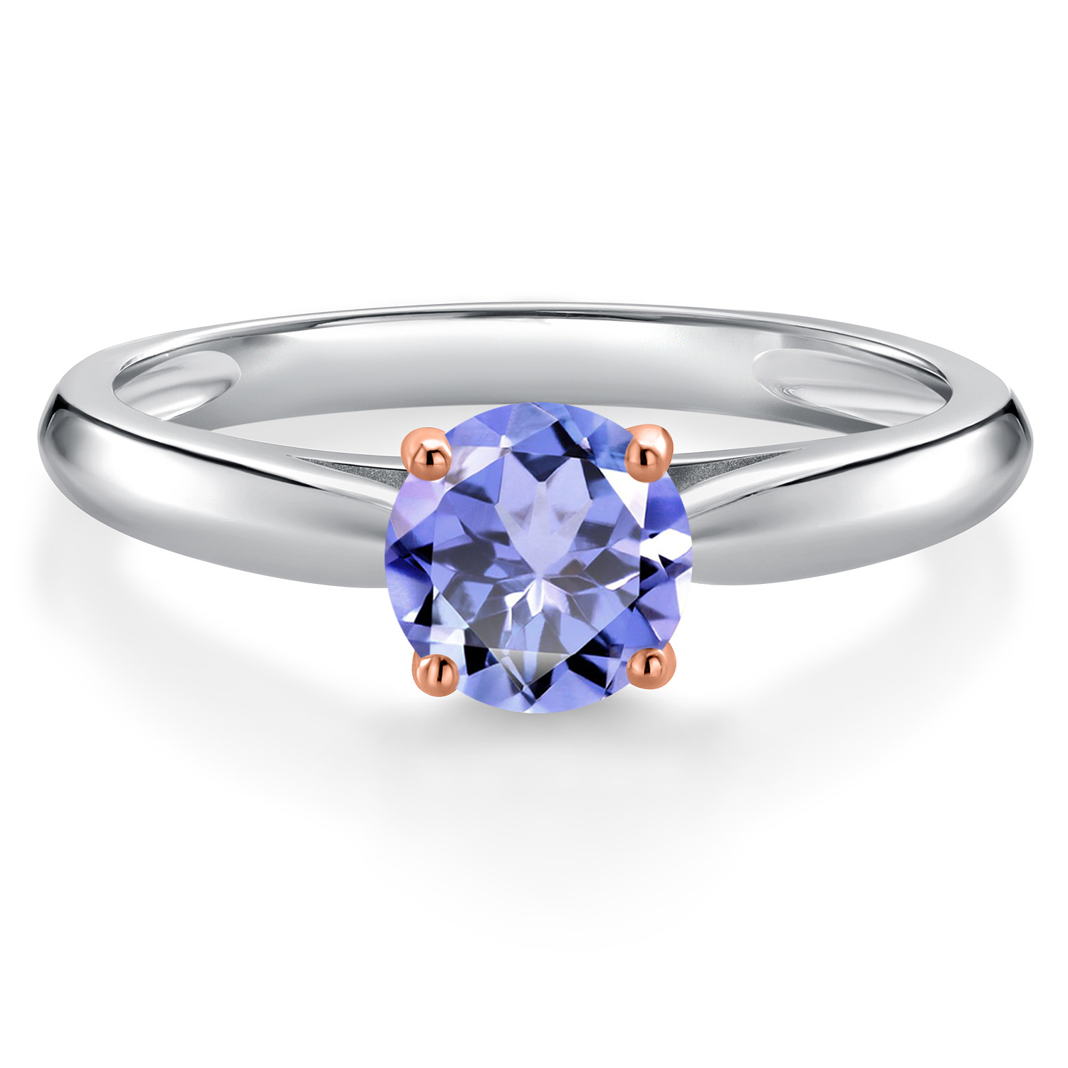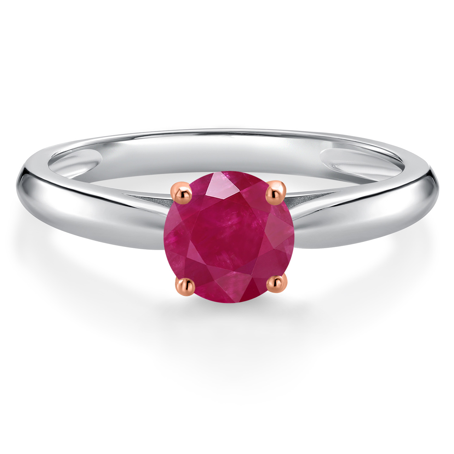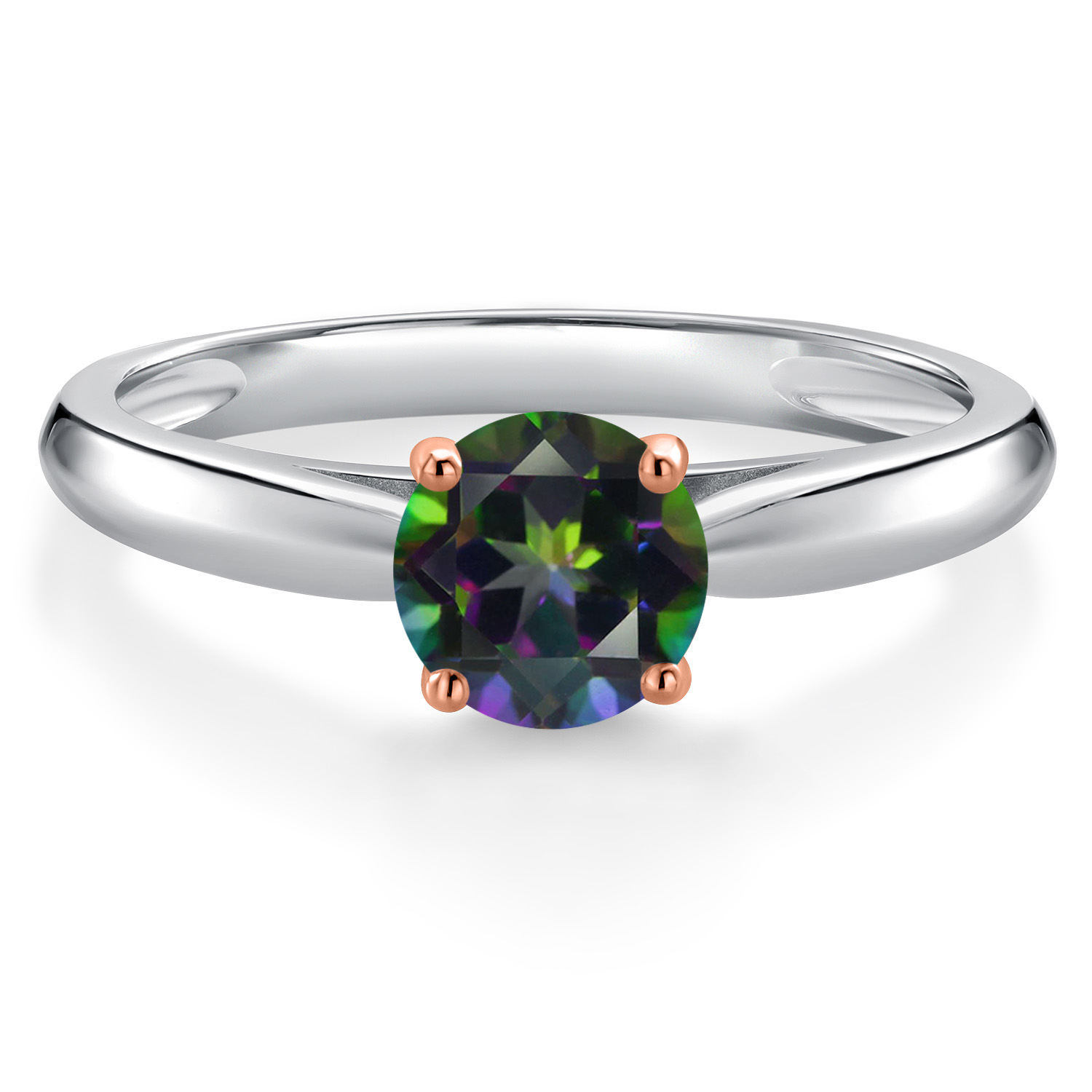 925 Silver and 10K Rose Gold Round 5MM Gemstone Birthstone Solitaire Engagement Ring For Women | Wedding Anniversary Promise Ring For Women | Size 5,6,7,8,9