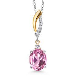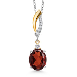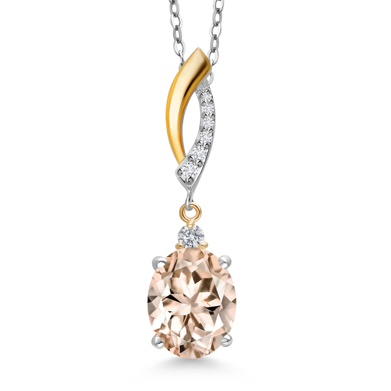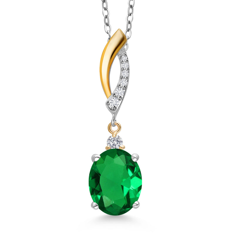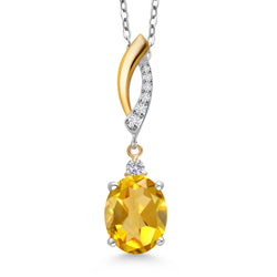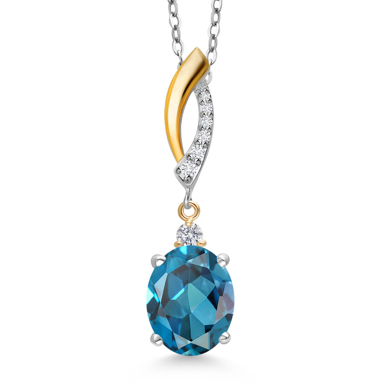 Gem Stone King 925 Silver and 10K Yellow Gold 10X8MM Oval Gemstone Birthstone and White Lab Grown Diamond Pendant Necklace for Women | With 18 Inch Silver Chain