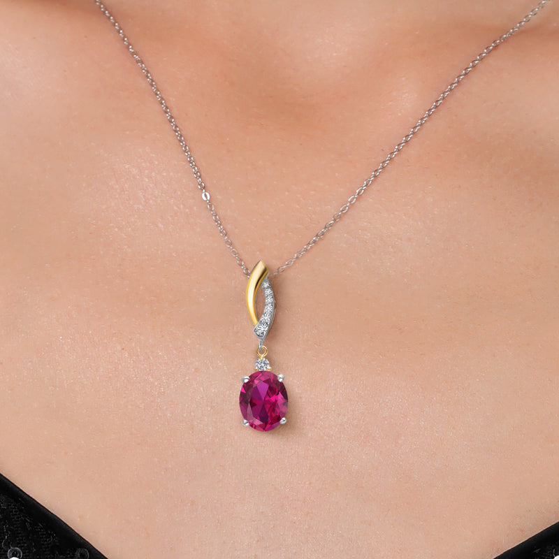 DAZZLING WHITE LAB-GROWN DIAMONDS: Surrounding the central gemstone are sparkling white lab-grown diamonds, which enhance the pendant's brilliance and add an extra layer of luxury. These ethically sourced diamonds provide a radiant sparkle, ensuring that the necklace shines beautifully from every angle.