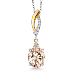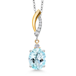 ELEGANT TWO-TONE DESIGN: This stunning pendant necklace features a 10x8MM oval gemstone birthstone, beautifully framed in a combination of 925 Sterling Silver and 10K Yellow Gold. The two-tone design adds a touch of sophistication, making it a versatile and stylish accessory that complements any outfit.