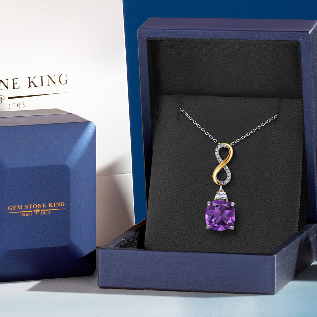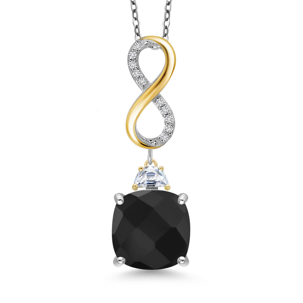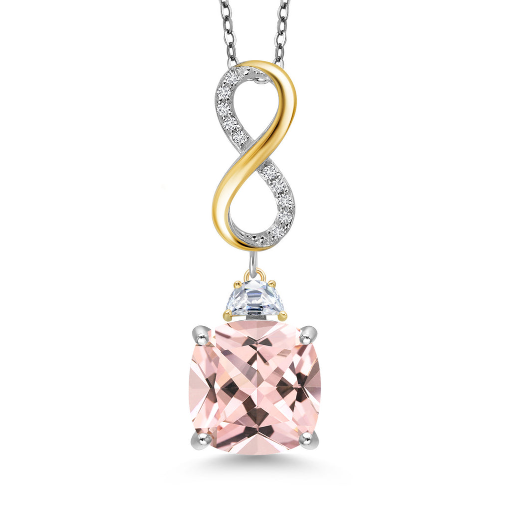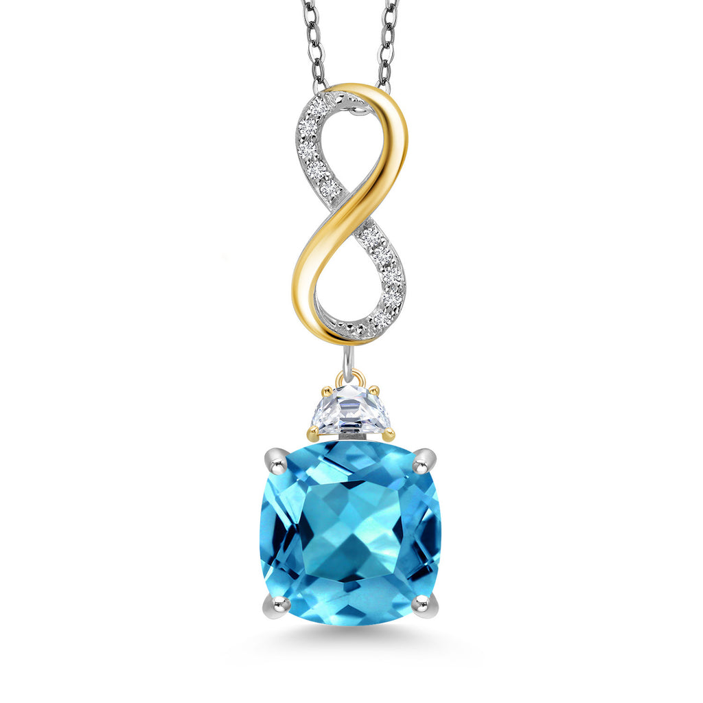 925 Silver and 10K Yellow Gold 12MM Cushion Gemstone Birthstone Drop Pendant Necklace For Women with Half Moon White Moissanite and White Lab Grown Diamond