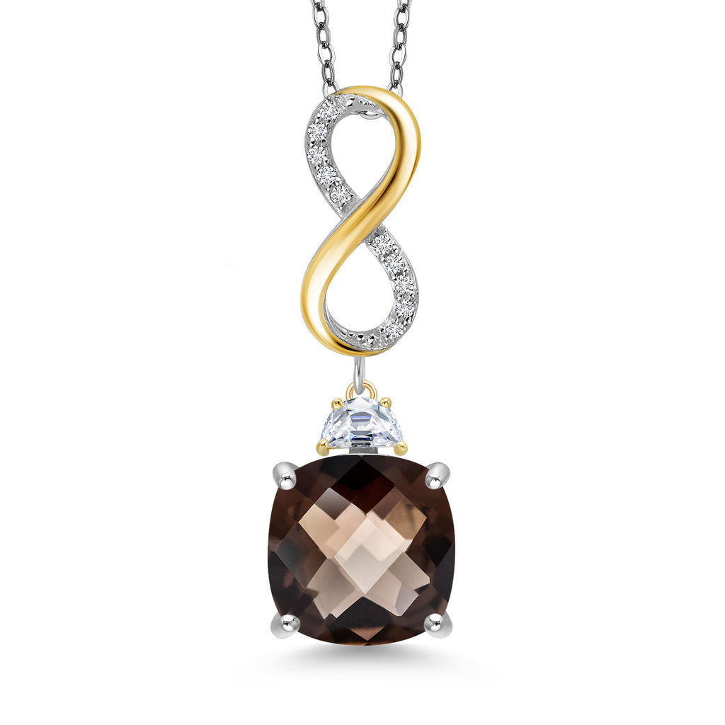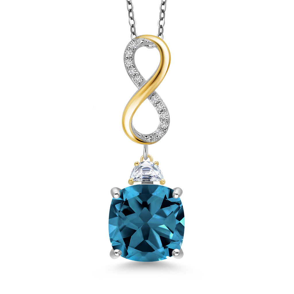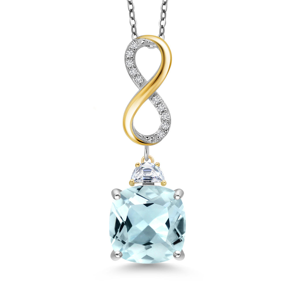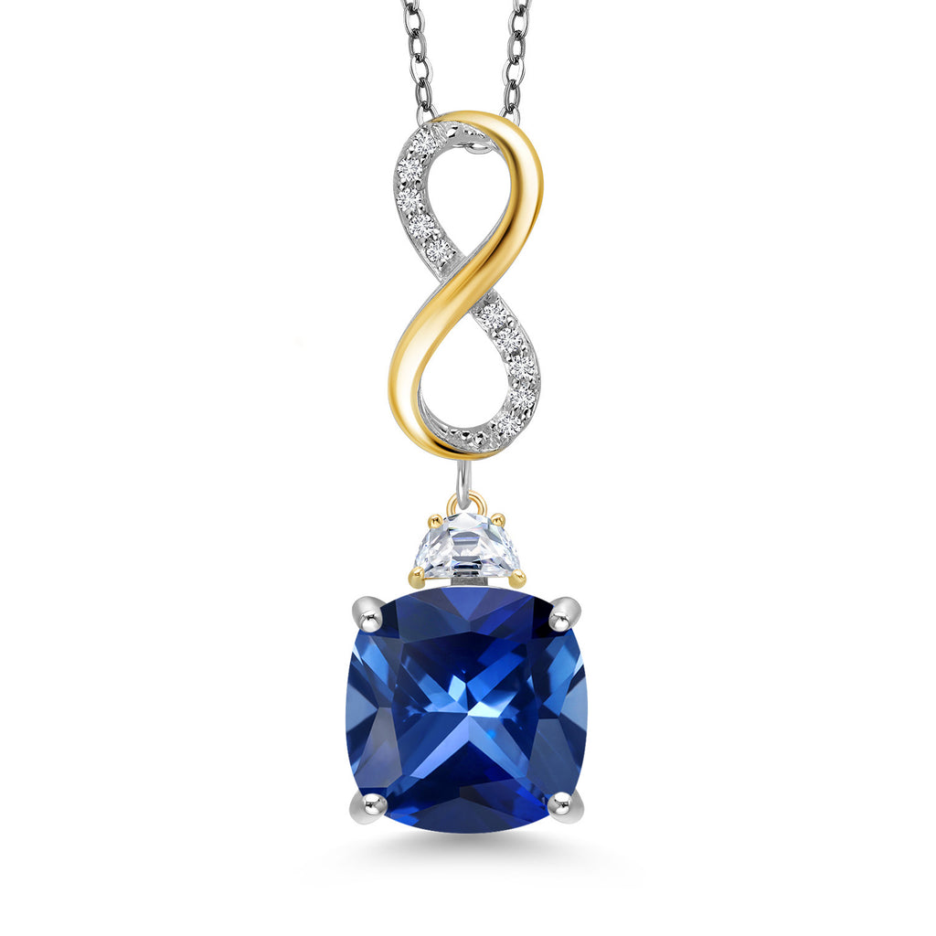 EXQUISITE TWO-TONE DESIGN: This stunning drop pendant necklace features a captivating 12MM cushion-cut gemstone birthstone, beautifully set in a combination of 925 Silver and 10K Yellow Gold. The elegant two-tone design adds a touch of luxury and sophistication, making it a perfect statement piece for any occasion.