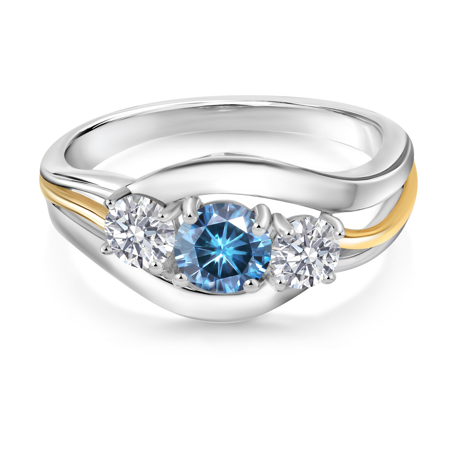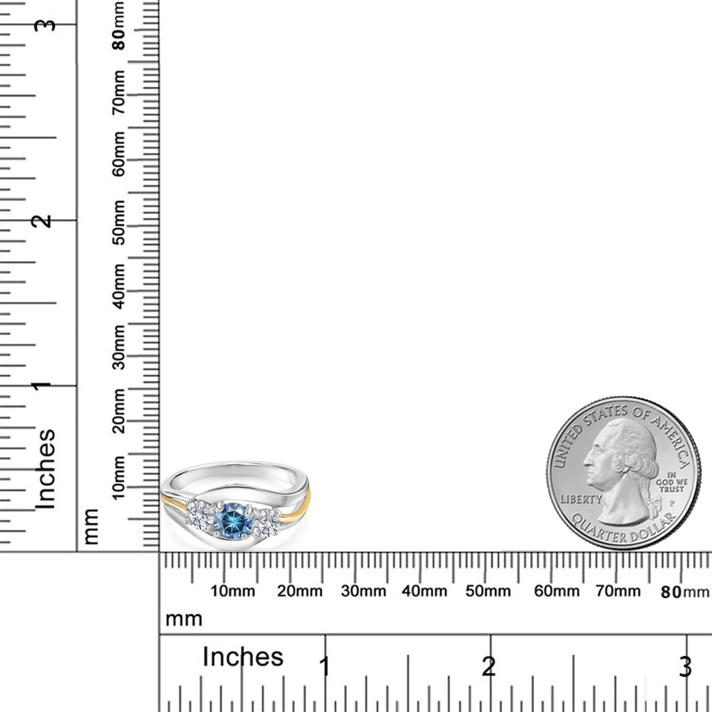 MEASUREMENTS: 5x5mm Round Coated Persian Blue Moissanite, 4x4mm Round E - F Lab Grown Diamond. Total Carat Weight is 1.04 cttw