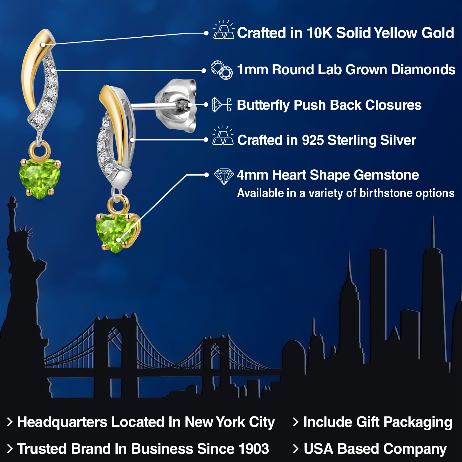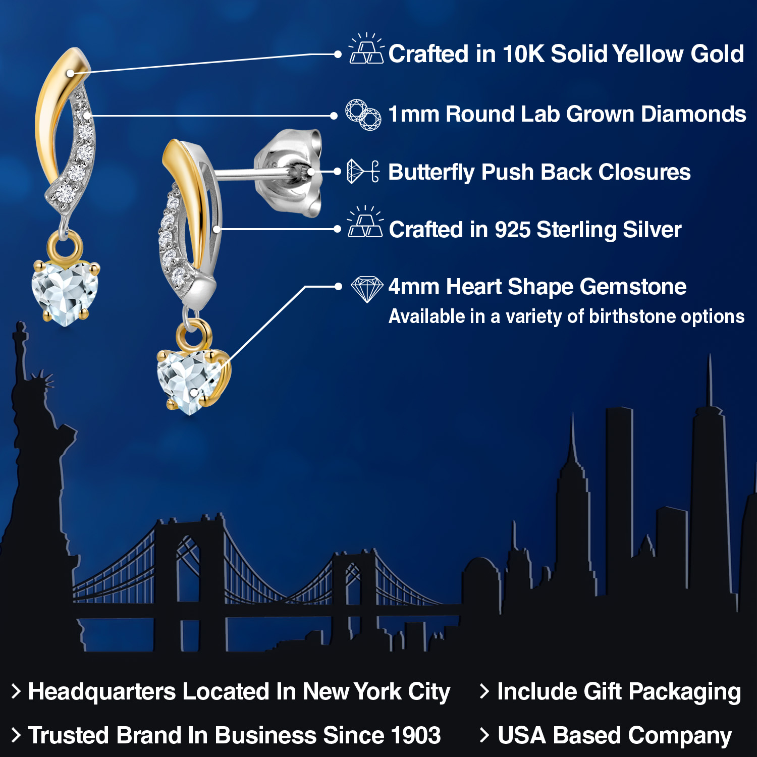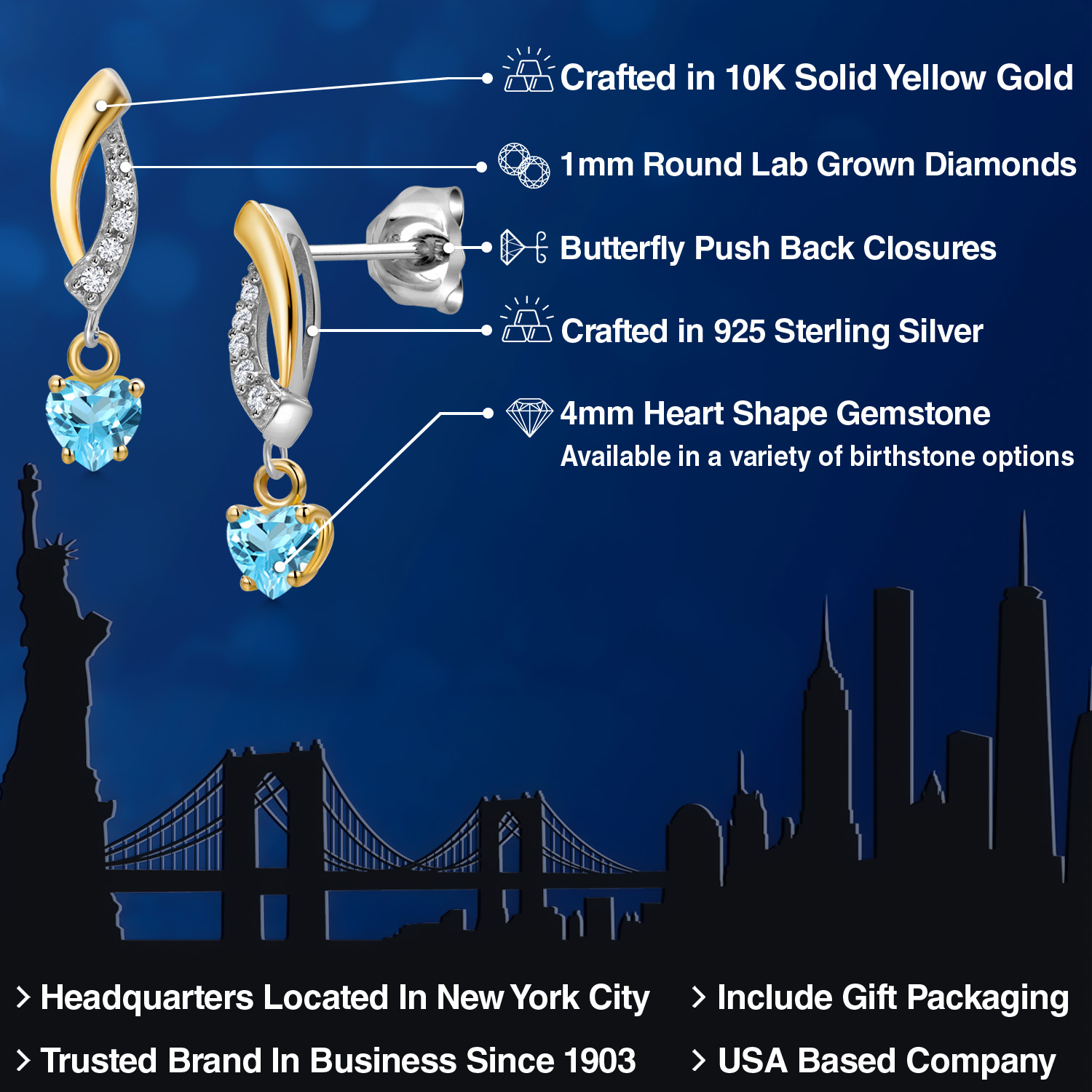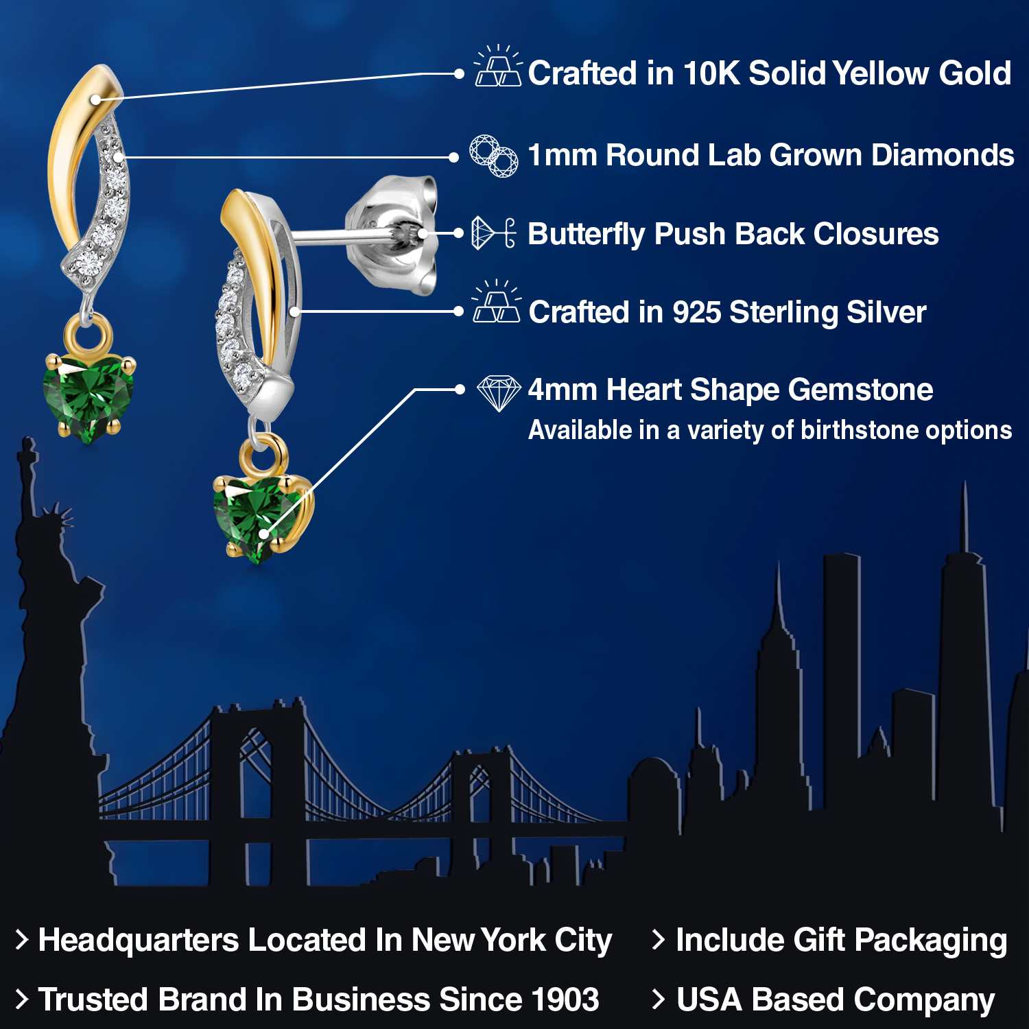 ELEGANT HEART-SHAPED GEMSTONES: These earrings feature dazzling 4MM heart-shaped gemstones, each available in a variety of personalized birthstone options. The heart-shaped gems are a symbol of love and beauty, making them perfect for a romantic gift or a personal keepsake. Their radiant sparkle and rich colors ensure that these earrings will add a touch of glamour to any outfit.