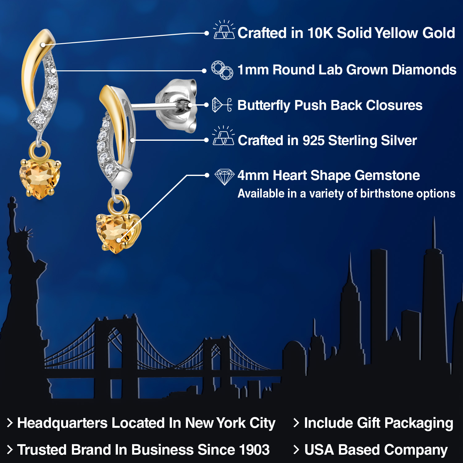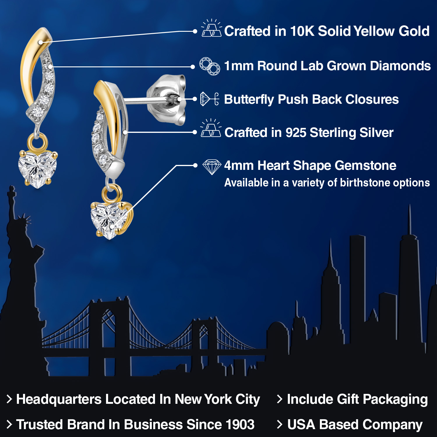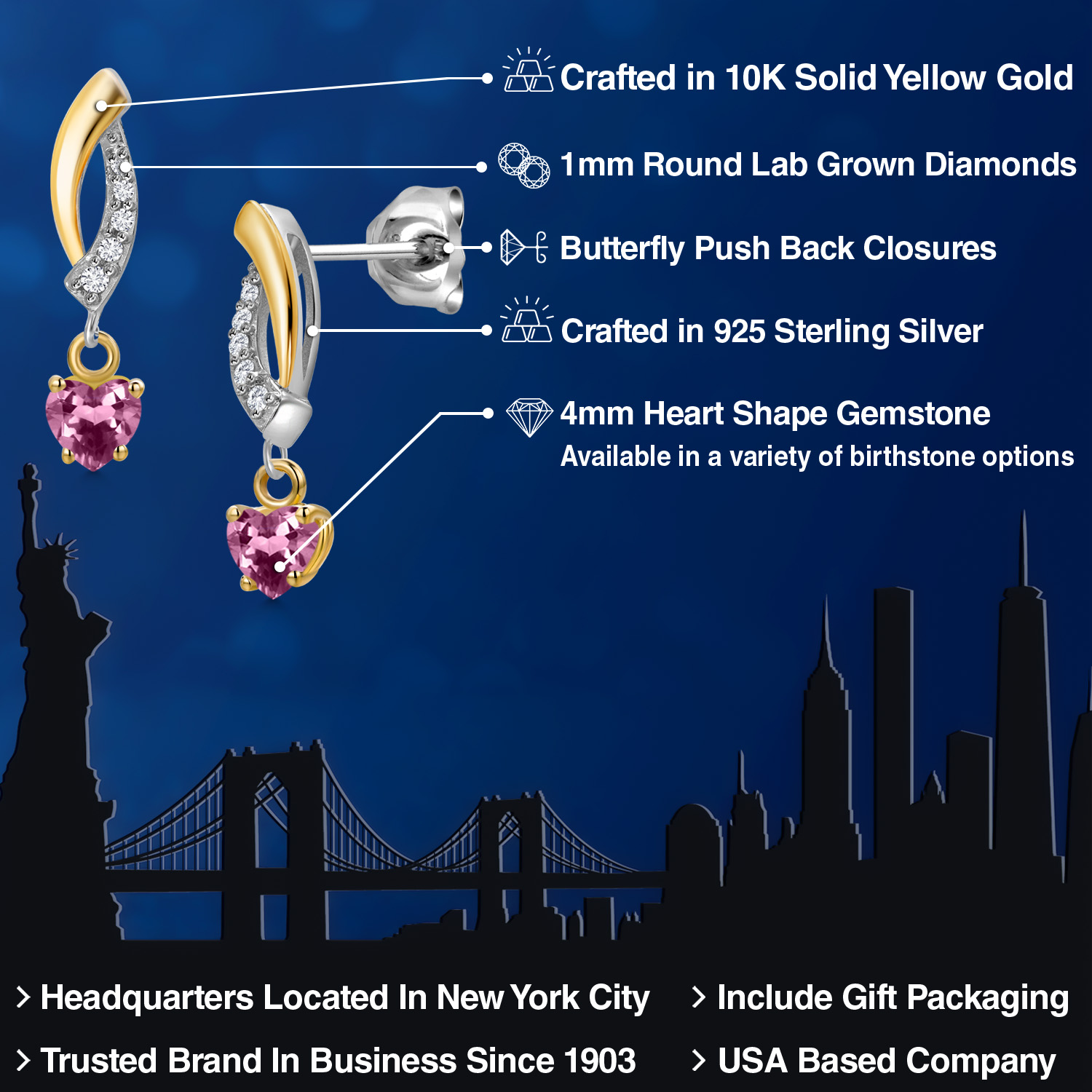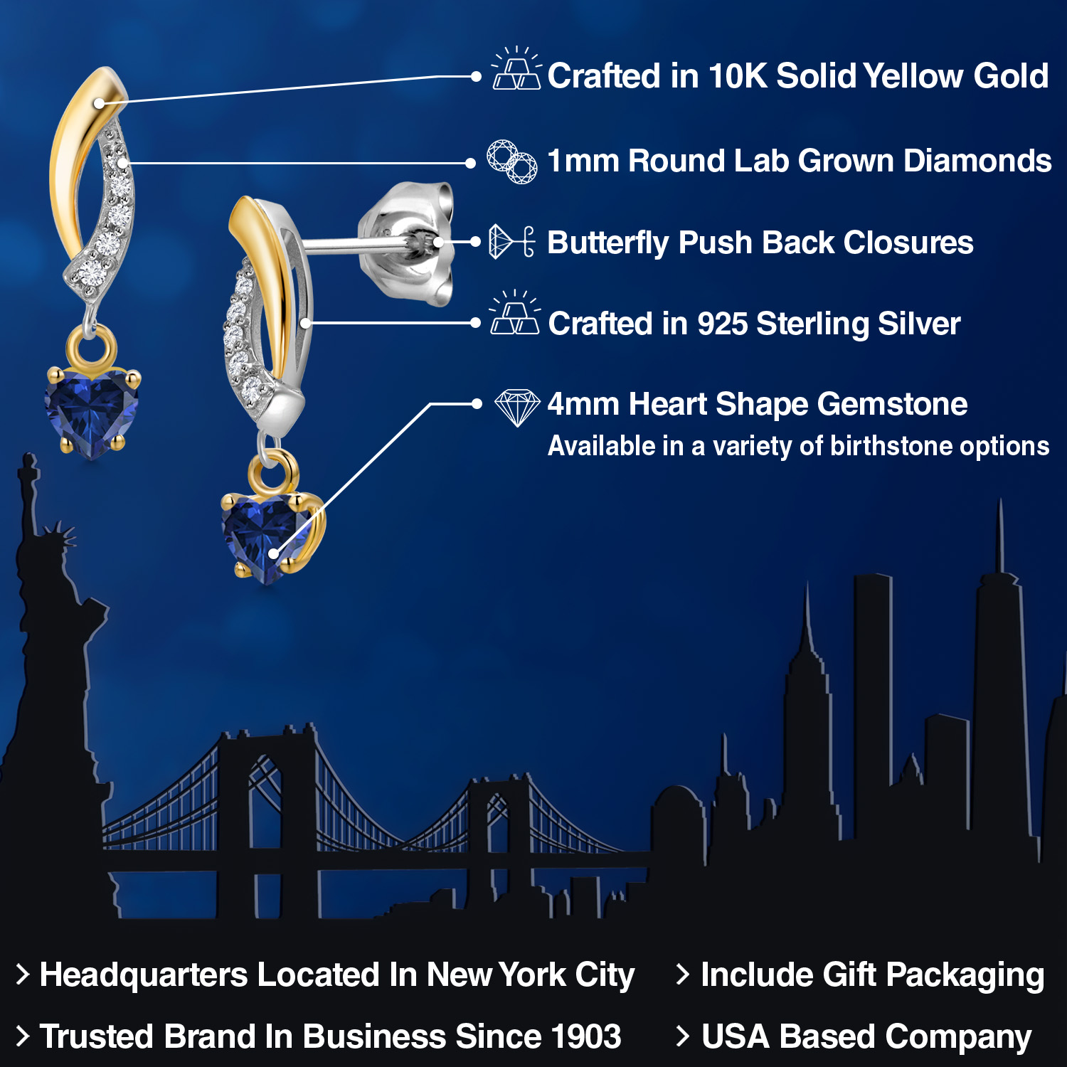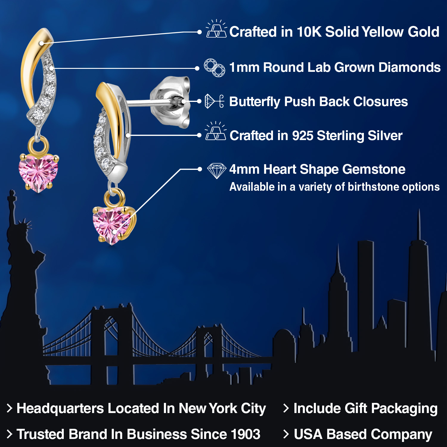 BRILLIANT LAB-GROWN DIAMOND ACCENTS: Set with 1MM round lab-grown diamonds, these earrings bring added brilliance to the design. The diamonds catch the light from every angle, accentuating the heart-shaped gemstones and adding an extra layer of sophistication. These sparkling accents enhance the overall look, making the earrings an excellent choice for those who appreciate refined, elegant jewelry.