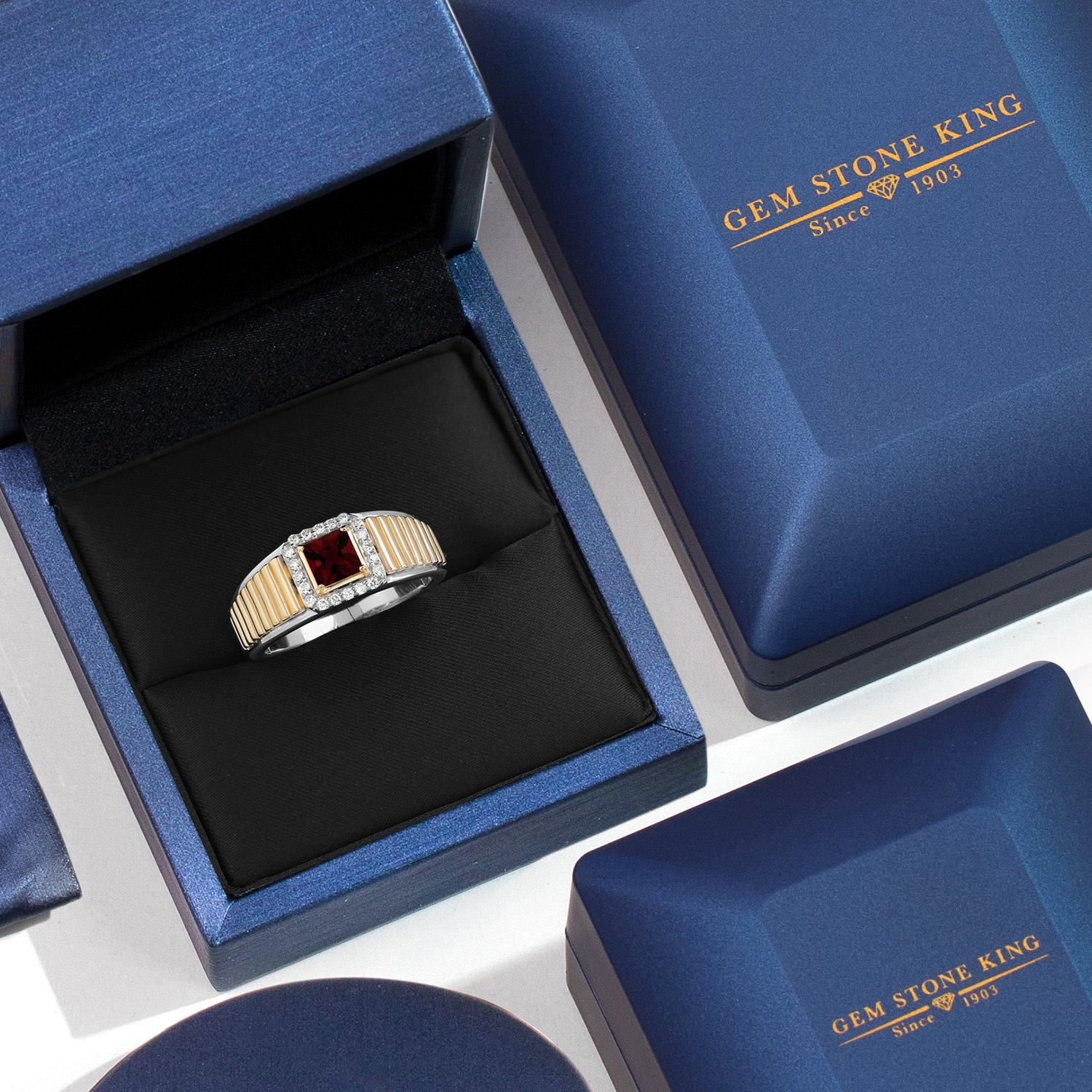 CUSTOMIZABLE GEMSTONE DESIGN: Featuring a striking 5MM princess-cut gemstone birthstone, this ring adds a personal touch of luxury. Accented with 1.2MM lab-grown diamonds for added brilliance, this statement ring is a perfect gift for any occasion, offering a sleek and sophisticated look for men who appreciate fine craftsmanship and bold style.