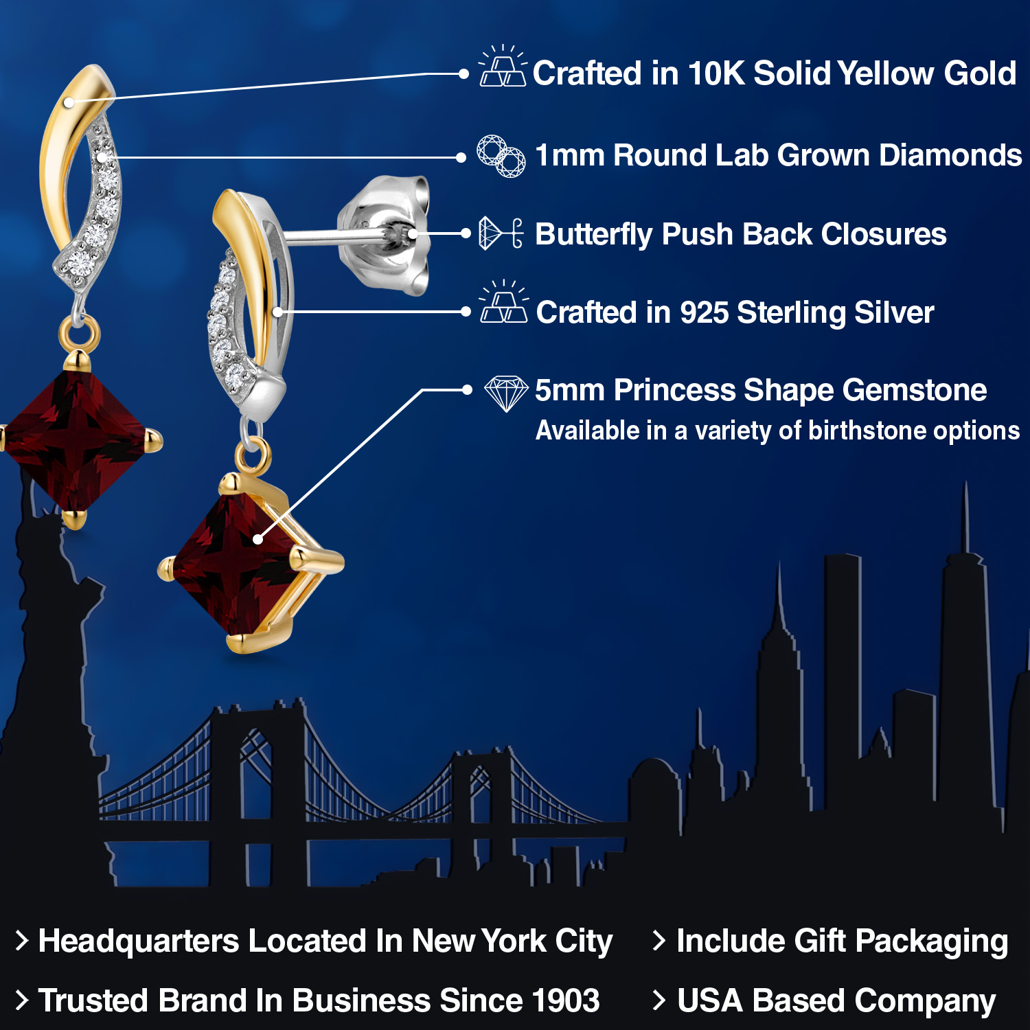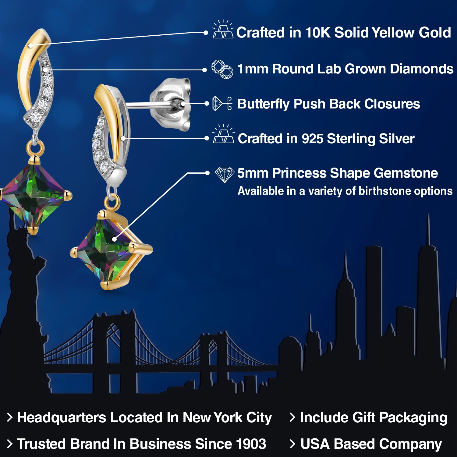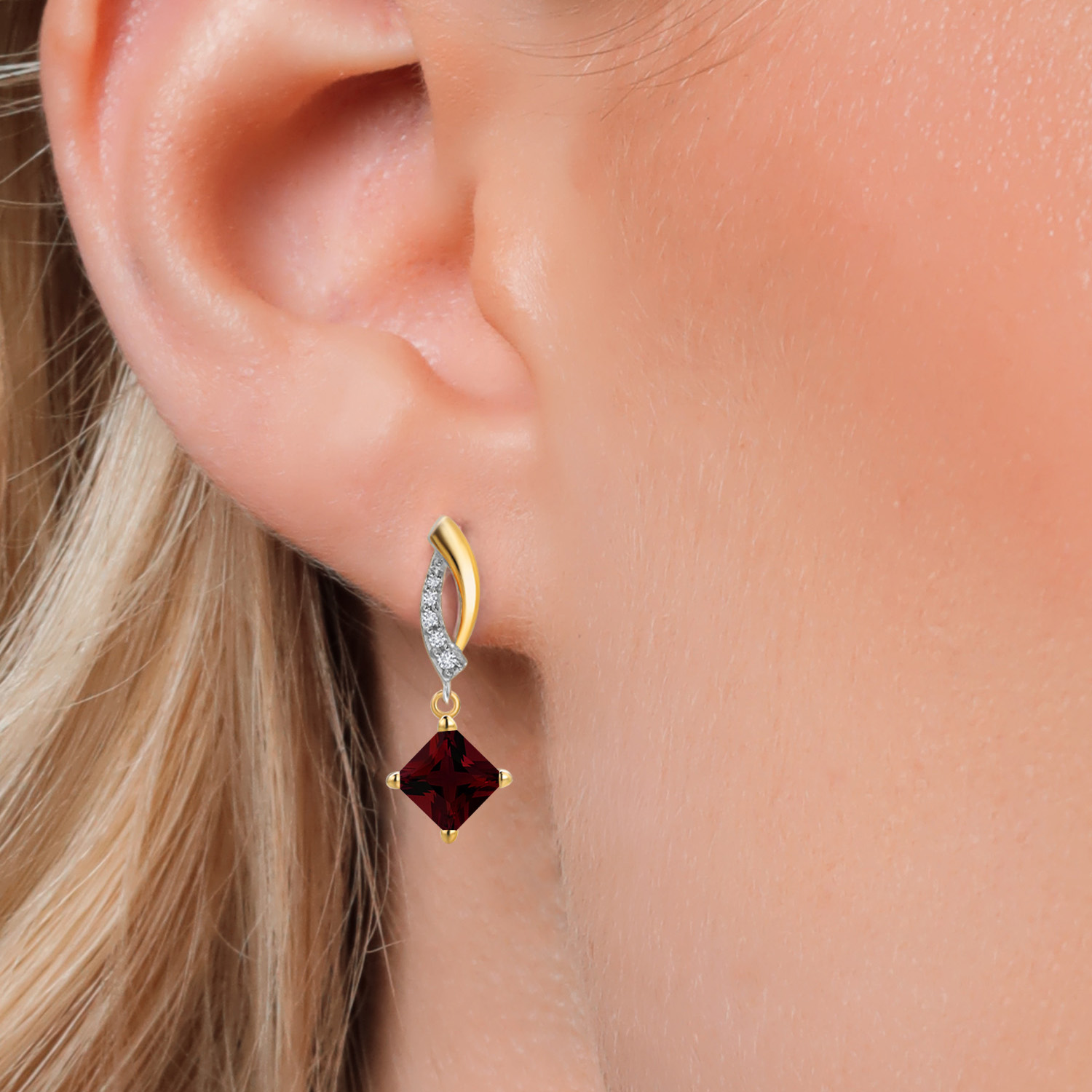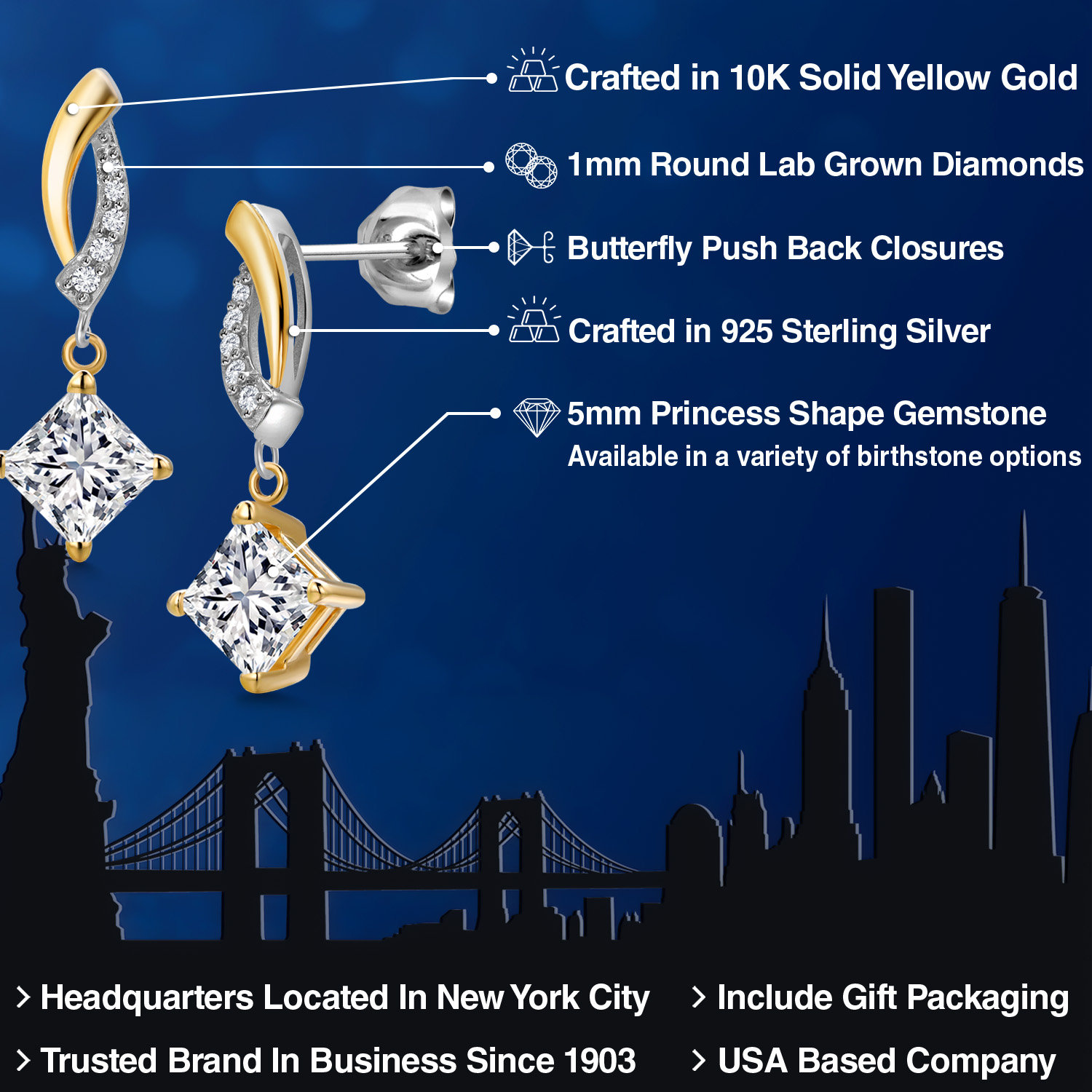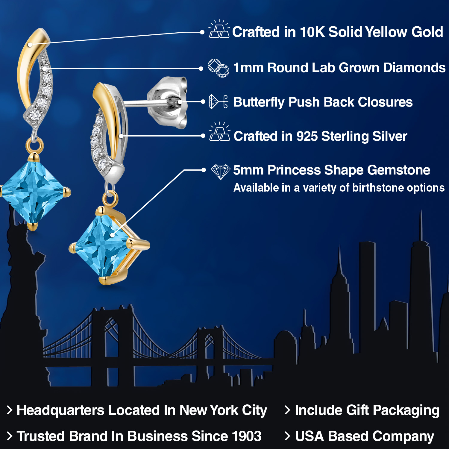 DAZZLING LAB-GROWN DIAMONDS: Enhanced by 1MM round lab-grown diamonds, these earrings add an extra touch of brilliance to your look. The diamonds are positioned to accentuate the princess-cut gemstone, enhancing its radiance and adding depth to the design.