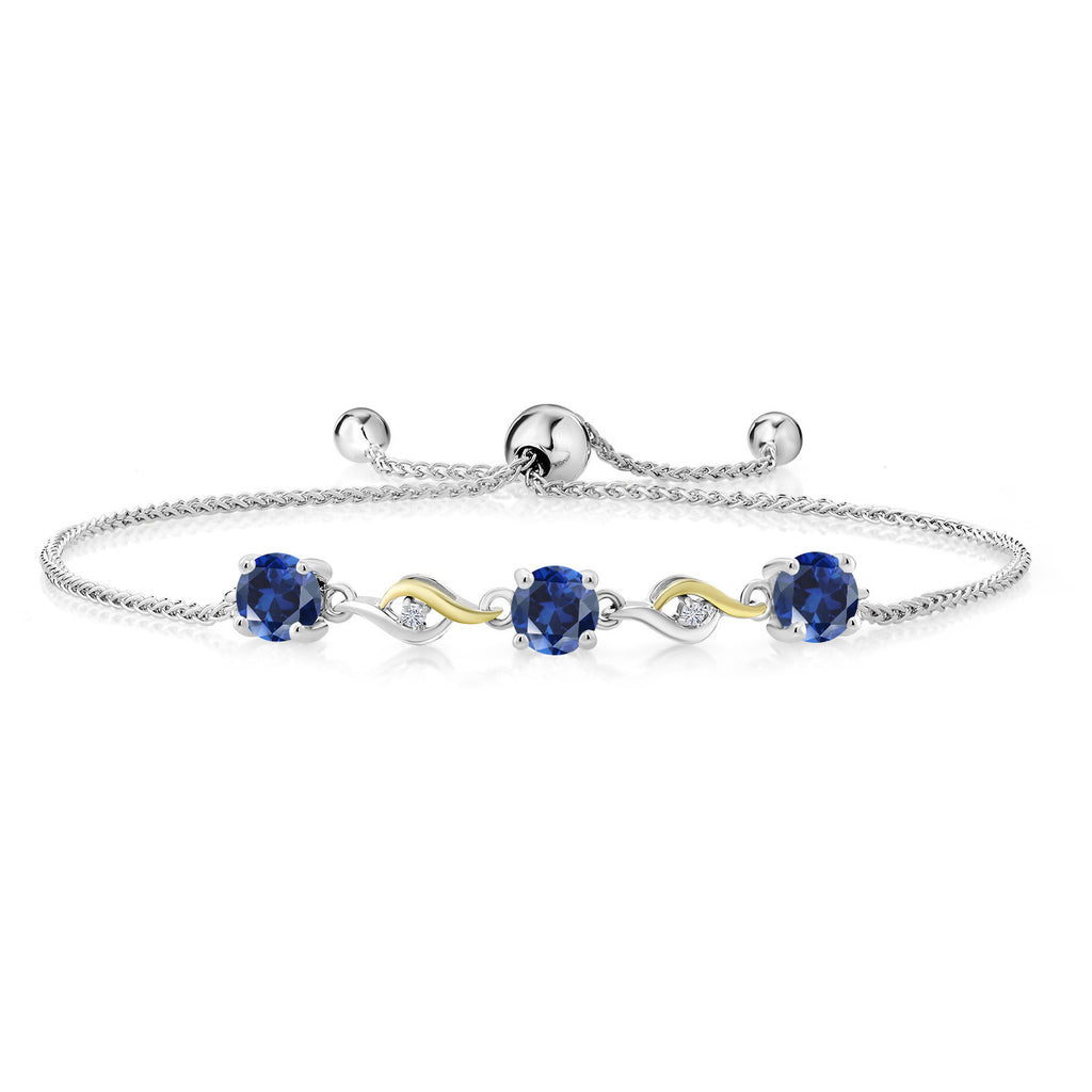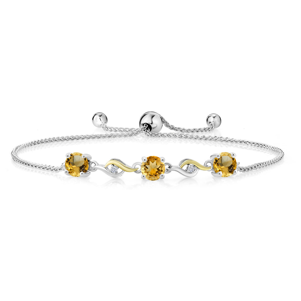 925 Silver and 10K Yellow Gold 5MM Round Gemstone Birthstone and 1.3MM Lab Grown Diamond Tennis Bracelet For Women | Bollo Bracelet | Fully Adjustable Up to 9 Inch | Easy-On Easy-Off